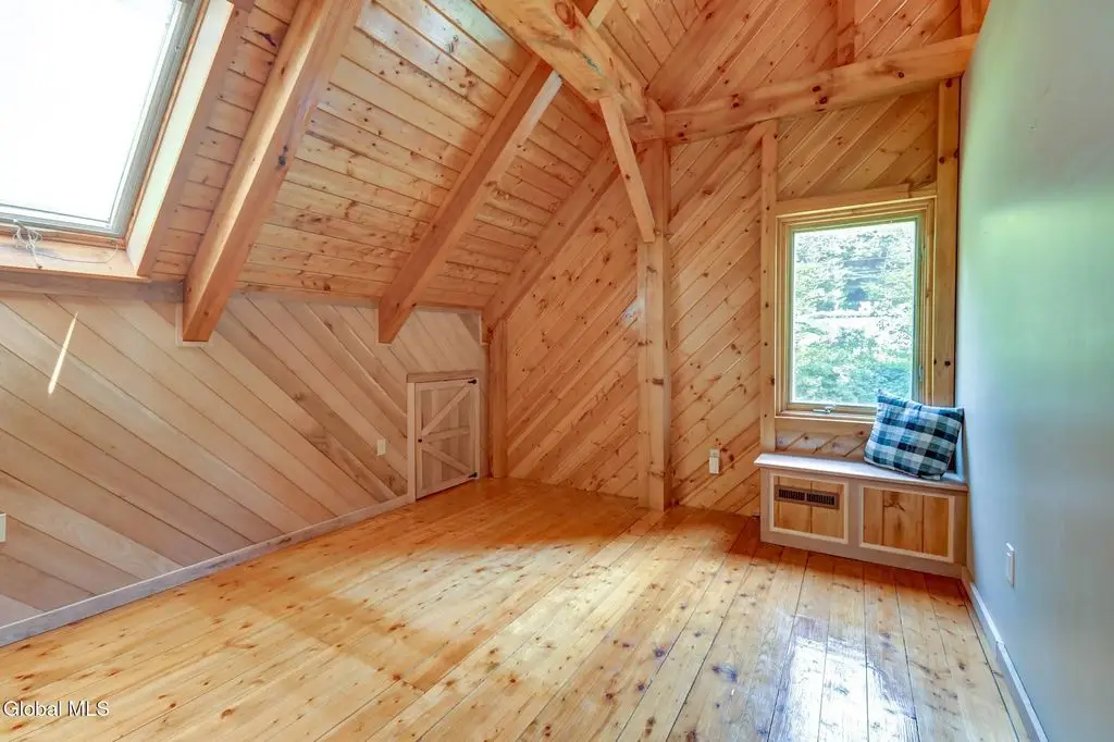 This exceptional 5-bedroom, 3-bath post-and-beam home offers 82.8 feet of direct lake frontage on the pristine Great Sacandaga Lake. With sweeping mountain views and unforgettable sunsets, it's the perfect year-round retreat. Located in low-tax Saratoga County, this 2,670 sq ft home features stunning oak floors with black walnut inlay, vaulted ceilings, and bright, open living spaces. The main floor includes a spacious primary suite with a walk-in closet, while the upper level boasts a large loft overlooking the lake, a dedicated office, three additional bedrooms, and a full bath. The walkout basement offers limitless potential - whether you're dreaming of a game room, gym, guest suite, or expanded living area. Just a short 30-minute drive to Saratoga Springs or Lake George. Dock included.