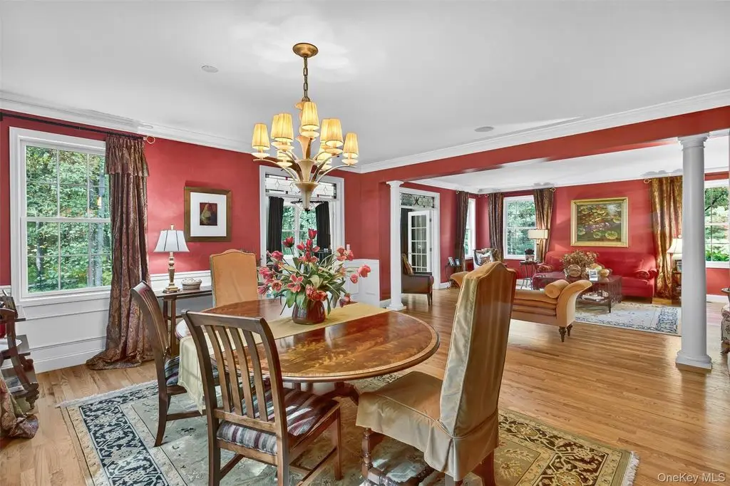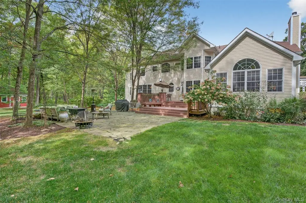 Nestled in one of Cornwall's most sought-after cul-de-sacs, Chadeayne Woods, this stately brick colonial offers nearly 6,000 square feet of luxurious living space and the perfect combination of privacy, craftsmanship and elegance. Tucked behind a gated entry, a quarter-mile paved driveway winds through 26 park-like acres to your own peaceful retreat. Cleared paths invite you to explore, while three fenced acres surrounding the home provide plenty of room to roam. This one-owner home was custom built, professionally decorated and inspired by a love of entertaining with ample space for guests - both inside and out! The open floor plan blends formal and functional spaces beautifully while remaining uniquely comfortable and inviting. Hardwood floors run throughout the main level and exquisite millwork - including stained glass transoms and French doors - accent the living and dining rooms opening to a music room/study. The two-story family room is anchored by a striking stone fireplace flowing seamlessly into a stunning sunroom, out to a party deck and down to a slate patio overlooking the large, level backyard. At the heart of the home, the chef's kitchen impresses with rich wood cabinetry, stainless steel appliances including a Viking cooktop with pot filler, unique mosaic tile backsplash, cooling drawers, double oven, wine refrigerator, a quartz-topped center island and two walk-in pantries. A first-floor study with a full bath offers a comfortable work-from-home option. Upstairs, the massive primary suite wing is a true standout, providing a peaceful sanctuary with a cozy window seat, built-in bookshelves and a private sitting room. The spa-inspired bathroom features dual sinks with custom cabinetry, a stylish tiled shower and an oversized cast iron tub. A jaw-dropping custom walk-in closet, filled with natural light from a wall of windows, is unmatched. Down the hall you'll find another ensuite bedroom and a guest wing with two additional spacious bedrooms and full bathroom. The finished walkout basement boasts the fifth full bathroom and a three-car garage, custom built shed and spacious mudroom/laundry off the driveway are just more highlights of this exceptional property. Experience it all in a tranquil, storybook setting within the Cornwall school district - complete with natural gas, municipal water and an ideal commuter location just minutes to highways, train, bus, village amenities, restaurants and all the best of Hudson Valley living.