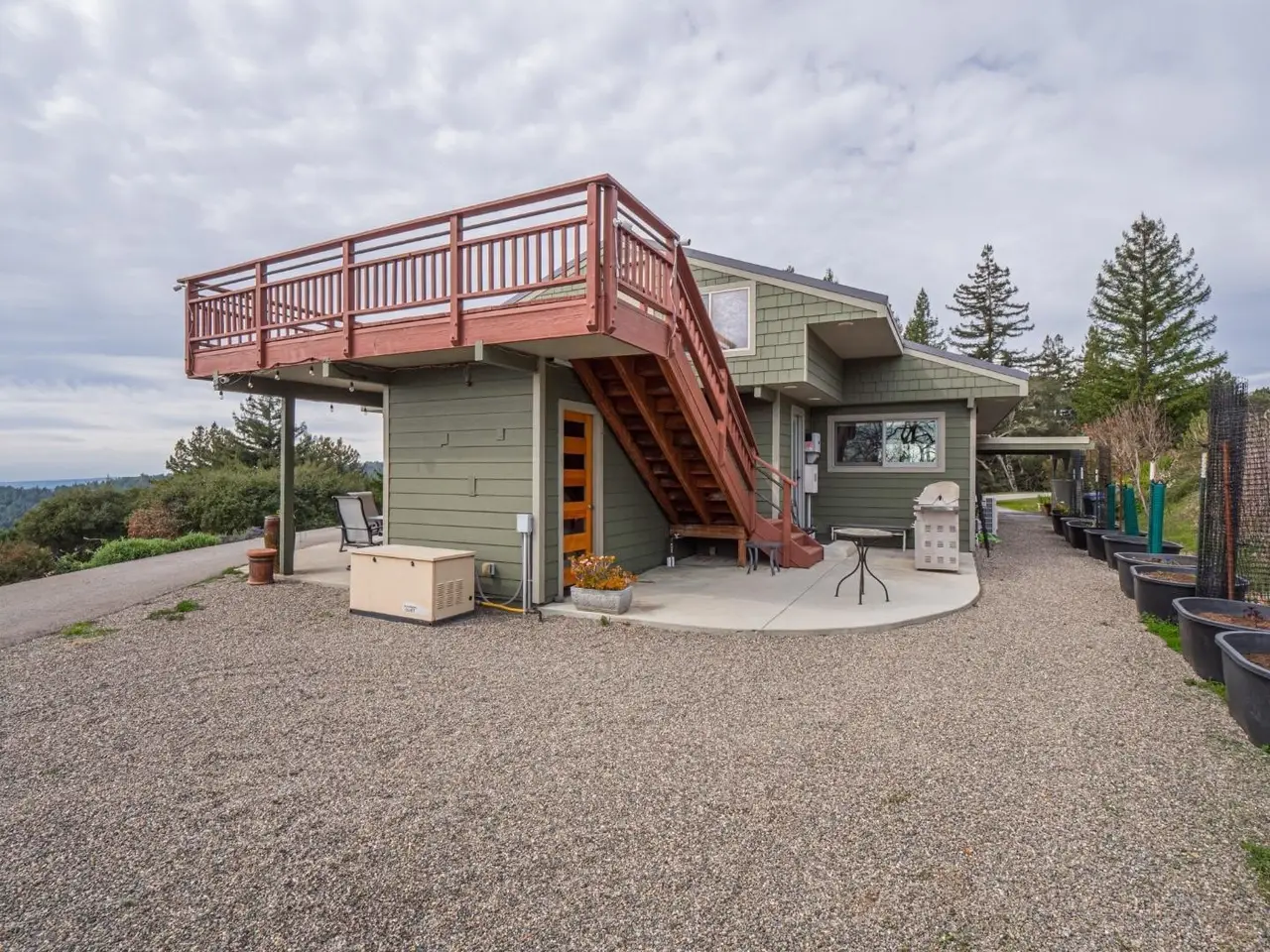 This incredible Corralitos home & property is a true masterpiece! Nestled on a 4.35 acre ridge top parcel, the custom home boasts amazing ocean, vineyard & mountain views and exudes quality features & amenities throughout. Features list for the main home include: walls of windows to take in the amazing views, hand scraped custom wood floors, open beam ceilings, terrific kitchen w/custom cabinets, granite counters, stainless appliances and double ovens; fire resistant Hardie plank siding and metal roof, owned solar electricity system; viewing deck; generous attic, work shop, heat pump w/ multiple splits heating system, 2 patios for entertaining & attached carport. Detached ADU w/kitchen, full bath, sleeping loft, solar heat pump combined w/split heating system, attached 2 car garage utilized as a studio (gives you a total of 3 bedrooms and 2.5 baths)- truly flows like an additional 500 sq ft of living- , metal roof and Harde plank siding. Rolling/sloped parcel, deer fenced, groomed w/mature fruit trees, planting beds, 1/3 share of well generating 27 gallons per minute plus a free-flowing spring provides an abundance of water w/four 5k holding tanks, hard wired generator & much more! You will be over the moon, come take a walk in the clouds, you are going to love Corralitos living!