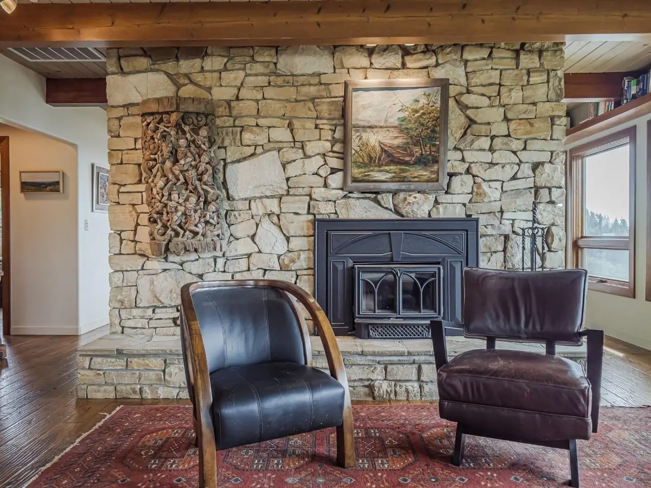 Hand-scraped custom wood floors and open beam ceilings