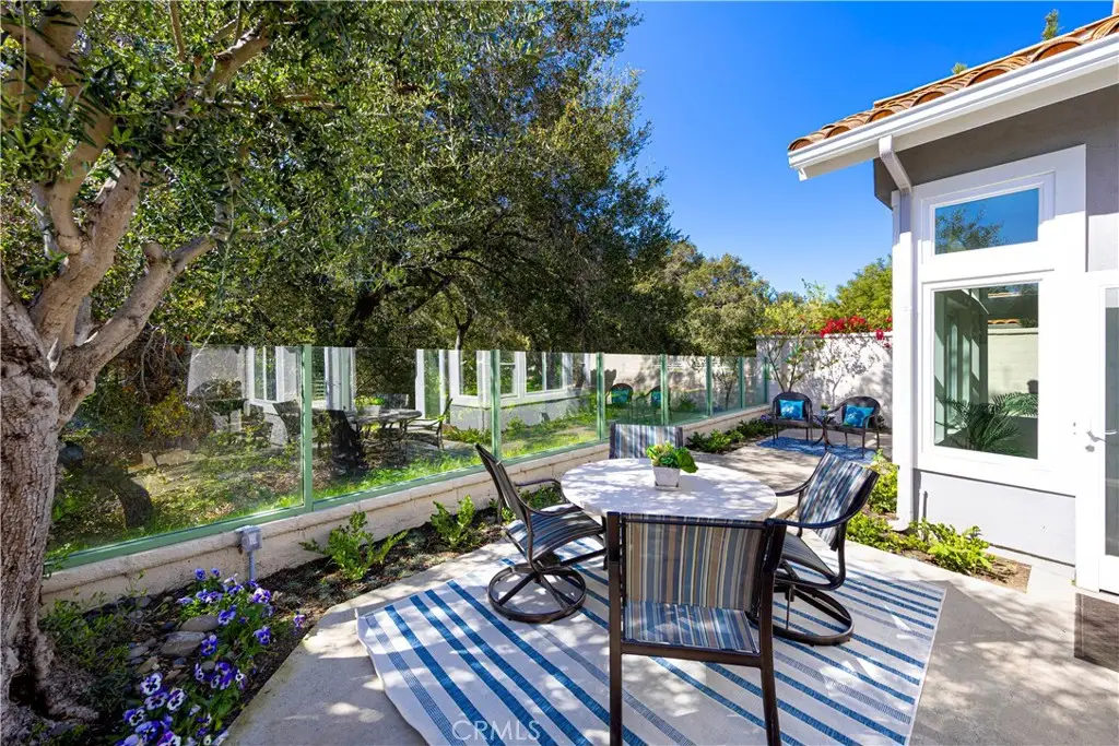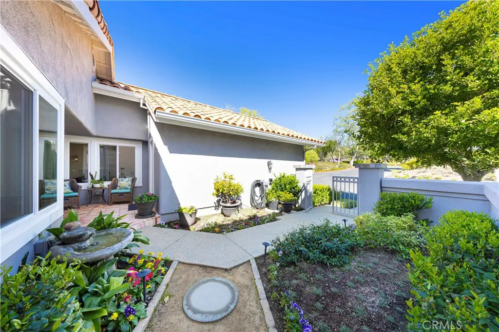 Welcome to 4 Malaquita, a beautifully upgraded 2-bedroom, 2-bathroom home nestled in The Terraces of Coto De Caza. From the moment you step through the charming courtyard, you'll be greeted by a private front patio and lush garden--your own serene retreat. Inside, thoughtful upgrades and an open floor plan create an inviting atmosphere, enhanced by high ceilings and abundant natural light. The kitchen shines with freshly painted cabinets, a new sink, modern hardware, and recessed lighting. Throughout the home, you'll find brand-new doors, energy-efficient windows with pull-down shades, and luxurious remote-controlled shades in the primary bedroom. Both bathrooms have been completely updated with stylish vanities and modern finishes, while recent renovations include a full re-pipe, new rain gutters, and a new water heater. The attached garage offers ample storage, making organization effortless. Step outside to enjoy the peaceful garden and patio areas, perfect for relaxing or entertaining. This meticulously maintained home is move-in ready--schedule a tour today and experience the charm of Coto De Caza living!