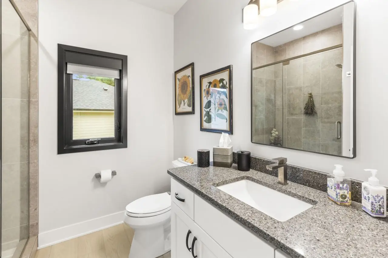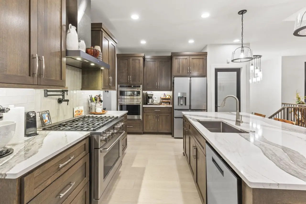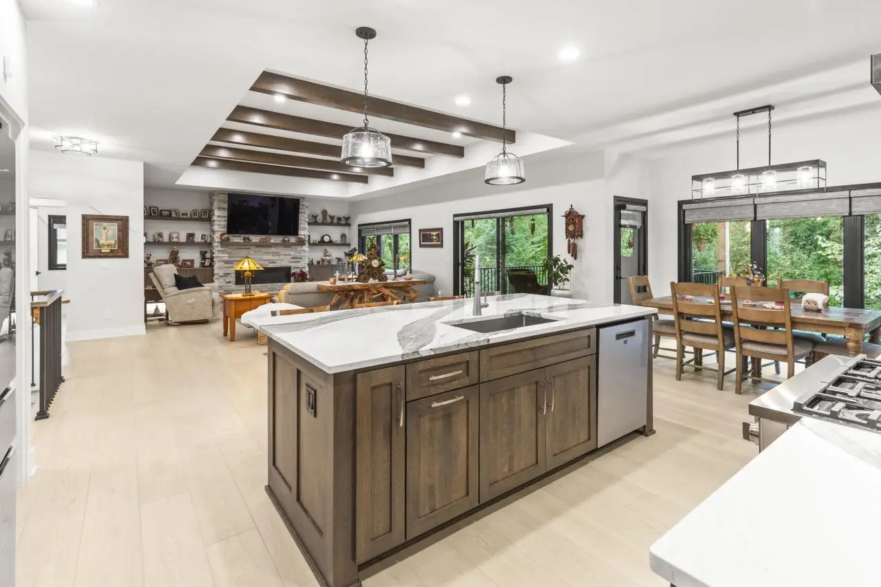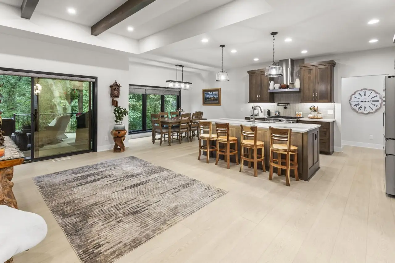Step into a home where every detail has been carefully considered and no finish overlooked. This custom built 4-bedroom, 3.5-bath blends thoughtful design with everyday comfort. The exterior sets the tone with clean lines, stone accents, and 3 car garage. Inside the open concept showcases ceiling beams, a stone fireplace, and windows framing the wooded backdrop. The kitchen and living areas combine high-end finishes with function, ideal for living and entertaining. The primary suite is a retreat with a spa inspired bath, dual vanities, soaking tub, and walk-in closet. Downstairs a family room with wet bar is perfect for gatherings, and outside a hot tub awaits for the ultimate in relaxation. Every element has been thoughtfully crafted, creating a home that is both elegant and inviting.