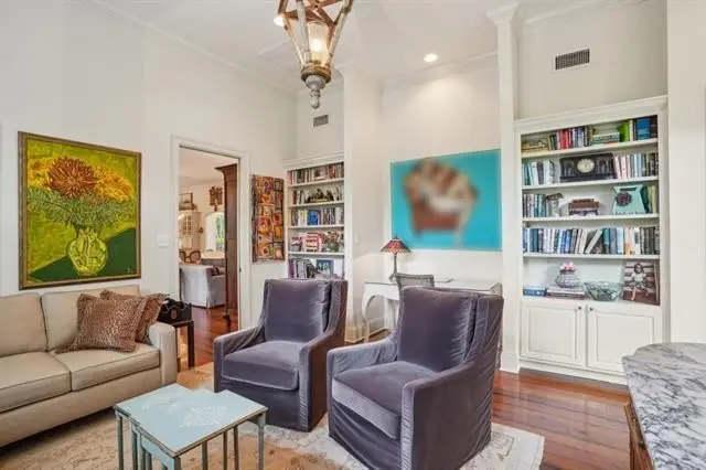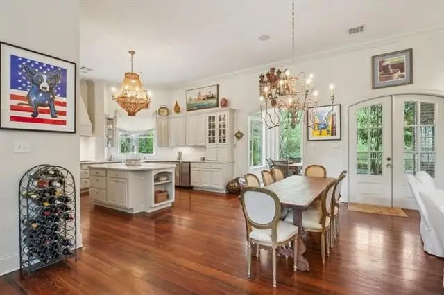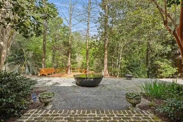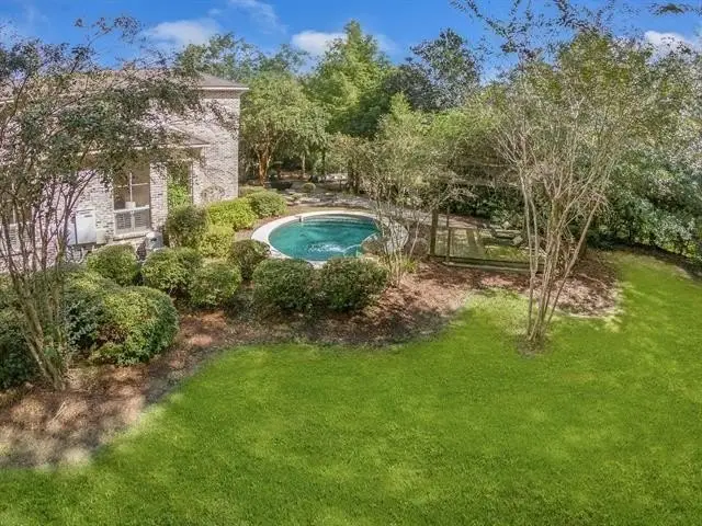 Perched on a bluff with the Little Bogue Falaya River meandering nearby is this beautiful European style home on +/-3.59 lush, private acres. Chic, professionally designed interiors with 12' ceilings, antique heart of pine floors, and custom lighting. Chef's kitchen with Wolf cooktop, farmhouse sink and marble counters opens to a spacious Living~Dining combo with French doors and a fireplace. A sunny glassed in breakfast or reading nook overlooks the grounds. A primary suite with large bath features a WOW closet! A stylish circular turret encasing the staircase leads you to a sitting room/den, four bedrooms each with a Jack and Jill bath, and a convenient computer nook. A bricked screened patio will be your go-to for morning coffee, cocktails, or to just take in the peace and serenity. An in-ground pool completes this idillic picture. Three car garage and Green space on three sides. Beechwood Gardens has a unique and compelling history with nature trails, abundant green spaces, ponds, a sandy beach on the river, and more. Breathtaking views of gorgeous grounds with abundant flora and fauna.