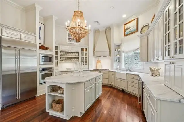 Chef's kitchen with marble counters