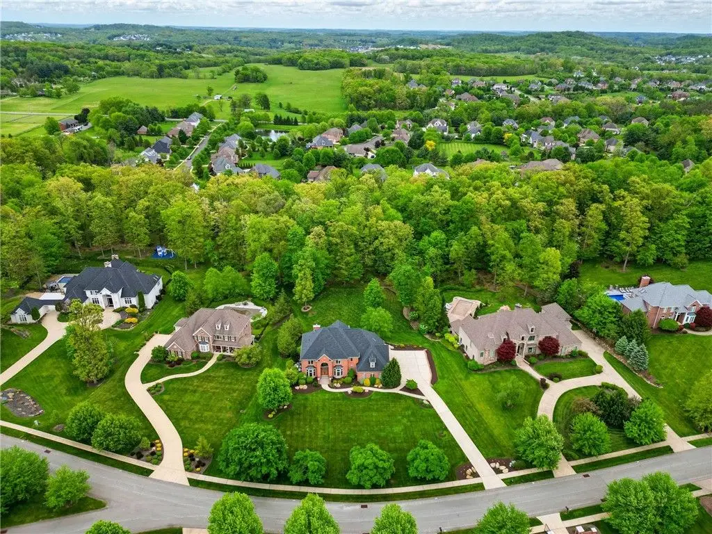 Located on 1.25 flat acres in one of Cranberry Twp's most impressive neighborhoods, Forest Knoll, 112 Mirage is the epitome of custom luxury construction. Built by Kaclik, this 4+ bedroom 5.1 bath dream home will take your breath away! New roof and new warranted HVAC, whole house generator, and irrigation system are just a few features! UNBELIEVABLE YARD - perfect for a pool! 2-story great room features many windows and stone fireplace. Kitchen has ample counter space, high end appliances, walk-in pantry, and leads to a covered porch. Private home office. Upstairs find 4 sizable bedrooms. The dramatic Master has a 2-sided fireplace, sitting room, en suite, and walk in closet. All bedrooms have private bathrooms! AND: 3rd level storage! Walk out game room is perfection. Bar, theater, exercise room, full bath, and storage/custom craft room under the garage (future wine cellar). Inground hot tub, fire pit, fireplace, and pergola! Great ceiling height! FOUR CAR attached garage! Low taxes!
