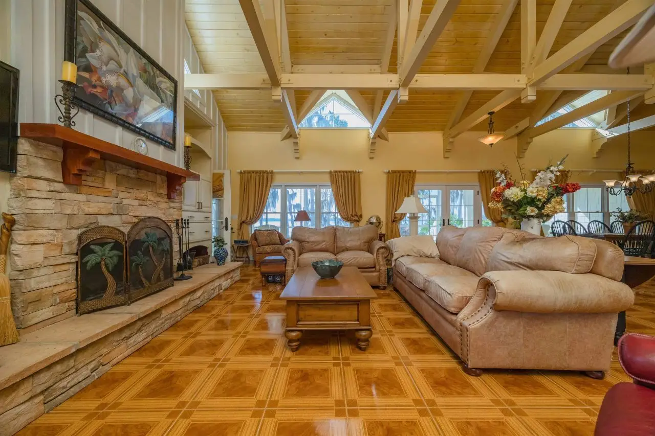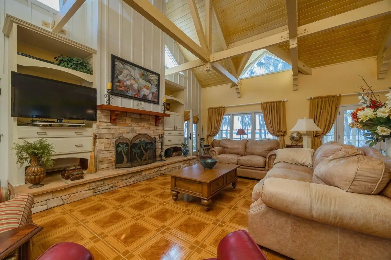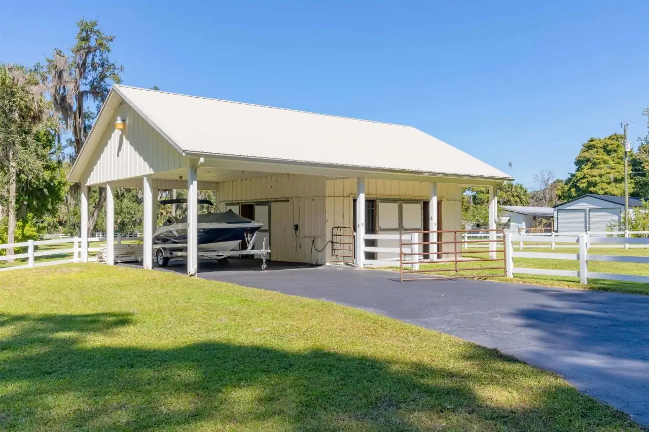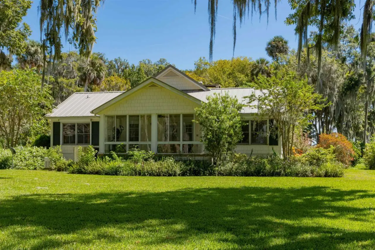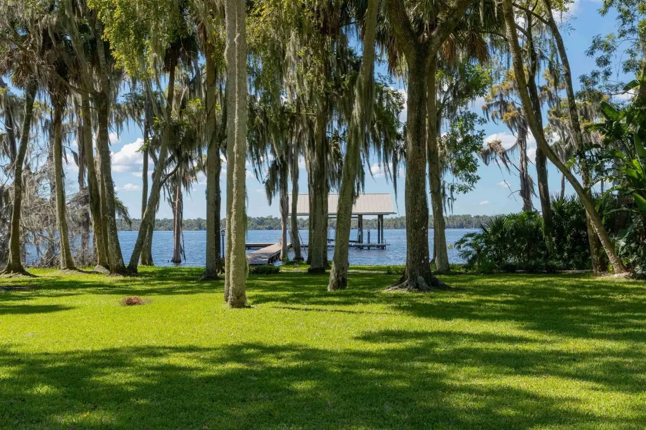 GORGEOUS RIVERFRONT CUSTOM HOME ON 22 ACRES WITH 1,729 FEET ON THE ST JOHNS RIVER! Gated entry with long winding driveway where you will pass 2 barns (a 2 stall & a 3 stall), 3 gated fully fenced pastures leading to a spectacular 2BR/2BA with den, 2402 SF home on the river with a boat dock that includes a boat lift & 2 jet ski lifts to store your Hurricane boat & your 2 Honda jet skis that come with the home! This home is being offered fully furnished & includes all furnishings. Not only do you get a boat & 2 jet skis, youll also get an electric golf cart, Kubota Tractor riding mower, shed full of tools, a chicken coop & much more. Circular driveway leads to wrap around porch with teak wood deck & a summer kitchen. Enter into the Great Room to beautiful high wood ceilings with wood beams, clerestory windows, magnificent stone fireplace & 4 sets of French Doors leading to the wraparound porches. Owners wanted a "glorified cabin" with views from every room. Rich wood parquet flooring throughout. Spacious kitchen with lots of cabinets & counters, breakfast bar, gas stove & views of the river. 2 hallways with wood molding. 1 hallway leads to pantry & huge 12x12 laundry rm with lots of cabinets & counters, large sink & door to the front wraparound porch. Other hallway leads to double French doors to owner suite with many windows for tranquil river views, huge bathroom with river view & walk in closet with 2 gun safes, plus a private sun porch filled with more tranquil river views. The 2 stall horsebarn is in a gated fenced pasture with a pond & a chicken coop. The 3 stall horsebarn also has a carport for your own Hurricane boat. Views are breathtaking!! Across the river you will see Ocala National Forest, Hog Island and Drayton Island. This is truly PARADISE!