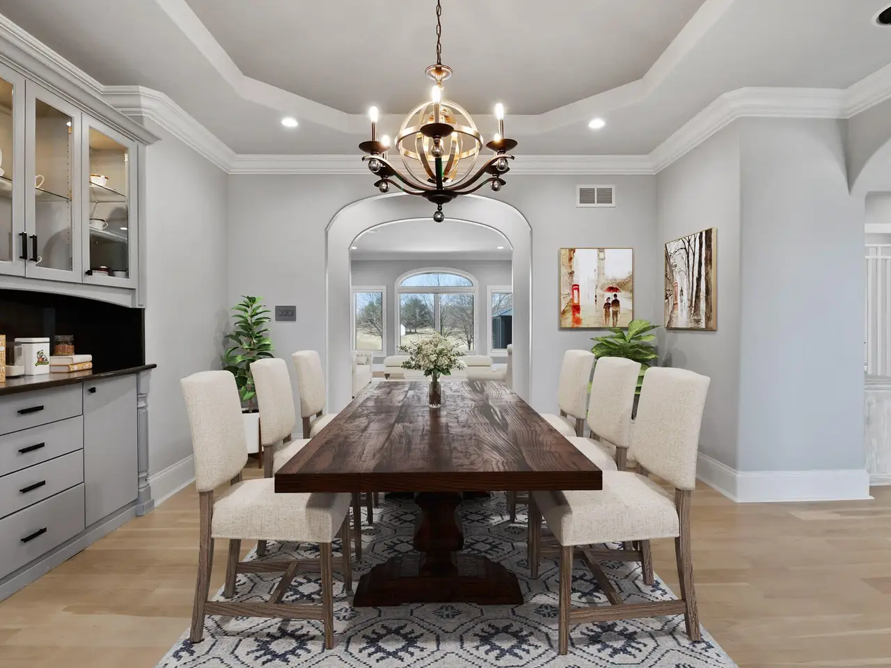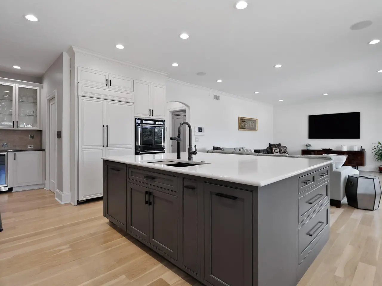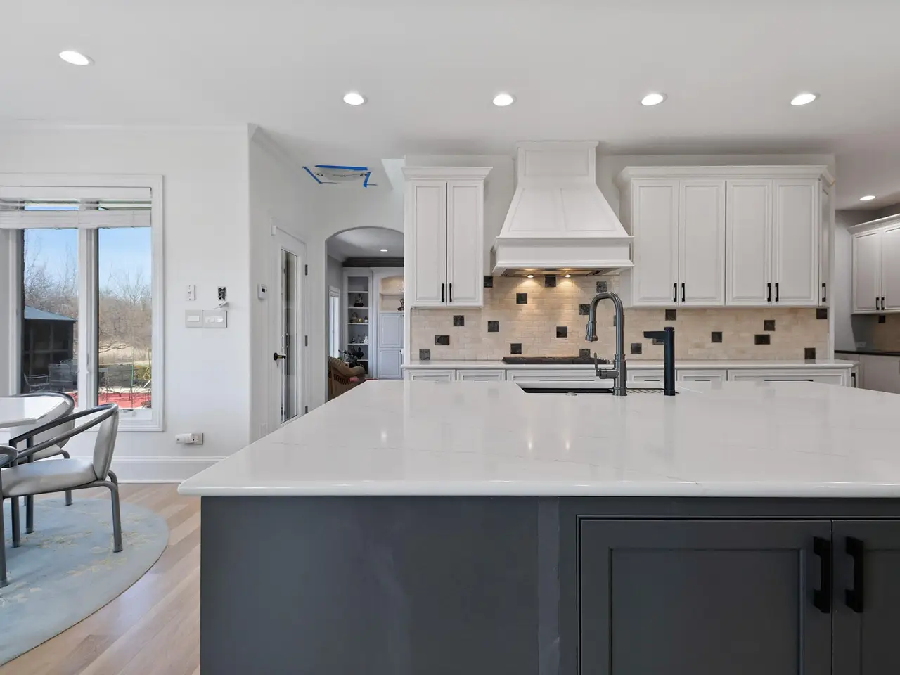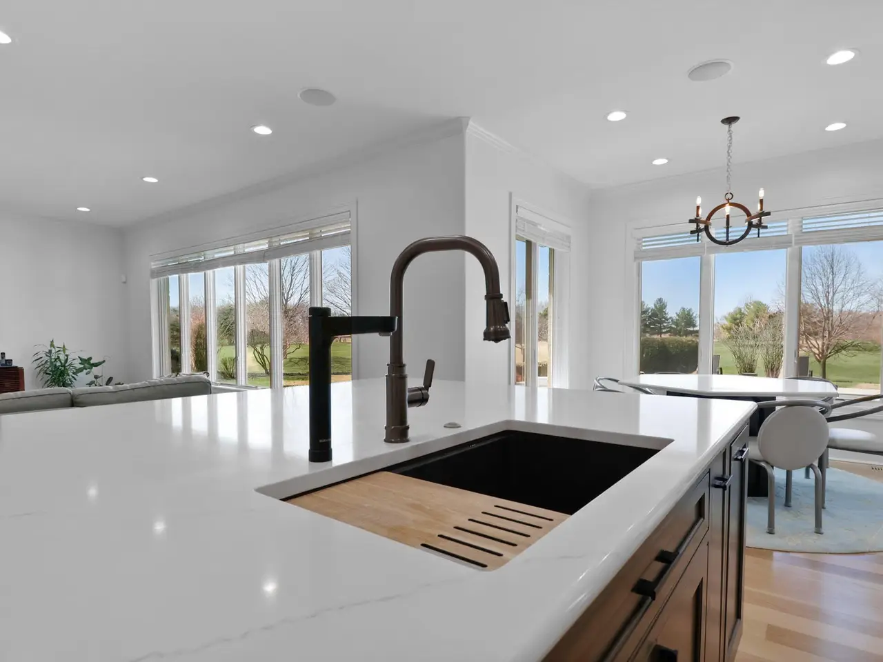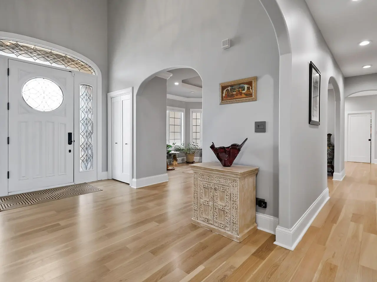 Welcome to a home where modern luxury, timeless design, and everyday comfort come together seamlessly. Nestled on a picturesque .70-acre golf course lot, this completely remodeled estate offers an unparalleled living experience that blends elegance with convenience. From the moment you step through the grand foyer, you are surrounded by refined finishes, thoughtful details, and sweeping views that make every space feel extraordinary. The main level sets the tone for both sophistication and practicality. Rich hardwood floors flow throughout, leading you into a dramatic great room anchored by a cozy fireplace and oversized windows framing the lush golf course beyond. The master suite on the main level provides the ultimate retreat with spa-like finishes, designed to evoke peace and relaxation at the end of the day. A second bedroom on the main level offers flexibility and comfort, complete with an ADA-accessible three-quarter bathroom, making it ideal for extended family or guests. An elegant formal dining room is perfectly suited for gatherings, while a private office with custom built-ins creates a polished space for productivity without sacrificing style. The heart of this home is the gourmet kitchen, designed for both function and entertaining. Featuring newer appliances, abundant cabinetry, and a separate wet bar area tailored for hosting. Upstairs, every bedroom offers its own private bath, ensuring that comfort and privacy are never compromised. A dedicated guest en-suite provides the perfect haven for visitors, while the upper-level laundry room adds convenience to daily routines. The finished basement extends the home's living space with all-new luxury vinyl plank flooring, a full kitchen and bar, 3/4 stunning bath and an expansive entertaining area. Outdoor living is elevated to resort standards with a sparkling in-ground pool, a generous patio, & uninterrupted views of the manicured fairways.