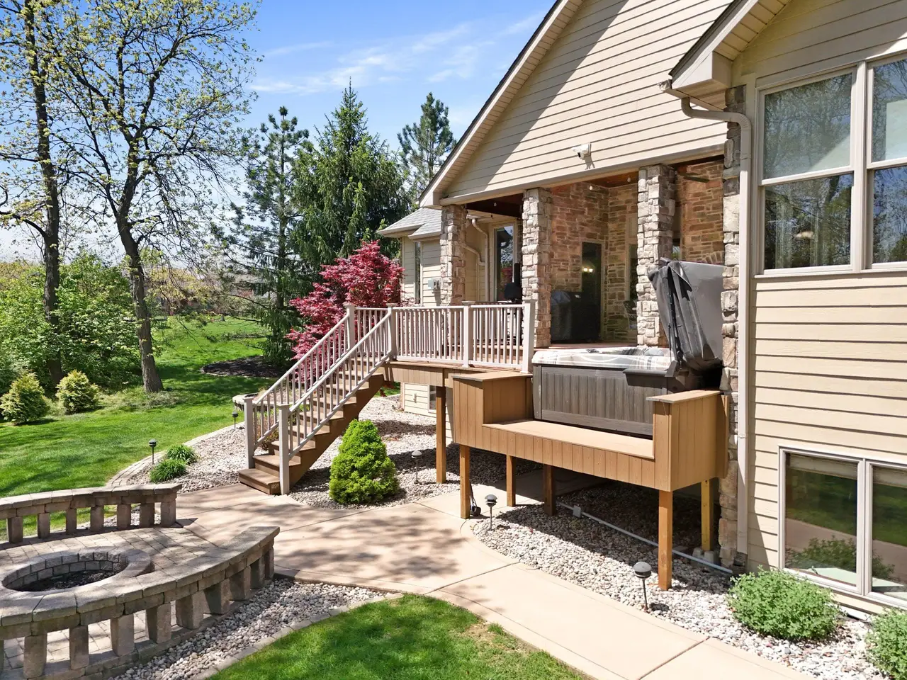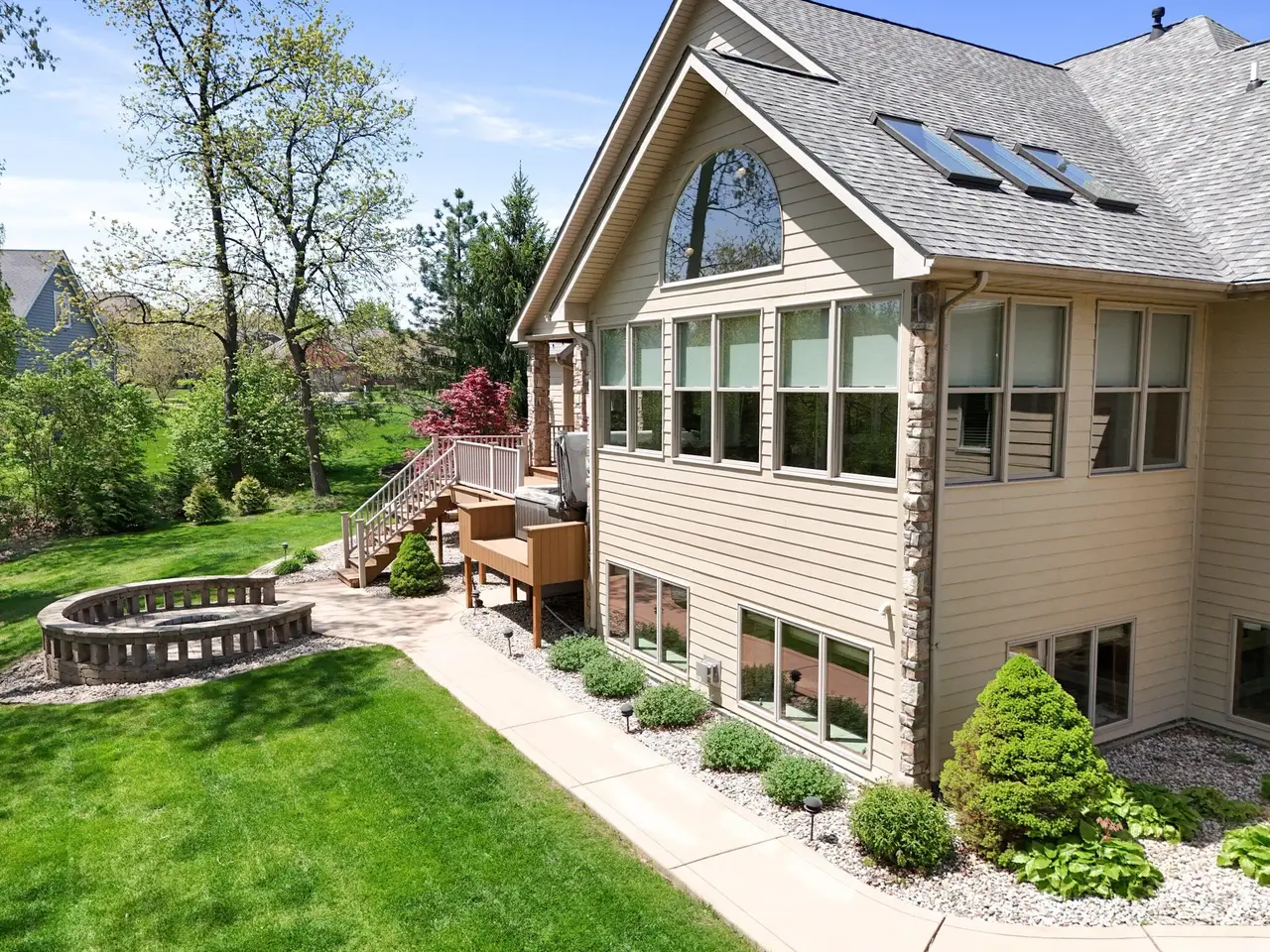 CUSTOM BUILDER'S HOME ON THE MARKET! Offered for the first time, this custom-built ranch is the personal residence of the builder--crafted with exceptional attention to detail and quality throughout.This expansive home features 5 bedrooms, 6 bathrooms, and a full finished basement designed for entertaining. As you enter, you'll be welcomed by stunning custom stone arches and an open-concept layout with clear sightlines to the private backyard. THE MAIN FLOOR INCLUDES: 4 bedrooms, 3.5 bathrooms, a private office, great room with fireplace, updated kitchen with modern finishes, and sunroom with backyard access. UPSTAIRS, a 36' x 30' loft suite offers ideal space for guests or related living, complete with a full bath, walk-in closet, and generous storage. Plumbing is ready in the utility room for a second laundry setup.THE FINISHED BASEMENT is made for entertaining, featuring: radiant heated floors, stone arches, custom bar, family room, full theater with surround sound, exercise area, game room, and private sauna.The spacious attached 3.5-car garage features epoxy flooring, radiant heat flooring, epoxy finished floor, and abundant storage space.Outdoor entertaining continues with massive Trex decking, a built-in hot tub, and access from both the sunroom and master bedroom.This is a rare opportunity to own a builder's personal masterpiece--built with care, loaded with features, and ready for its next chapter.