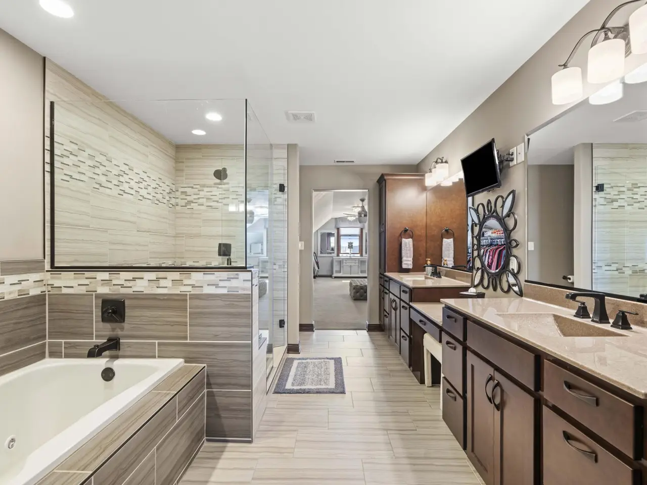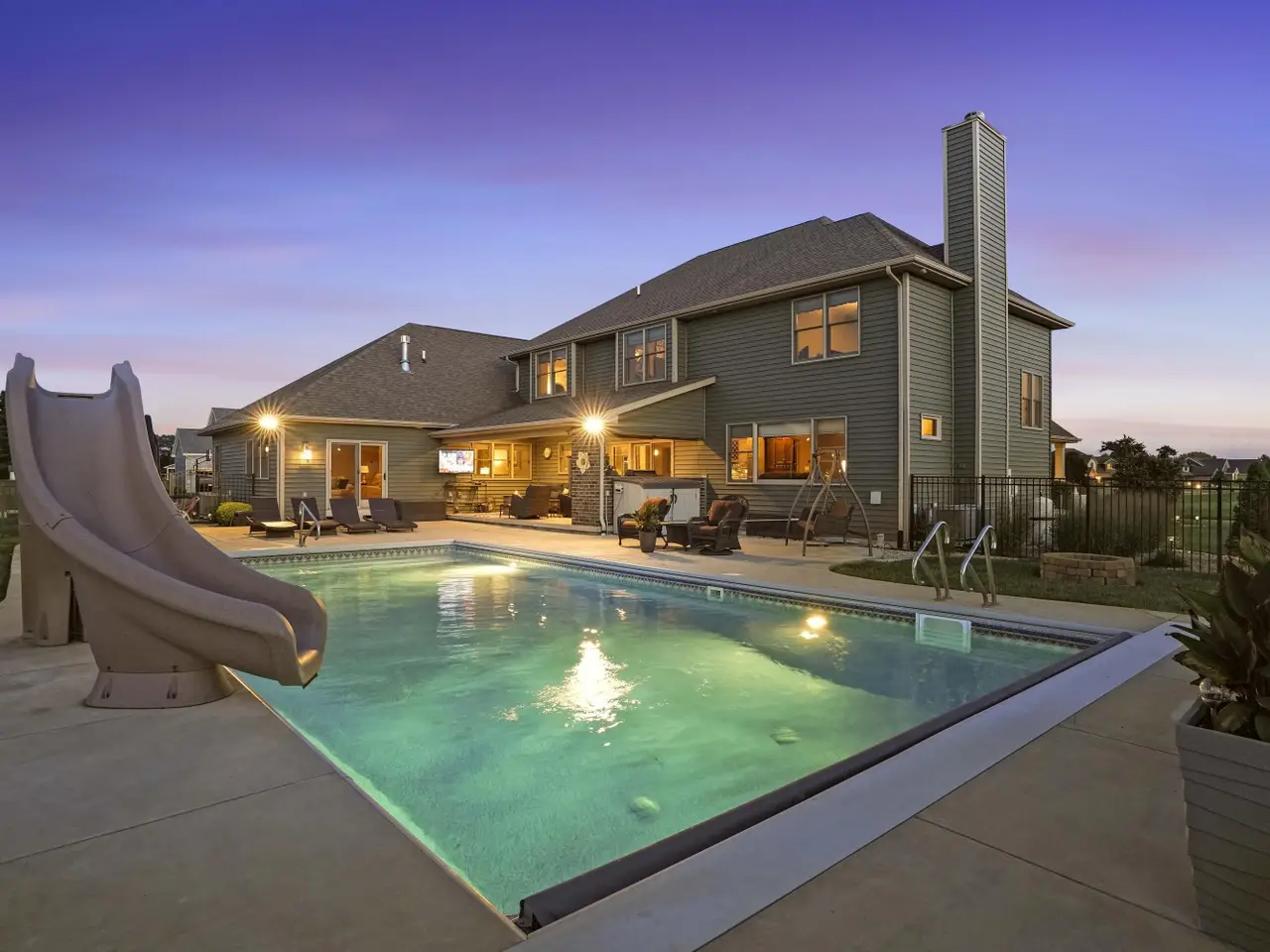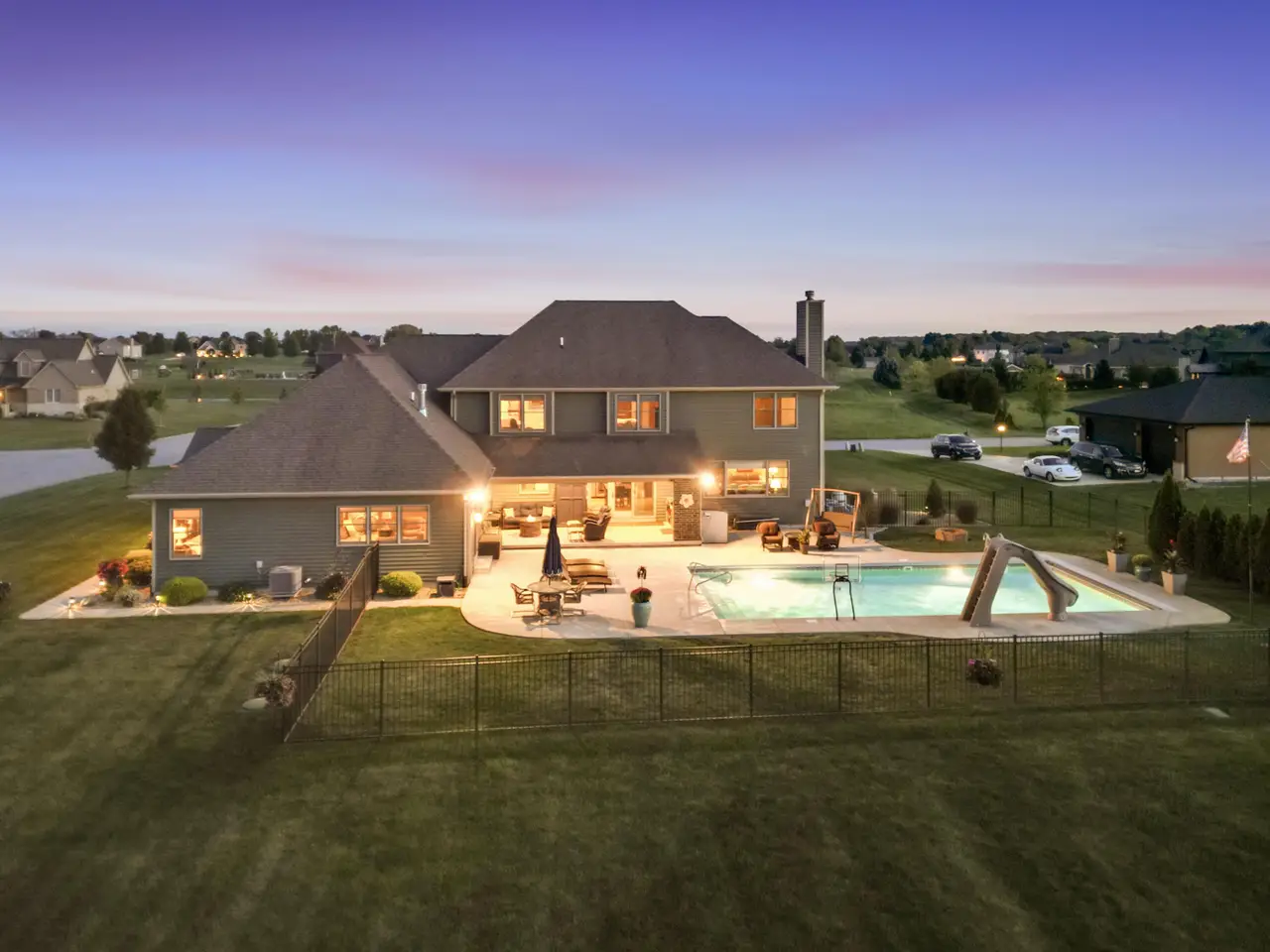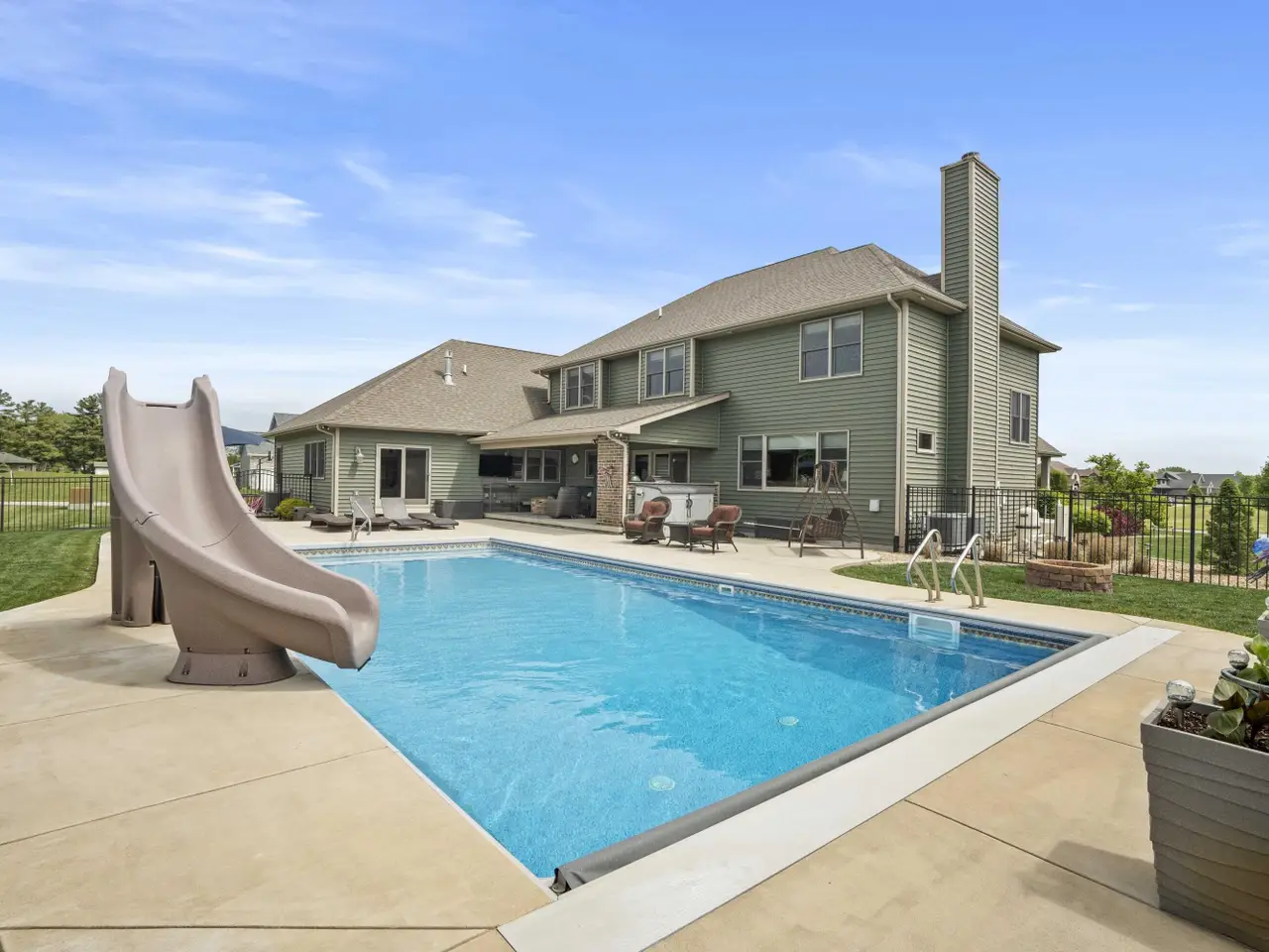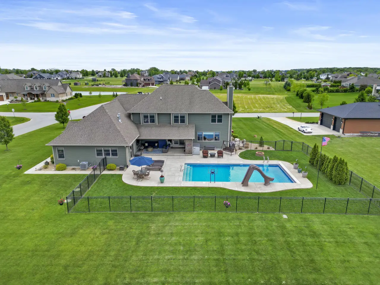 Expansive 6 BED 6 BATH CUSTOM BUILT HOME, by one of NWI premier builders! Room to roam with over 5800 SQFT OF FINISHED LIVING SPACE! This exquisite estate, perfectly situated on an oversized acre lot, offering unparalleled space and luxury. Featuring 2 spacious MASTER SUITES, Providing comfort and privacy for everyone. Step into the heart of the home--a chef's dream kitchen complete with an oversized walk-in pantry that will make meal prep a delight. Stunning quartz countertops, Induction cook top with existing gas line conversion available. Beverage cooler for even more added convenience. Main level office with custom built ins is the perfect home work space! Gather around the warmth of three elegant fireplaces as you entertain in style in the numerous living areas. With 6 generously sized bedrooms and 6 beautifully appointed baths, this home accommodates both family and guests with ease. The finished basement adds even more versatility, equipped with bar, perfect for a game room, home theater, or additional living space. Indulge in the luxury of an ENORMOUS WALK IN MASTER CLOSET, everyone's dream for organization. 2 dedicated laundry rooms, one on Main level & the other Upper, both equipped with laundry sinks to make this chore a breeze! The home also features 2 SEPARATE front entrances, providing a grand welcome for visitors. Car enthusiasts will appreciate the four-car garage, 2 SEPARATE ACCESS DOORS INTO HOME, ample space for vehicles and storage. Step outside to your private oasis, complete with a SALT WATER HEATED POOL, perfect for relaxation and entertainment year-round. WHOLE HOUSE GENERATOR gives you peace of mind knowing you're always prepared. This remarkable property is a true sanctuary, combining comfort, elegance, and functionality. A STONES THROW AWAY FROM SCHOOLS, LAKE COUNTY FAIR GROUNDS, FANTASTIC YMCA, SHOPPING, RESTAURANTS & MORE! EASY ACCESS TO I65 FOR A CHICAGO COMMUTE!
