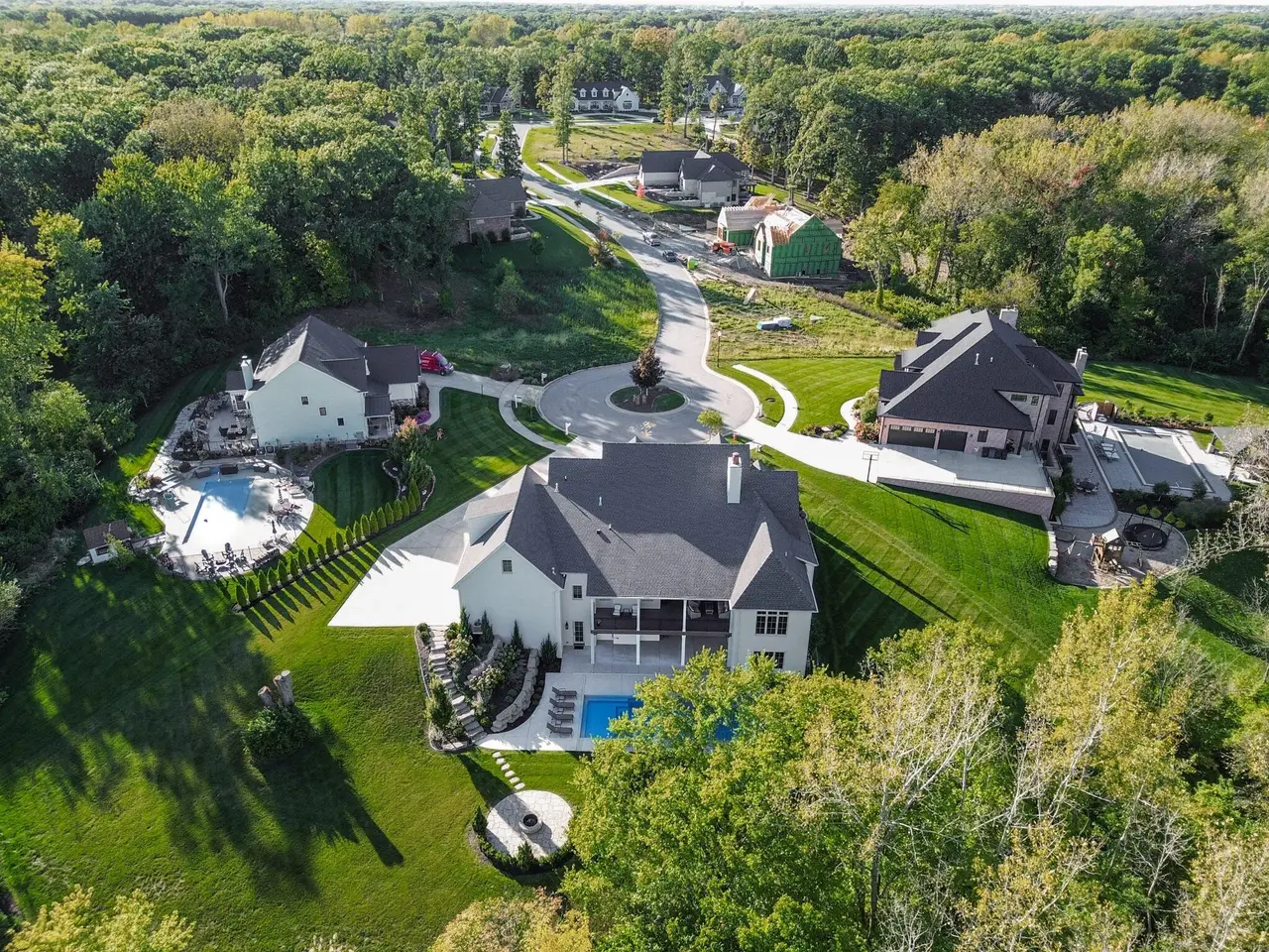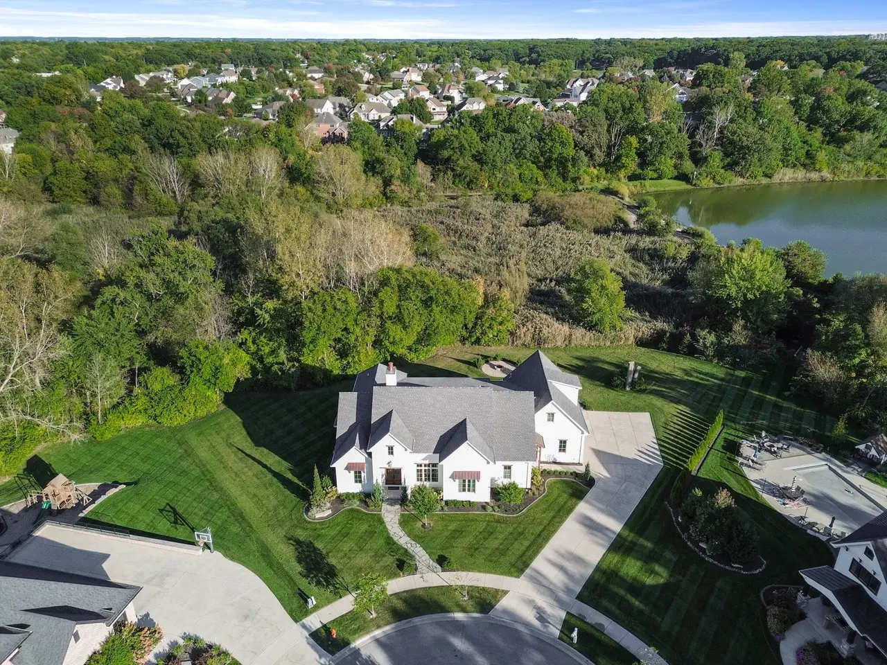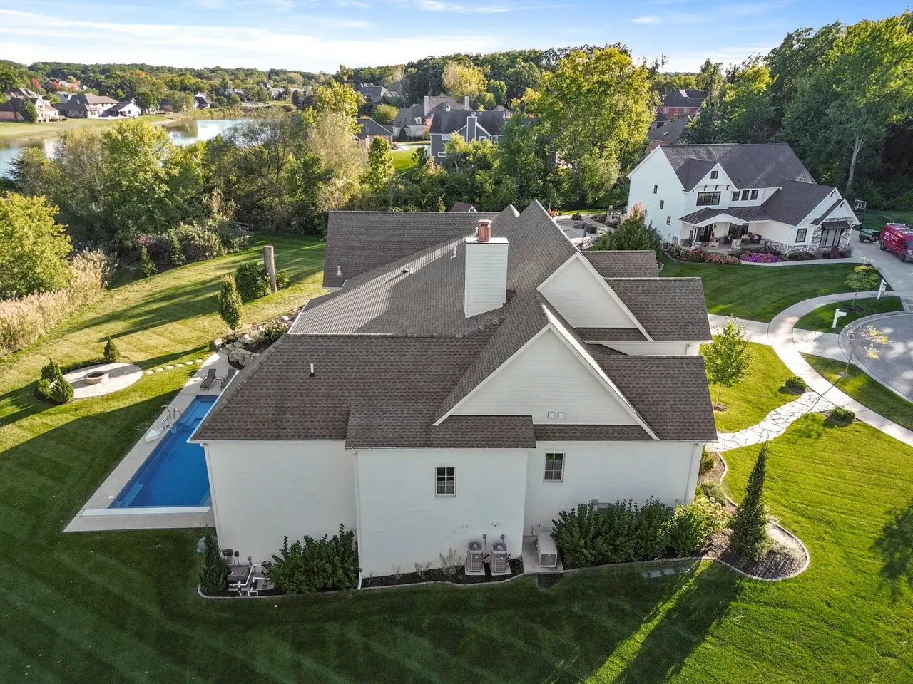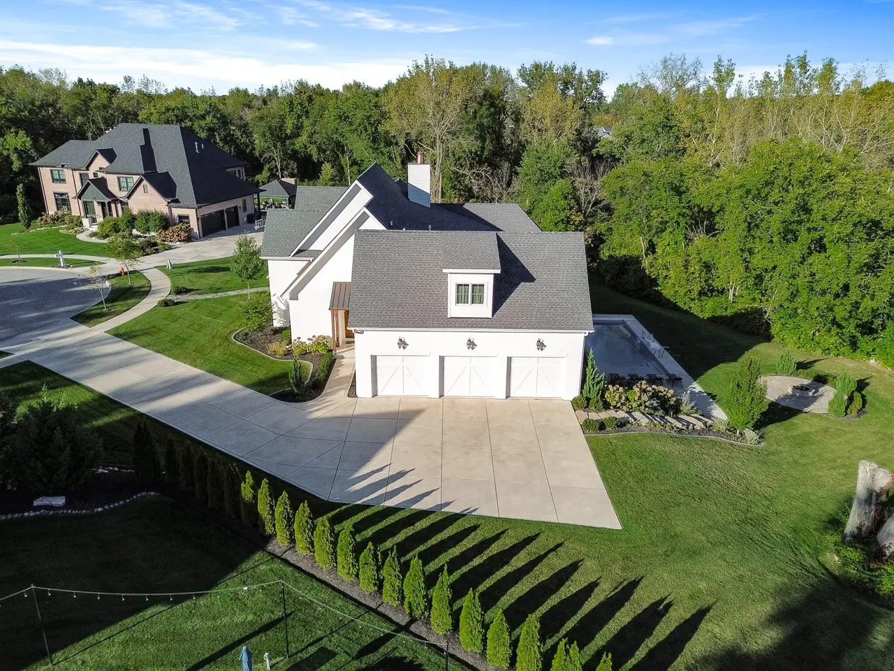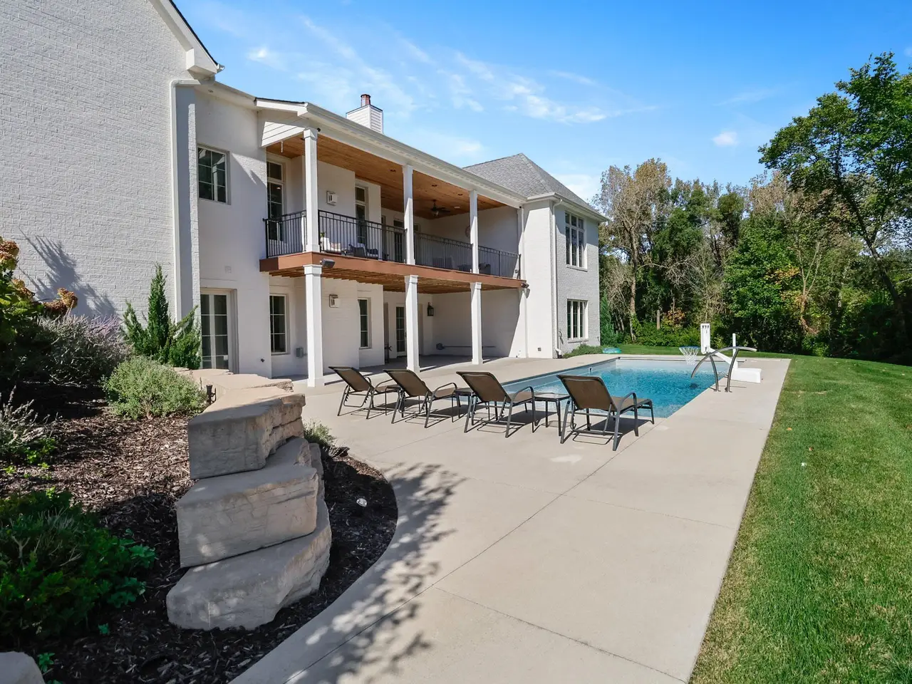 Discover a stunning blend of elegance and functionality in this sprawling 5-bedroom, 6.5 bath brick ranch with upper bedroom quarters! Perfectly situated on a private cul-de-sac lot with serene back views. This exquisite home boasts soaring 12-foot ceilings on the main level and features beautiful solid wood wide-plank flooring throughout, creating a seamless flow between spaces. Each bedroom is thoughtfully designed with its own bathroom, providing ultimate convenience and privacy. Entertain in style in the elegant formal dining room or the gourmet kitchen, which showcases an enormous island, a Sub-Zero refrigerator, a pot filler, and top-of-the-line Wolf appliances. This kitchen is a chef's delight, ideal for creating culinary masterpieces while enjoying the company of family and friends. The inviting great room features custom built-ins, a wood beamed ceiling, and numerous windows that offer stunning views of the natural surroundings, creating a bright and airy atmosphere. Relax by one of the three cozy fireplaces, or unwind with your favorite beverage at the coffee/wet bar. Double French doors lead to a maintenance-free deck that overlooks the luxurious in-ground pool, fire pit, and picturesque wooded backdrop, making it perfect for outdoor entertaining and soaking in the tranquility of nature. The large master suite is a true retreat, featuring a spa soaker tub, a walk-in tile shower, and two spacious walk-in closets, ensuring ample storage and comfort. Additionally, the finished walkout basement is the ultimate entertainment haven, complete with a workout room for your fitness routine, a home theater for movie nights, a full kitchen/bar for hosting gatherings, a 3/4 bath for guests, and a fifth bedroom with a private bath, complemented by a custom wine rack for the discerning connoisseur. This home is not just a place to live; it's a luxurious lifestyle waiting to be embraced, offering an unparalleled combination of sophisticated design and modern amenities.