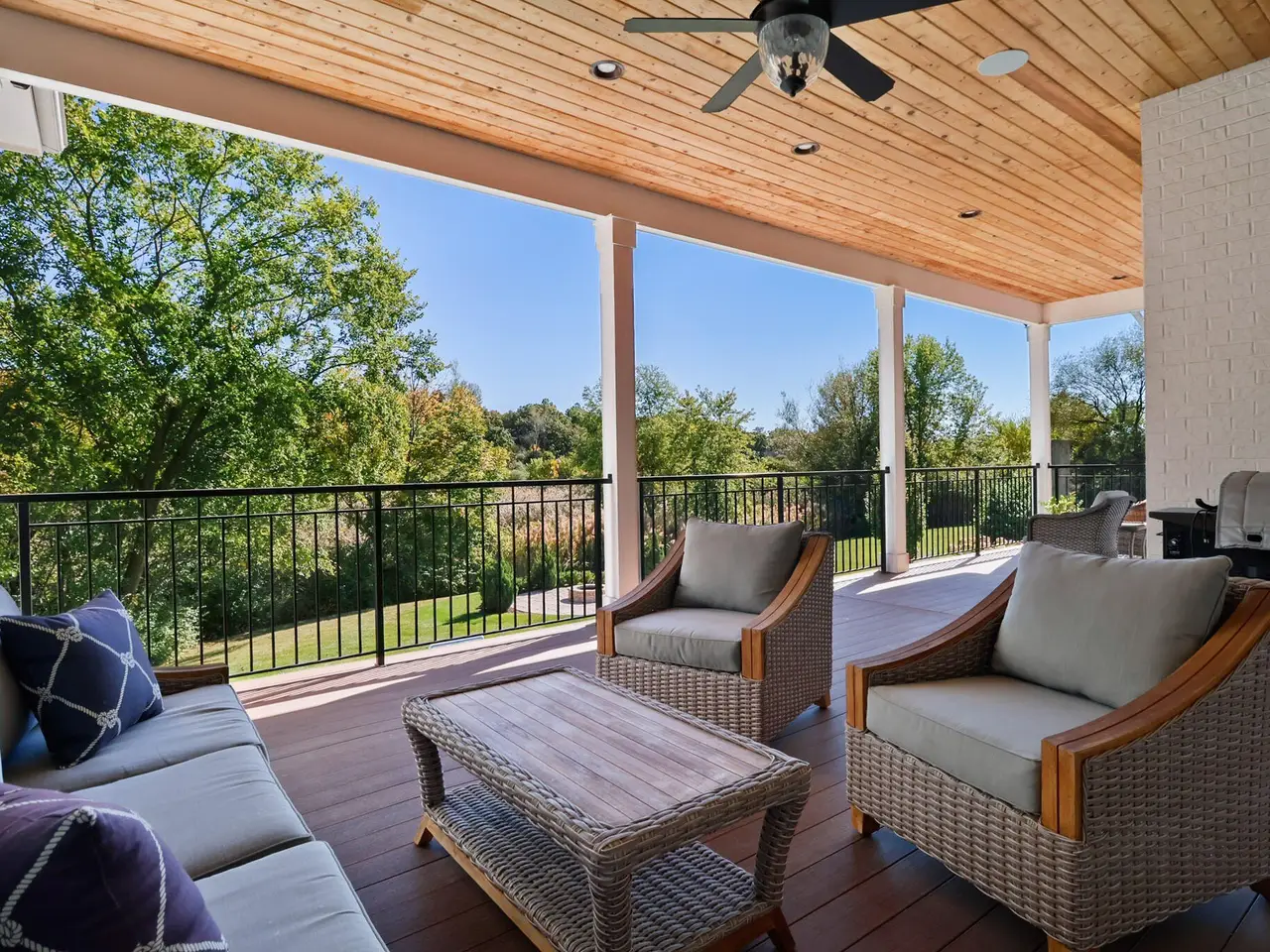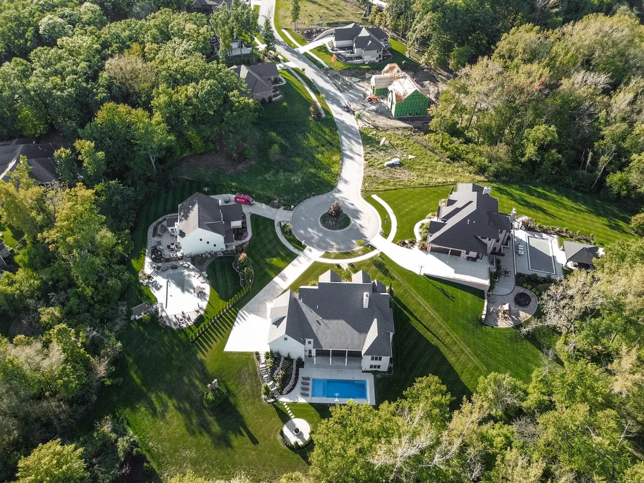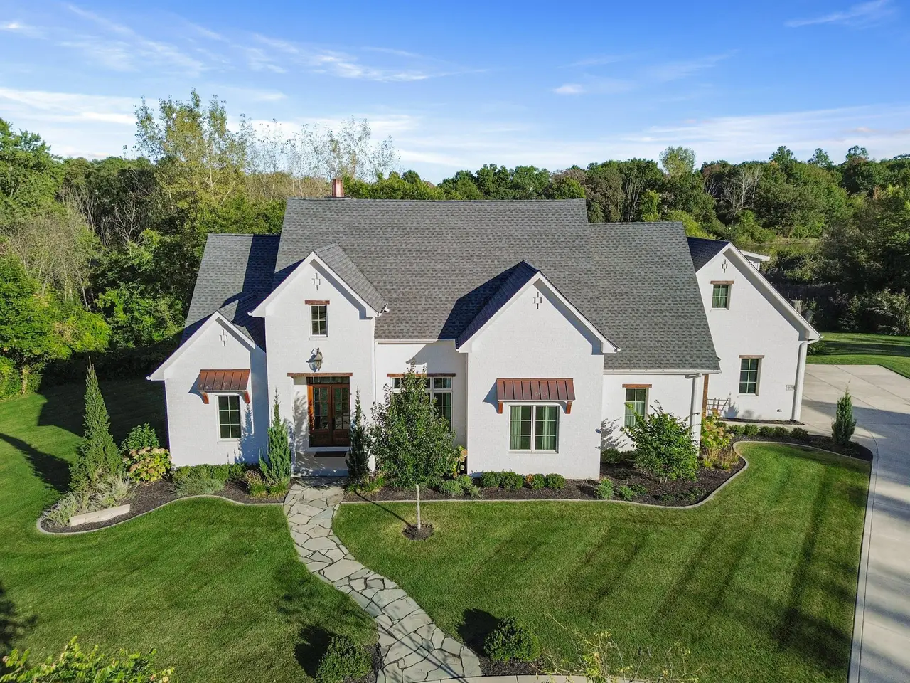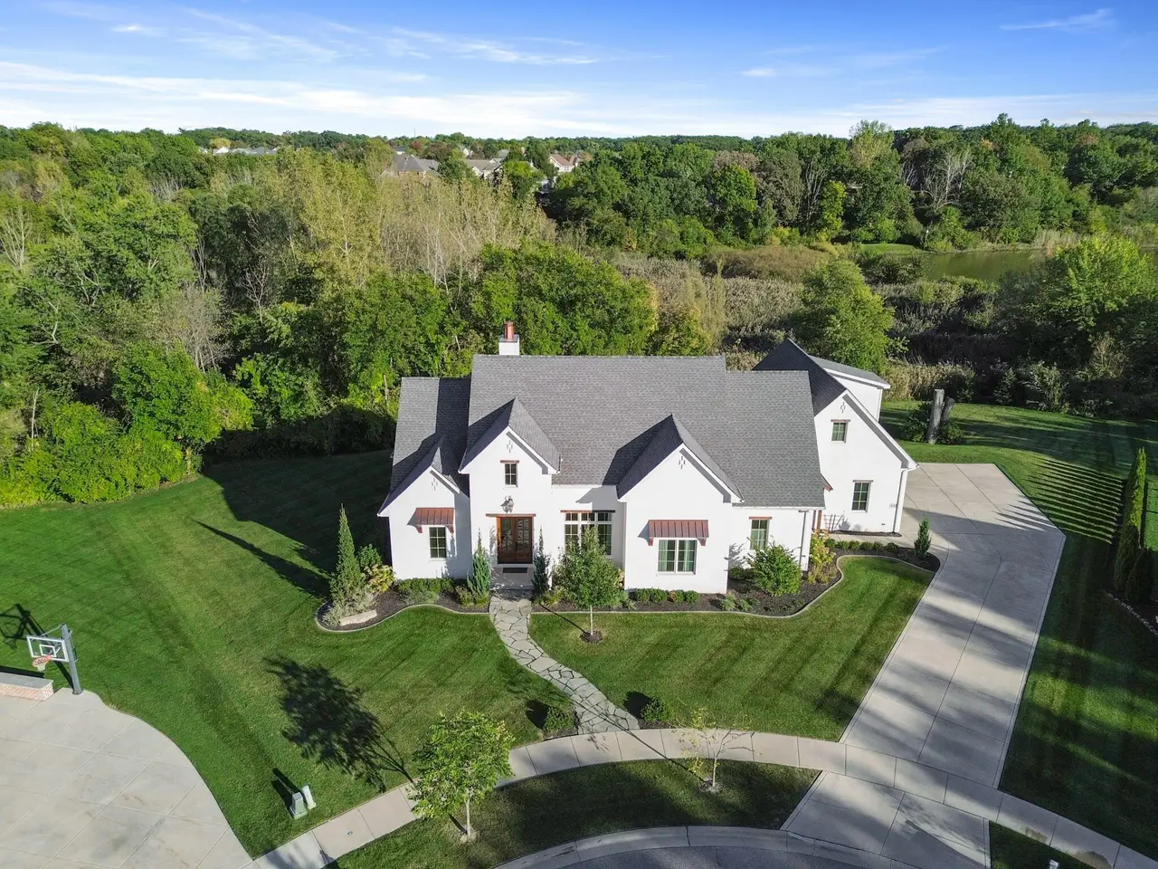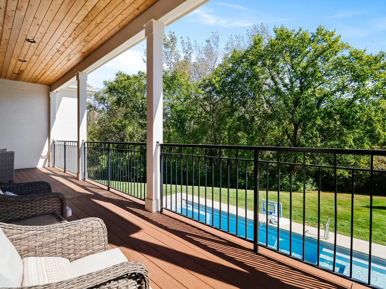Discover a stunning blend of elegance and functionality in this sprawling 5-bedroom, 6.5 bath brick ranch with upper bedroom quarters! Perfectly situated on a private cul-de-sac lot with serene back views. This exquisite home boasts soaring 12-foot ceilings on the main level and features beautiful solid wood wide-plank flooring throughout, creating a seamless flow between spaces. Each bedroom is thoughtfully designed with its own bathroom, providing ultimate convenience and privacy. Entertain in style in the elegant formal dining room or the gourmet kitchen, which showcases an enormous island, a Sub-Zero refrigerator, a pot filler, and top-of-the-line Wolf appliances. This kitchen is a chef's delight, ideal for creating culinary masterpieces while enjoying the company of family and friends. The inviting great room features custom built-ins, a wood beamed ceiling, and numerous windows that offer stunning views of the natural surroundings, creating a bright and airy atmosphere. Relax by one of the three cozy fireplaces, or unwind with your favorite beverage at the coffee/wet bar. Double French doors lead to a maintenance-free deck that overlooks the luxurious in-ground pool, fire pit, and picturesque wooded backdrop, making it perfect for outdoor entertaining and soaking in the tranquility of nature. The large master suite is a true retreat, featuring a spa soaker tub, a walk-in tile shower, and two spacious walk-in closets, ensuring ample storage and comfort. Additionally, the finished walkout basement is the ultimate entertainment haven, complete with a workout room for your fitness routine, a home theater for movie nights, a full kitchen/bar for hosting gatherings, a 3/4 bath for guests, and a fifth bedroom with a private bath, complemented by a custom wine rack for the discerning connoisseur. This home is not just a place to live; it's a luxurious lifestyle waiting to be embraced, offering an unparalleled combination of sophisticated design and modern amenities.