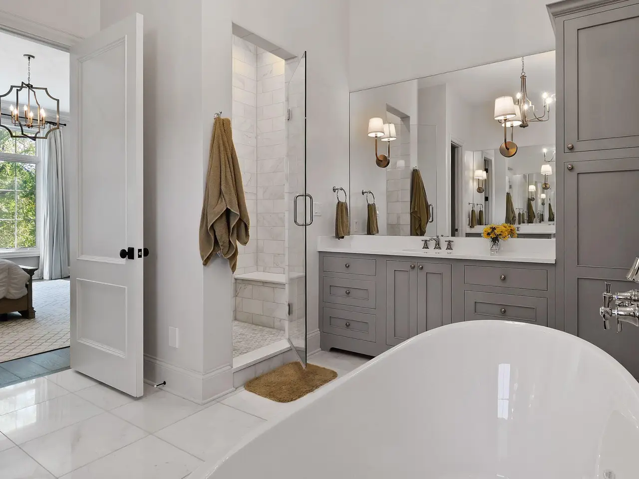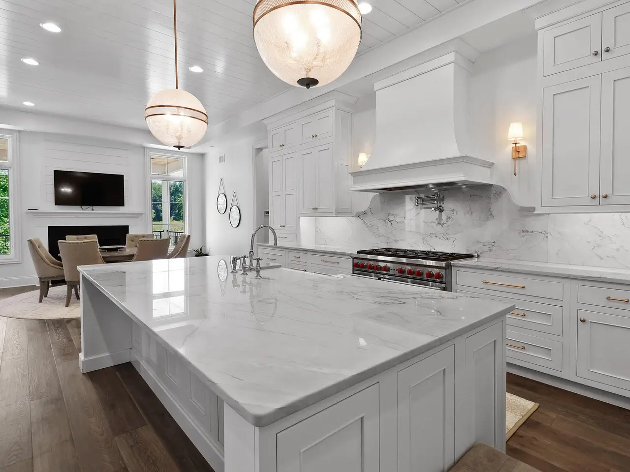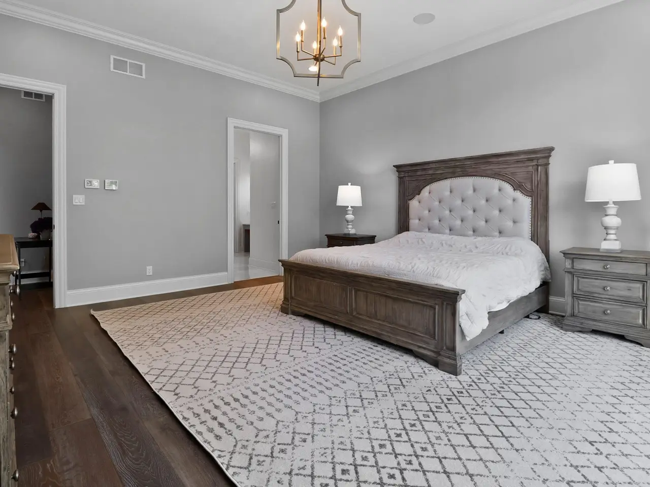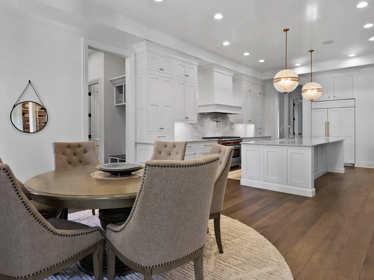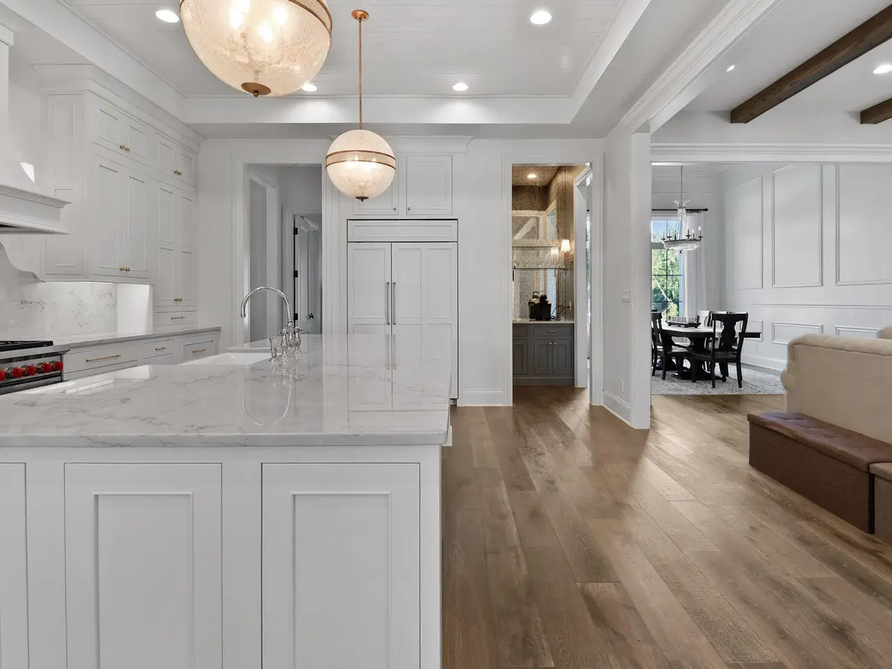 Discover a stunning blend of elegance and functionality in this sprawling 5-bedroom, 6.5 bath brick ranch with upper bedroom quarters! Perfectly situated on a private cul-de-sac lot with serene back views. This exquisite home boasts soaring 12-foot ceilings on the main level and features beautiful solid wood wide-plank flooring throughout, creating a seamless flow between spaces. Each bedroom is thoughtfully designed with its own bathroom, providing ultimate convenience and privacy. Entertain in style in the elegant formal dining room or the gourmet kitchen, which showcases an enormous island, a Sub-Zero refrigerator, a pot filler, and top-of-the-line Wolf appliances. This kitchen is a chef's delight, ideal for creating culinary masterpieces while enjoying the company of family and friends. The inviting great room features custom built-ins, a wood beamed ceiling, and numerous windows that offer stunning views of the natural surroundings, creating a bright and airy atmosphere. Relax by one of the three cozy fireplaces, or unwind with your favorite beverage at the coffee/wet bar. Double French doors lead to a maintenance-free deck that overlooks the luxurious in-ground pool, fire pit, and picturesque wooded backdrop, making it perfect for outdoor entertaining and soaking in the tranquility of nature. The large master suite is a true retreat, featuring a spa soaker tub, a walk-in tile shower, and two spacious walk-in closets, ensuring ample storage and comfort. Additionally, the finished walkout basement is the ultimate entertainment haven, complete with a workout room for your fitness routine, a home theater for movie nights, a full kitchen/bar for hosting gatherings, a 3/4 bath for guests, and a fifth bedroom with a private bath, complemented by a custom wine rack for the discerning connoisseur. This home is not just a place to live; it's a luxurious lifestyle waiting to be embraced, offering an unparalleled combination of sophisticated design and modern amenities.