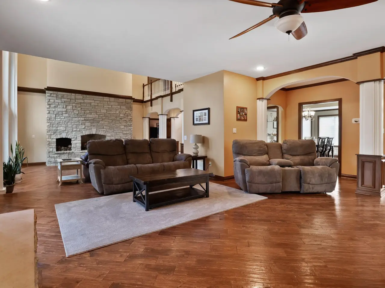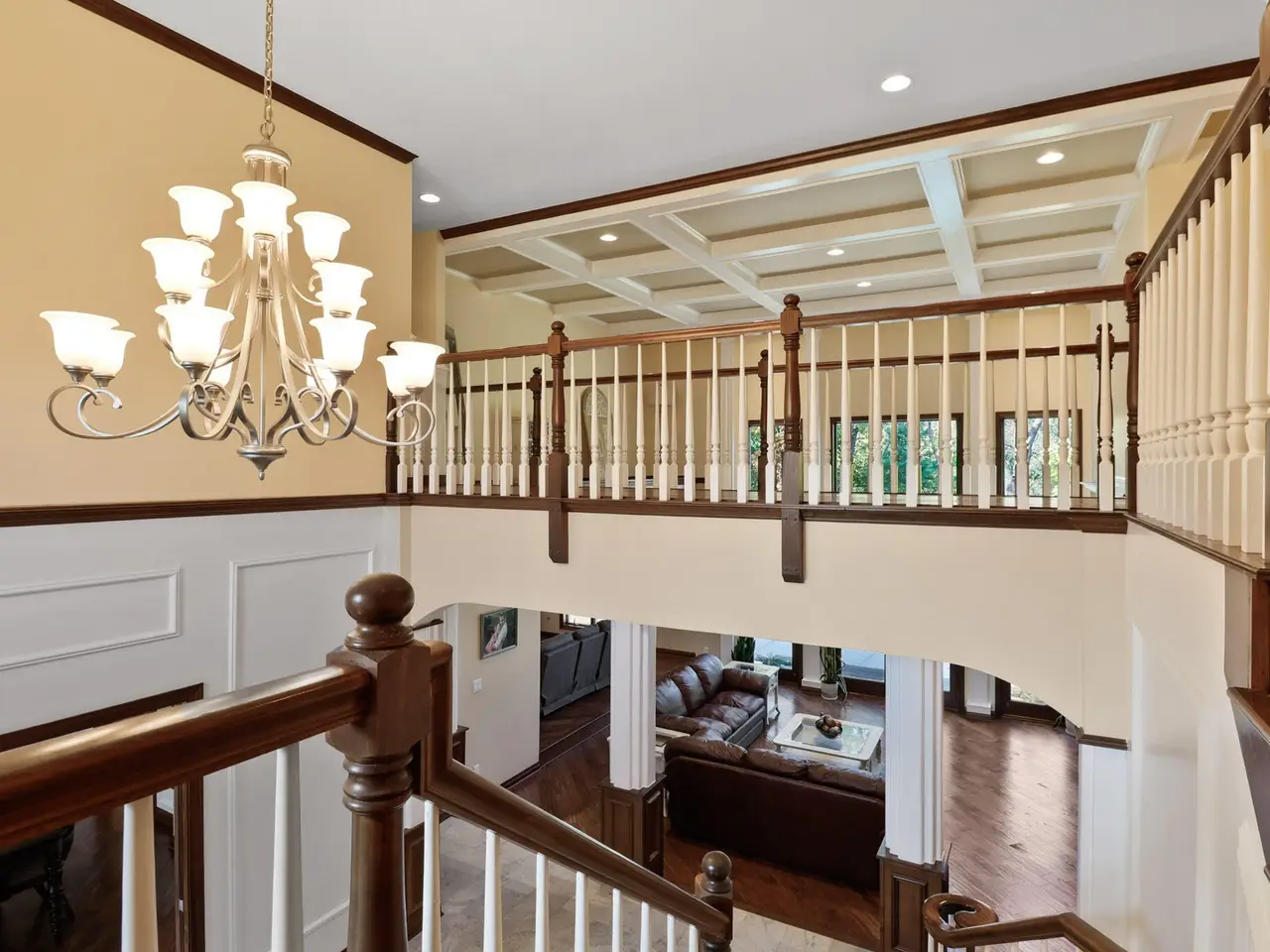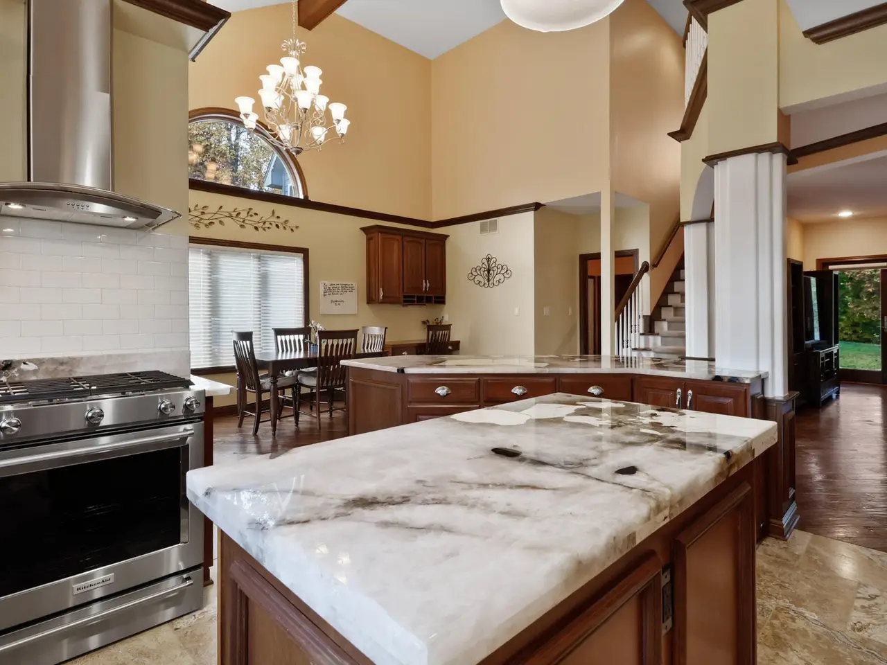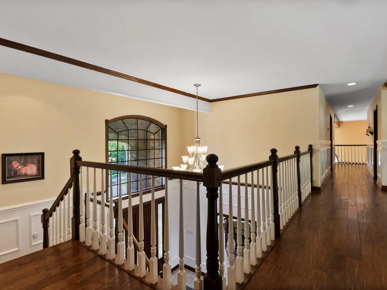 Discover unmatched privacy and elegance with this stunning 7- ACRE estate with PRIVATE POND nestled in the heart of Crown Point. This one-of-a-kind property offers a rare blend of high-end finishes, thoughtful design, and expansive space -- perfect for entertaining or enjoying peaceful country living just minutes from town conveniences. Step inside to find solid hickory floors with cork underlayment, providing superior sound and temperature control throughout. The gourmet kitchen and bathrooms feature exquisite Patagonia marble, creating a striking and luxurious aesthetic. Three all-stone fireplaces add warmth and character to the living spaces. Enjoy year-round comfort with zoned heating and cooling, and the convenience of a walk-in attic for ample storage. The home includes two 80-gallon hot water heaters to easily accommodate large households or guests. On the main level you will find the primary suite that includes a walk-in closet and attached office with fireplace. Step into a luxurious spa like bathroom and admire the custom walk-in shower and soaker tub. Make your way up to the upper level where you will be greeted with an elegant catwalk that leads to more spacious rooms plus a second laundry room! The bonus room is perfect for extra space to relax or entertain! The extravagance doesn't end on the inside with a stocked pond and natural creek to enjoy. You will find two private entrances and a massive driveway that fits up to 35 vehicles -- ideal for gatherings and events. YOU DO NOT WANT TO MISS OUT ON THIS ONCE IN A LIFETIME PROPERTY!