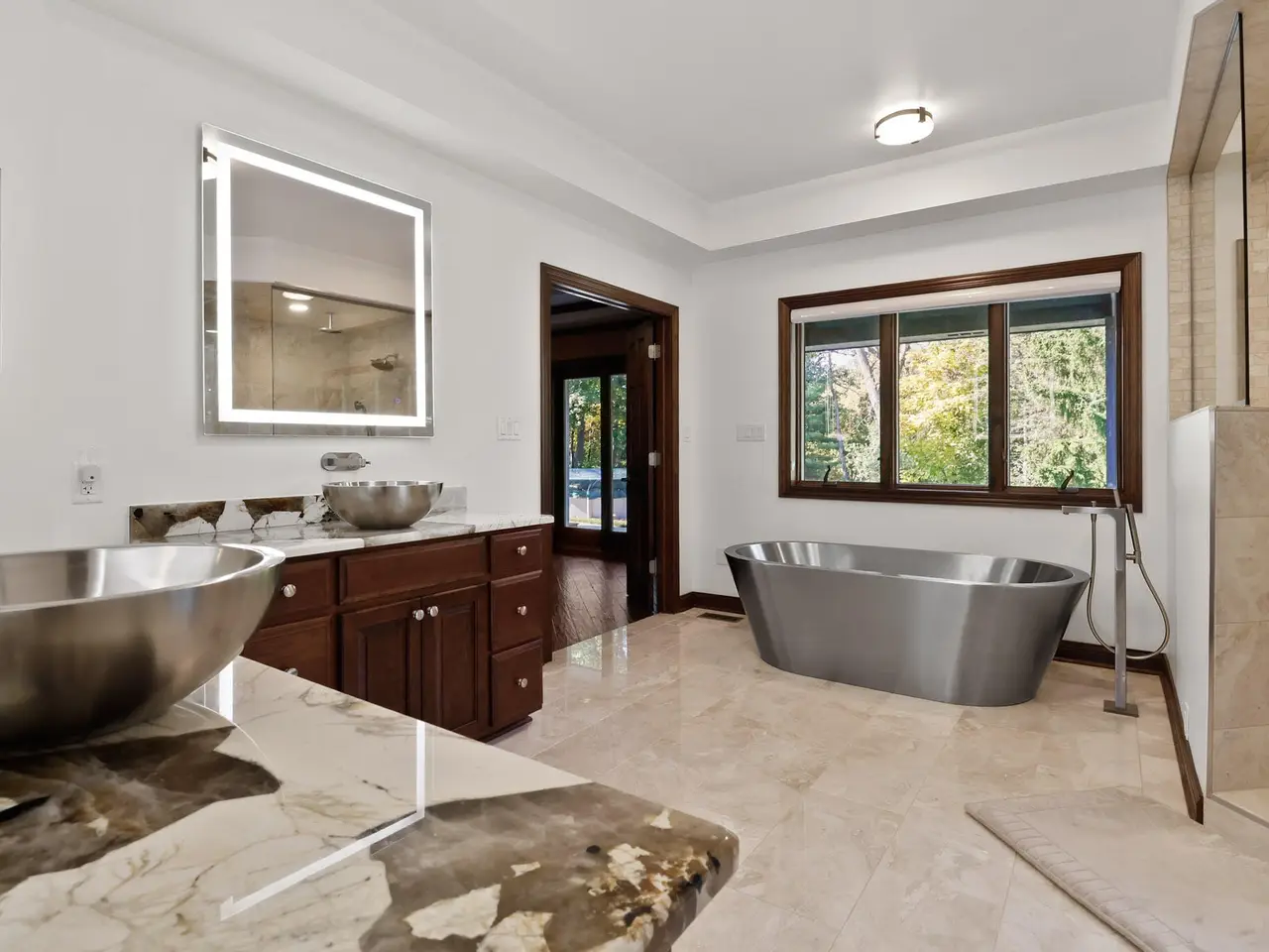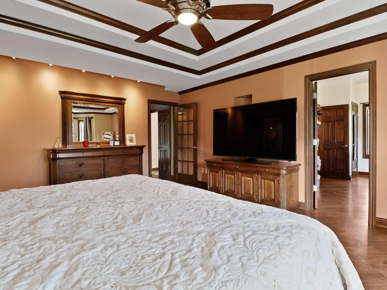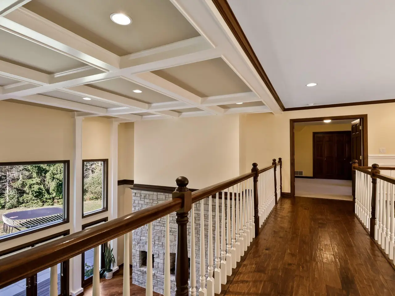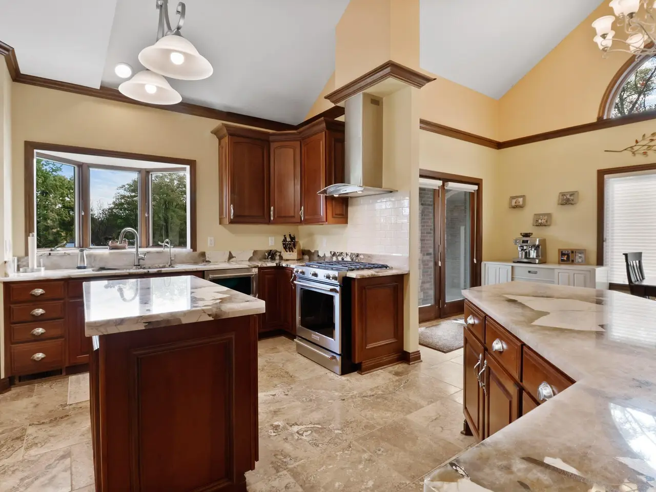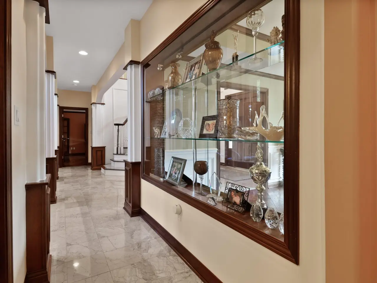 Discover unmatched privacy and elegance with this stunning 7- ACRE estate with PRIVATE POND nestled in the heart of Crown Point. This one-of-a-kind property offers a rare blend of high-end finishes, thoughtful design, and expansive space -- perfect for entertaining or enjoying peaceful country living just minutes from town conveniences. Step inside to find solid hickory floors with cork underlayment, providing superior sound and temperature control throughout. The gourmet kitchen and bathrooms feature exquisite Patagonia marble, creating a striking and luxurious aesthetic. Three all-stone fireplaces add warmth and character to the living spaces. Enjoy year-round comfort with zoned heating and cooling, and the convenience of a walk-in attic for ample storage. The home includes two 80-gallon hot water heaters to easily accommodate large households or guests. On the main level you will find the primary suite that includes a walk-in closet and attached office with fireplace. Step into a luxurious spa like bathroom and admire the custom walk-in shower and soaker tub. Make your way up to the upper level where you will be greeted with an elegant catwalk that leads to more spacious rooms plus a second laundry room! The bonus room is perfect for extra space to relax or entertain! The extravagance doesn't end on the inside with a stocked pond and natural creek to enjoy. You will find two private entrances and a massive driveway that fits up to 35 vehicles -- ideal for gatherings and events. YOU DO NOT WANT TO MISS OUT ON THIS ONCE IN A LIFETIME PROPERTY!