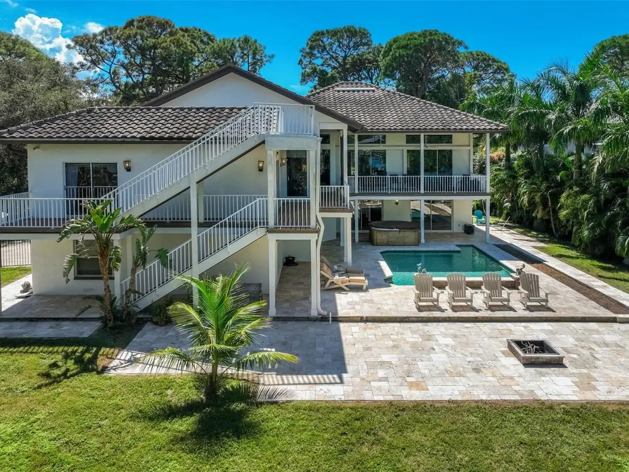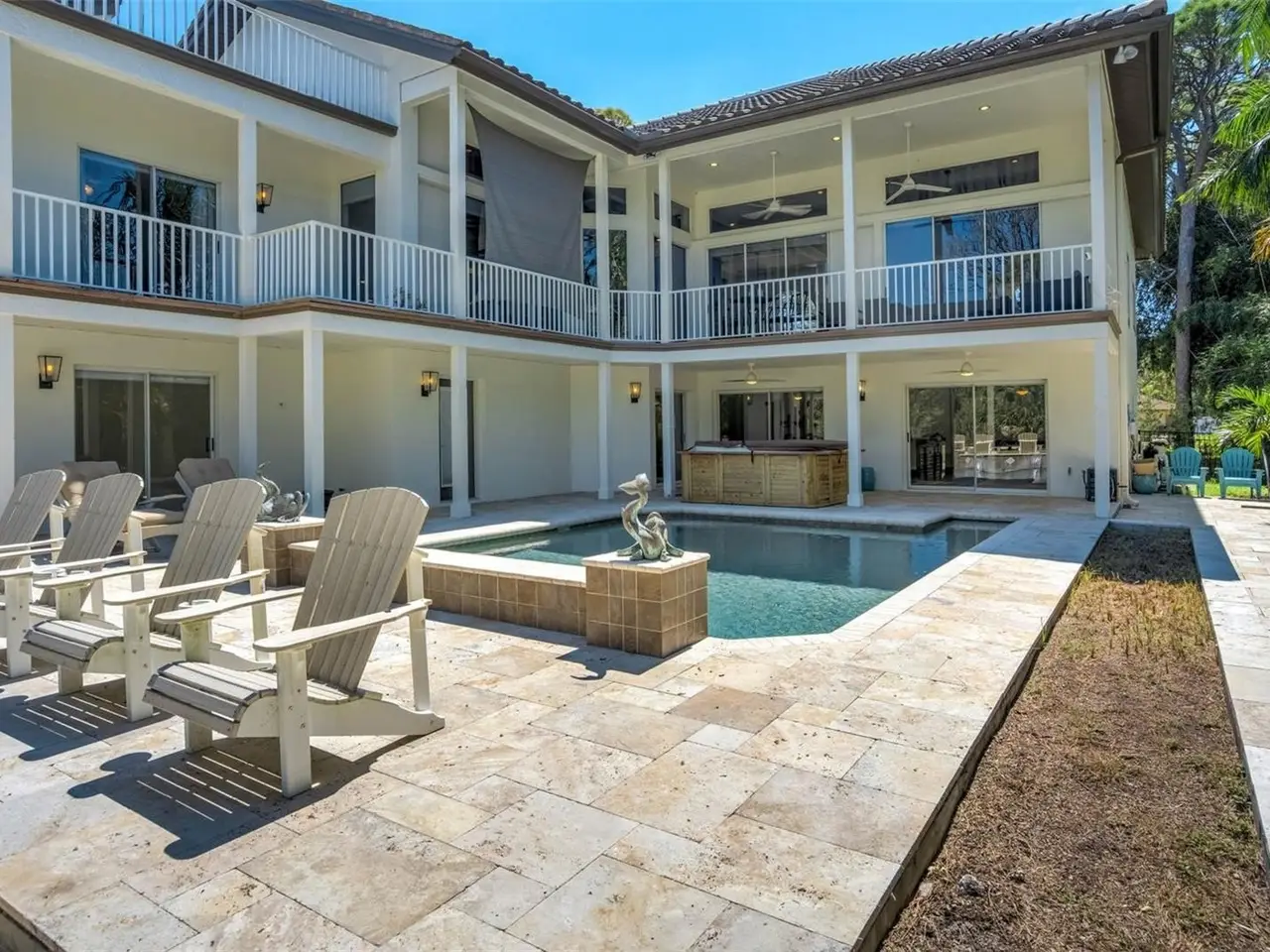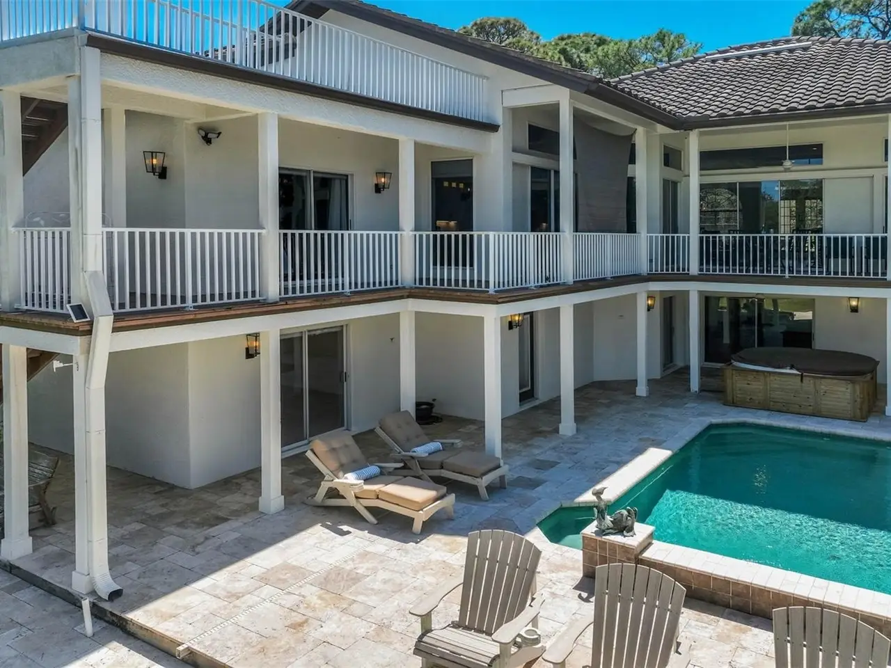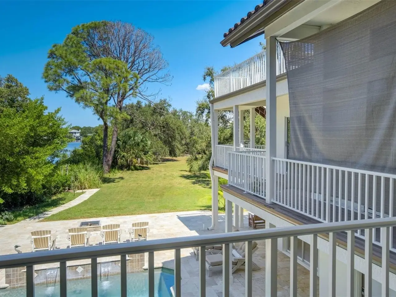 Experience the charm of this Crystal Beach PRIVATE, SPACIOUS HOME WITH DEEP WATER BOATING! This beautifully designed 4-bedroom, 3-bath waterfront home offering 2,924 square feet of living space. The home is set on boatable water and features a private dock with a 10,000 lb. lift, making it ideal for fishing, boating, or sunset cruises right from your backyard. The property is surrounded by immense privacy, with the backyard opening to a peaceful county preserve, while the lot next door is also available for purchase, creating an even greater opportunity for seclusion or future expansion. Outdoor living is elevated with a fabulous travertine pool deck surrounding the sparkling PebbleTec pool, perfect for enjoying long Florida days in style. Expansive second- and third-story verandas capture tranquil views and coastal breezes, making them the perfect spots to unwind with a morning coffee or evening glass of wine. Inside, soaring 12-foot ceilings flood the home with natural light and a sense of grandeur, while a fully renovated chef’s kitchen combines contemporary finishes with top-of-the-line appliances, ideal for both everyday living and entertaining. Additional highlights include a projector TV setup, creating the perfect space for movie nights or game-day gatherings, and an oversized four-car garage with plenty of room for vehicles, golf carts, water toys, and extra storage. Located in the heart of one of the most desirable and charming Crystal Beach communities, this home embodies the perfect blend of privacy, character, and waterfront living — offering both a timeless retreat and an entertainer’s dream.