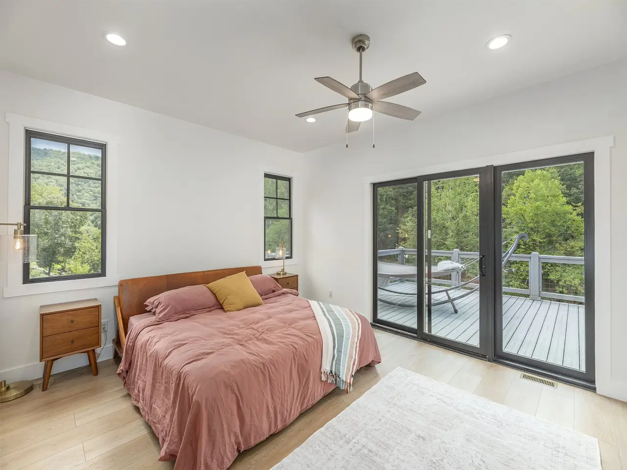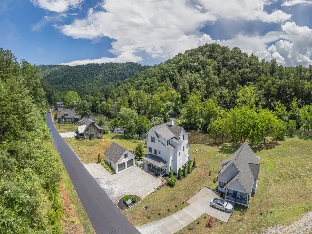 This luxurious modern farmhouse is perfectly situated above the tranquil Tuckasegee River, a fisherman's dream stocked with trout and perfect for floating or kayaking directly from your backyard. The gently sloping, oversized lot offers one of the most desirable settings in the neighborhood, with a large grassy backyard, no flood damage during Hurricane Helene, and plenty of parking for family and guests. Inside, the home features a spacious open floor plan with beautiful river views from nearly every window. The main level includes a large living room that flows into an elegant kitchen and dining area with a half bath. From here, step onto one of two expansive Trex decks, ideal for lounging and entertaining while overlooking the river. The upper level serves as a true retreat, with a primary bedroom that opens into a spacious office with a sleek wet bar, a private Trex deck, and a spa-like bathroom with a soaking tub and tiled shower. The third floor includes two generous guest bedrooms, each with its own private full bathroom. A Redwood Outdoors 6-person barrel sauna, featuring a powerful 8kW Harvia WiFi-controlled heater and a full glass wall that looks out over the water, creating a private wellness experience. The home also offers a large covered front porch, an oversized two-car garage with an unfinished upstairs, and tasteful stone landscaping that ties everything beautifully into the upscale neighborhood. Built with 2x6 construction, the home includes industrial-grade LVP flooring throughout, with durable carpet on the stairs. The design blends premium craftsman style with modern farmhouse touches. It comes fully furnished (excluding a few select pieces) and includes high-end appliances such as a washer, dryer, and refrigerator. The kitchen features premium Miele appliances, including the oven, microwave, and dishwasher. Enjoy the benefits of natural gas, including a gas stove and a grill hookup. The property is also connected to high-speed fiber internet, making it ideal for remote work or streaming. Located just seconds from the Western Carolina University campus, this home offers both convenience and privacy. The community allows select short-term rentals, and this property is one of the few that qualifies. Other similar rentals in the neighborhood have a proven track record of profitability, while the remaining homes are owner-occupied family residences. This is a rare opportunity to own a premium riverfront home with unmatched views, luxurious features, and income potential!