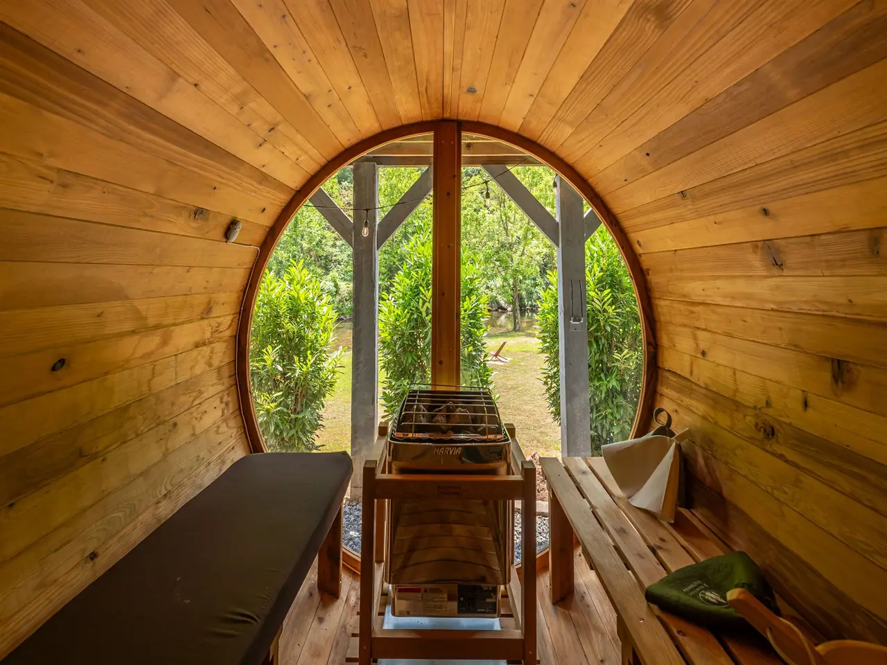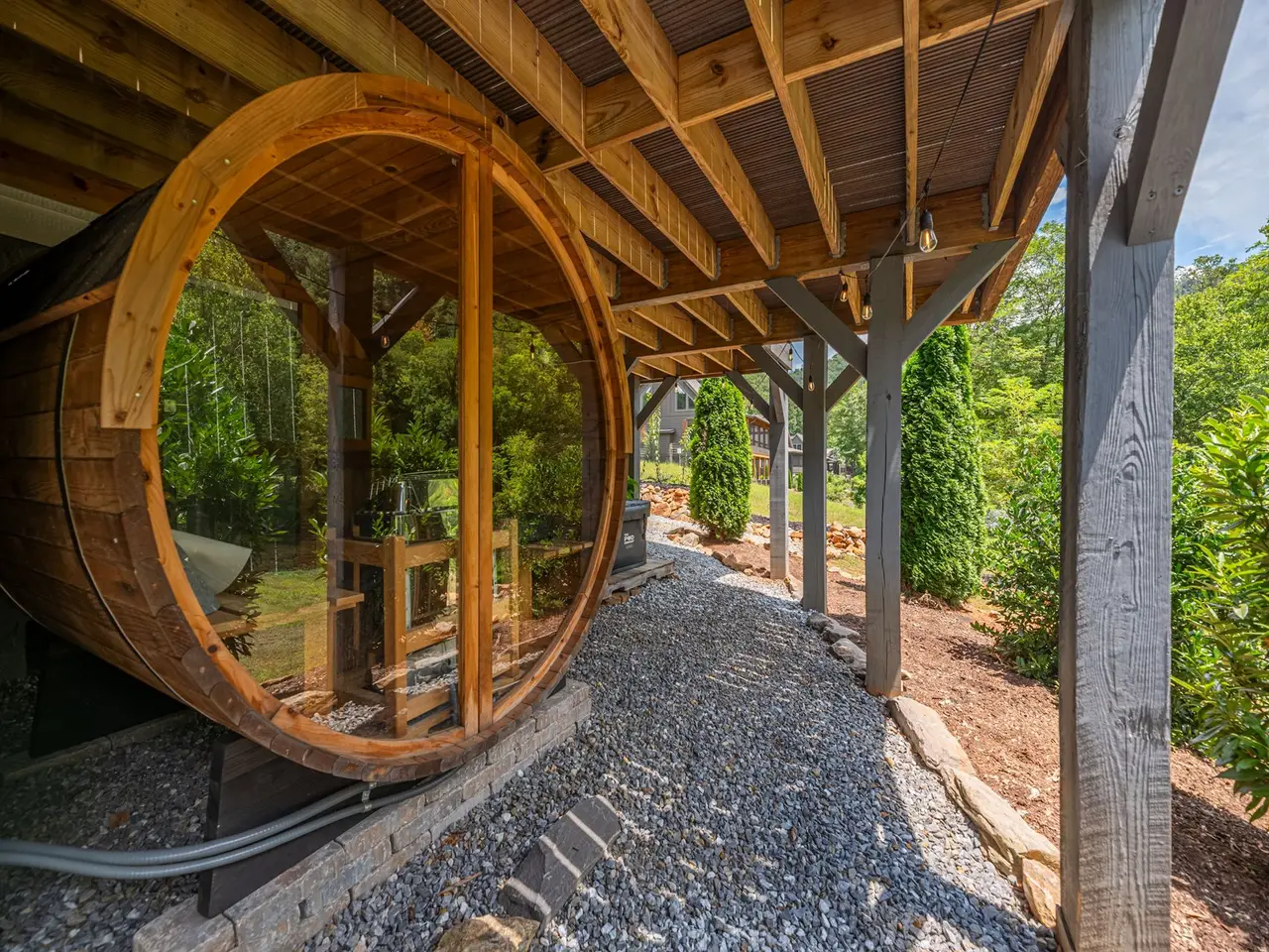 Redwood barrel sauna