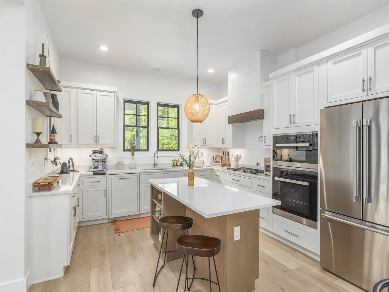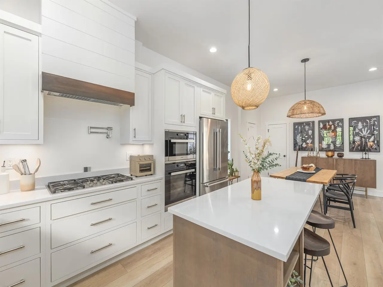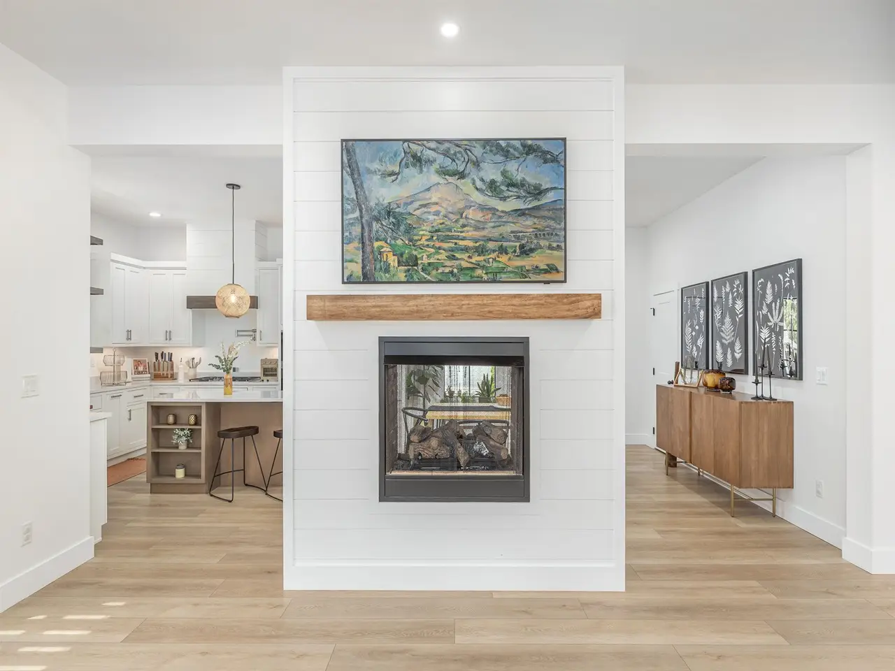 Large living room with elegant kitchen