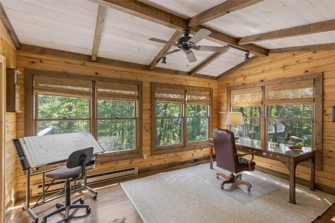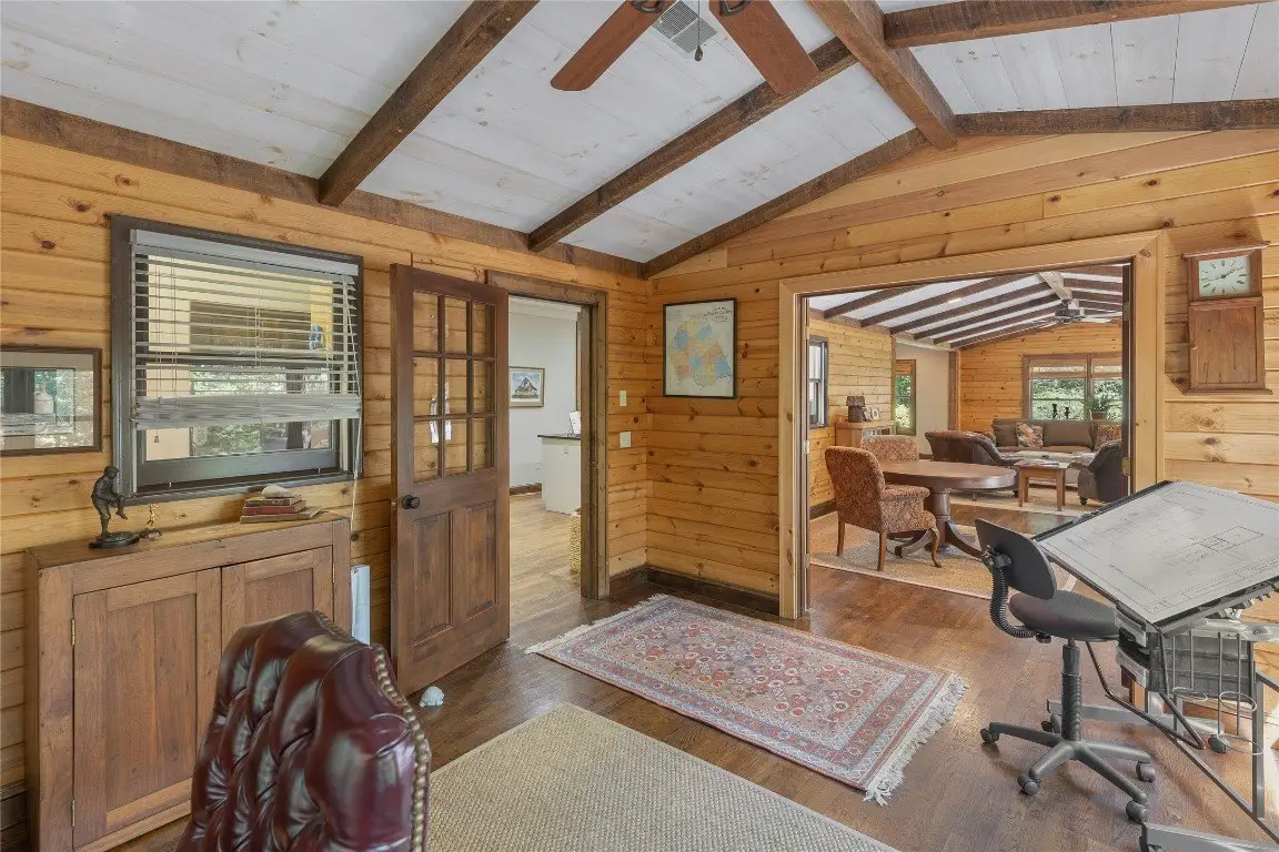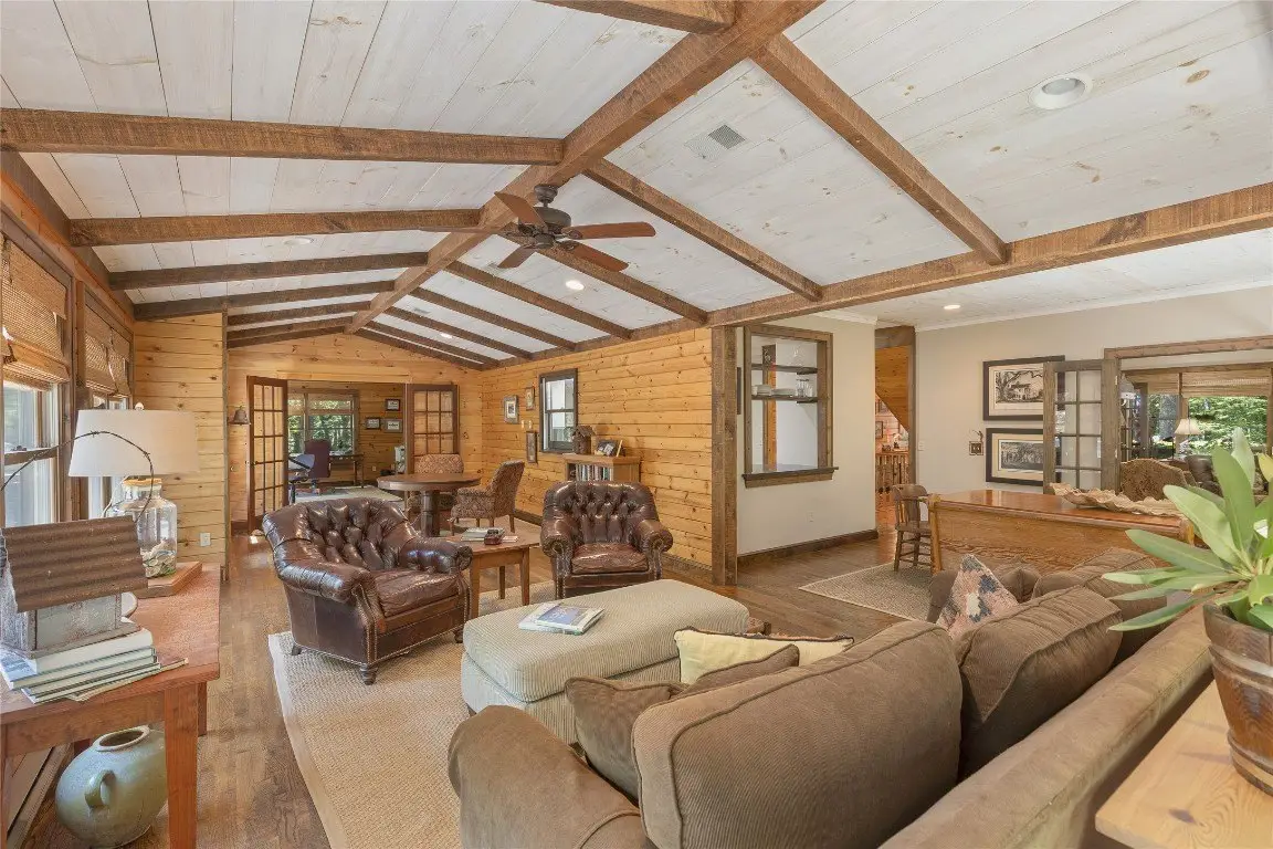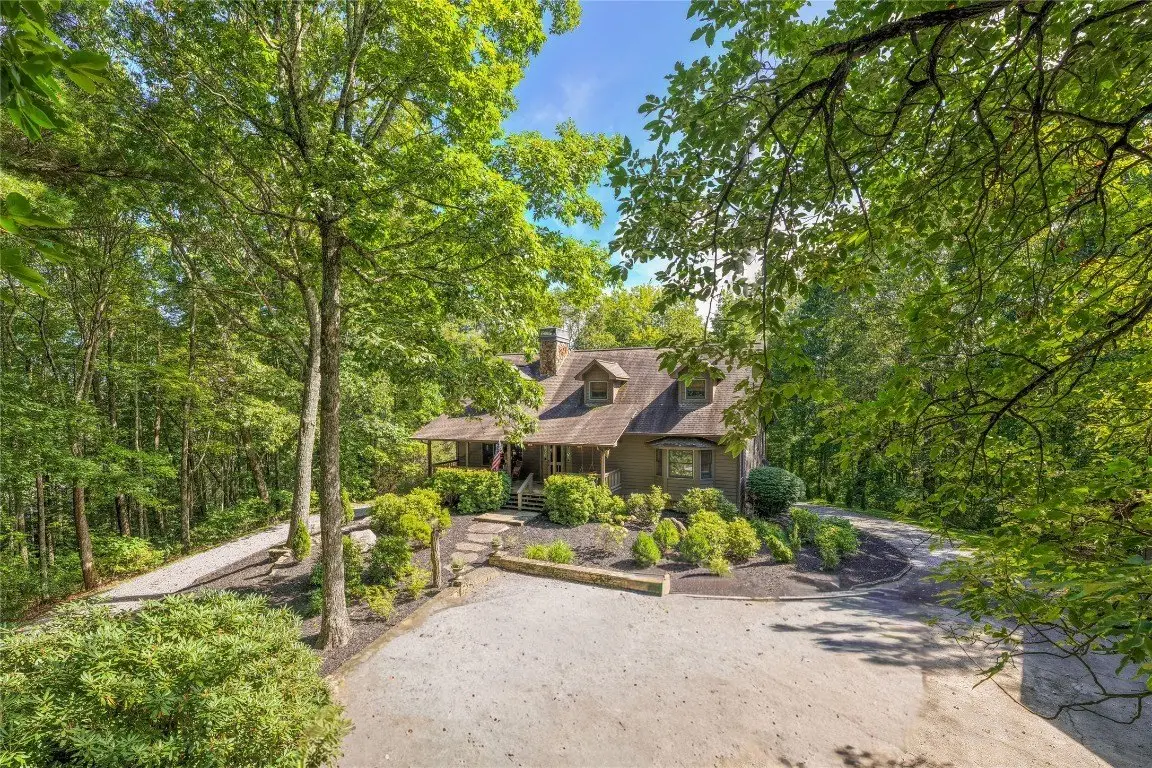 Pass through the gates and wind up to the top of Norton Overlook to discover an original homestead, set back from the road within a private sanctuary. From the front porch, the sights and sounds of nature create a serene backdrop for quiet moments to unwind. Evenings may be spent gathered around the outdoor firepit or inside beside the cozy wood-burning stove set in a stunning stone fireplace. The spacious main level is designed for both comfort and functionality, offering a spacious kitchen, den, dining room, great room, office, laundry area, and a generous primary bedroom, all thoughtfully arranged with excellent flow. Upstairs are two oversized bedrooms, while the lower level expands the living space with an additional bedroom, full bathroom, potential for a kitchenette, and two expansive bonus rooms, perfect for flexible use or recreation areas. A large detached garage with a workshop provides space for artistic pursuits, woodworking, or other hobbies, while ample storage throughout the home ensures everyday practicality. Winter reveals panoramic mountain views, with the potential for further enhancement through strategic tree trimming. Conveniently located near Cashiers, Highlands, and Lake Glenville, this residence combines privacy, comfort, and the best of mountain living. With its versatile spaces and timeless mountain character, this residence offers both a peaceful retreat and a setting for lasting memories.