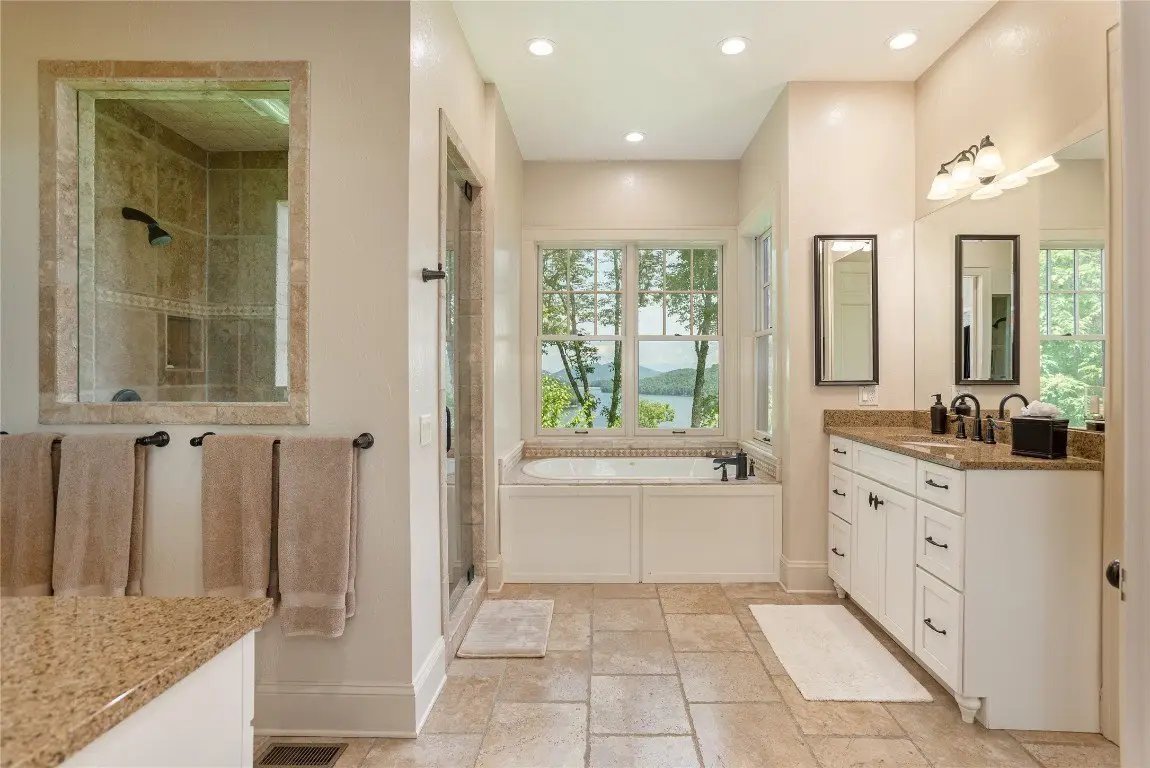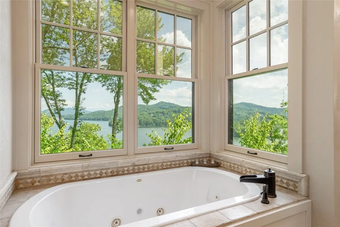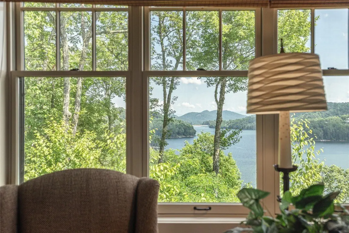 Nestled in the prestigious Summer Hill community overlooking the serene waters of Lake Glenville, this custom-built residence epitomizes refined mountain living. Set on two expansive lots to ensure privacy, the home offers breathtaking 180-degree views of the shimmering lake and majestic surrounding mountains from nearly every room.? Beautiful vistas for as far as you can see. Enjoy boating, a day at the beach with private docks and sand, or fishing in the clear, fresh waters of Lake Glenville. The great room serves as the heart of the home, featuring soaring vaulted ceilings and a grand stone fireplace that frames the panoramic vistas. Adjacent, the gourmet kitchen is a chef's dream, equipped with a gas range, central island, and premium French-door refrigerator, all complemented by rich cabinetry and elegant countertops. The main-level primary suite provides a tranquil retreat with a screened sleeping porch ideal for enjoying the cool mountain evenings. The ensuite bath boasts a steam shower, jetted soaking tub, dual vanities with ample storage, and heated flooring for ultimate comfort. Designed for seamless indoor-outdoor living, the home features multiple screened porches and expansive open decks, perfect for savoring the crisp mountain air and captivating lake views throughout the seasons. The lower-level deck is an entertainer's delight, hosting a welcoming hot tub and an outdoor fireplace for gatherings under the stars. The residence's lower level caters to guests and entertainment, offering three spacious guest suites, a generous family room with a dedicated game area, a convenient kitchenette, and a private office. An impressive home theater with plush seating and state-of-the-art surround sound promises exceptional cinematic experiences. Starting with the drive through this well-maintained community and continuing up the private 300-foot entrance, you will know you have arrived at a very special home. Since the last ownership, extensive landscaping and many improvements have made this one of the most complete homes available inside and out. Residents of Summer Hill enjoy deeded lake access, a community dock, a charming outdoor pavilion, and gated security. Recent upgrades to the home include a Cummins generator, lush landscaping, and modern railings, enhancing both functionality and aesthetic appeal. Embrace a serenity, elegance, and natural beauty lifestyle in one of Lake Glenville's most coveted communities.