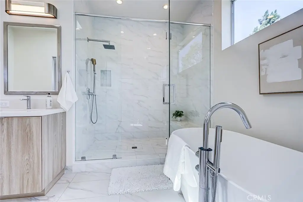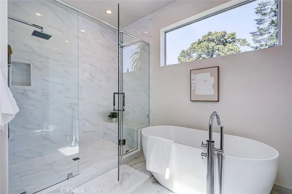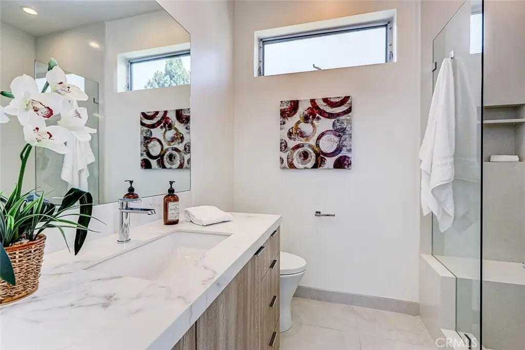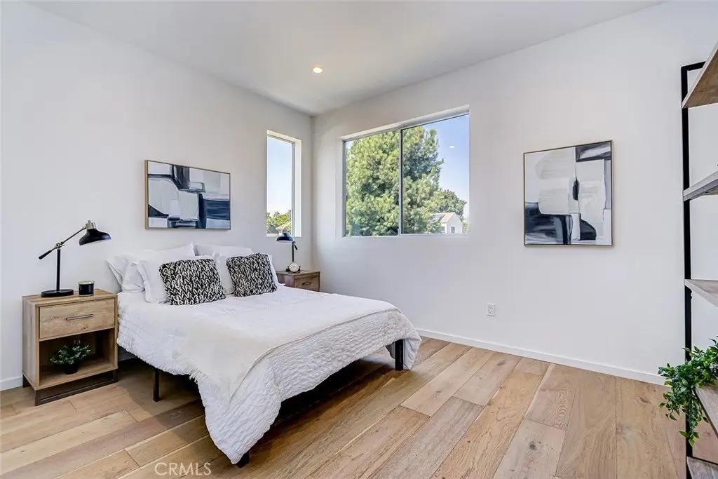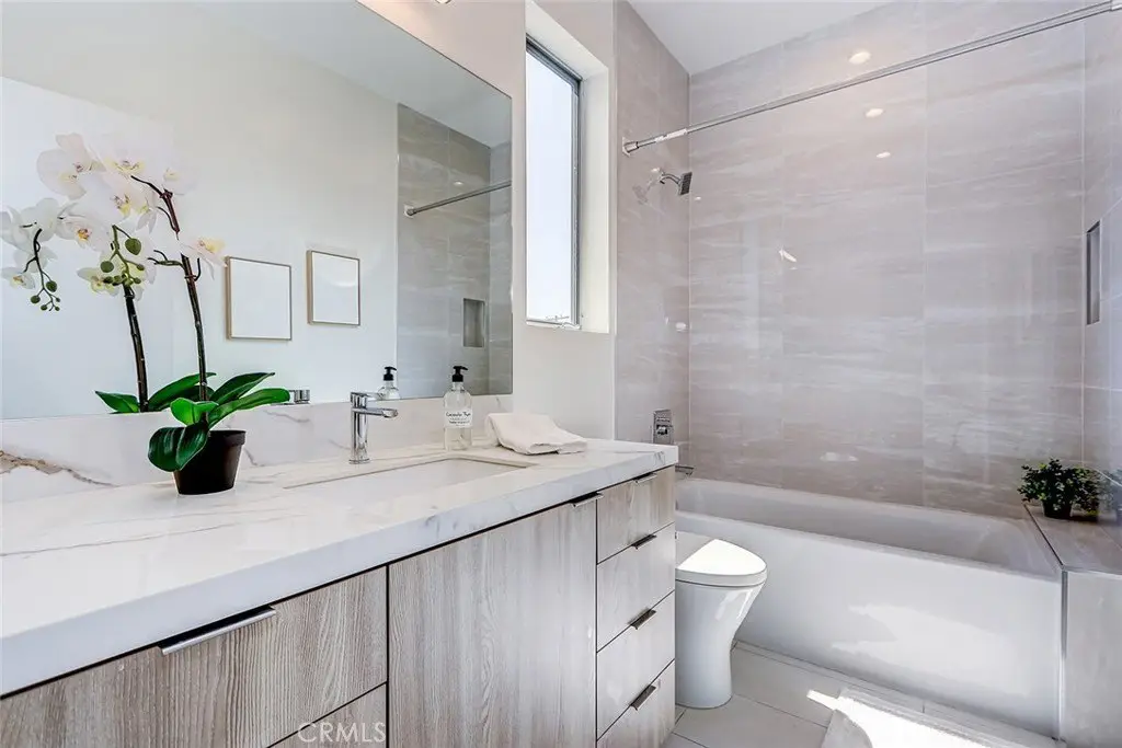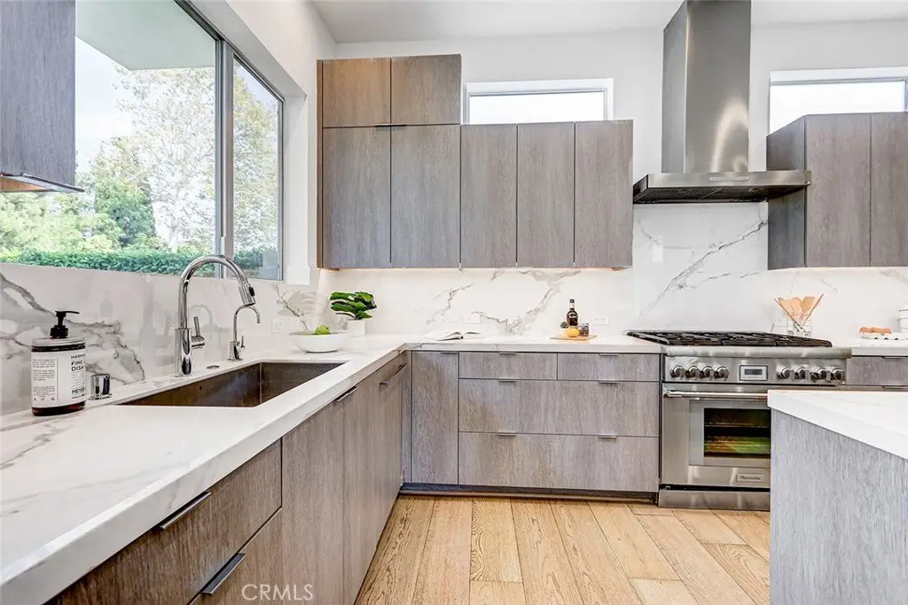 This modern, newer construction home blends contemporary luxury with minimalist elegance. Located on a tree lined street in the desirable Carlson Park neighborhood just blocks from Downtown Culver City. Soaring ceilings, expansive windows, and natural white oak flooring create a bright, open living space. The sleek kitchen features European cabinetry, Thermador appliances, quartz countertops, a large island with seating area and a spacious walk-in pantry. Upstairs, find three en-suite bedrooms and a laundry room. Primary suite has custom cabinetry, quartz counters, marble flooring, oversized shower, soaking tub, walk-in closet, and a private patio. Enjoy seamless indoor-outdoor living with oversized sliding doors leading to a spacious porch and private yard surrounded with a privacy hedge. Additional highlights include a direct access oversized two-car garage currently used as a bonus room/office. Walk to top dining, Erewhon, Trader Joe's, movie theater, and hotspots like the Culver Hotel, the Culver Steps, the Platform and the Ivy Station with Metro access. Close to Sony, Apple, Amazon, and HBO. Walk to desirable Linwood E. Howe Elementary, CCMS, CCHS, Carlson Park and La Ballona Bike path. A rare opportunity in one of LA's most sought-after neighborhoods!