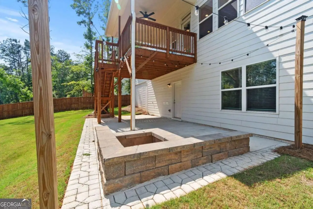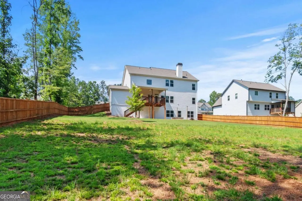 Built in December 2022, this like-new 5-bedroom, 3-bath home features a full unfinished daylight basement-perfect for a future gym, guest suite, or rec room. Enjoy over $75,000 in premium upgrades, including a chef-inspired kitchen with sleek countertops, farmhouse sink, stainless steel appliances, and a brand-new Samsung fridge (2025). Bathrooms and laundry are upgraded with modern tile, and the home features high-end carpet (with moisture barrier) and custom honeycomb blinds throughout. A dedicated home office with French doors and built-in Ethernet supports remote work. Wooden stairs add a custom touch, and a full-motion TV mount brings move-in-ready ease. The fully fenced backyard is professionally cleared, graded, and sodded, with rain-sensor irrigation, solar lighting, and a concrete patio with built-in fire pit-ideal for entertaining. A Ford EV charger (2025) is already installed in the garage. Security and peace of mind come with a full SIMPLISAFE system (cameras, sensors, keypad), and warranty coverage on all systems and appliances from day one. This is a turnkey, stylish, and spacious home with the upgrades you won't find in new construction.