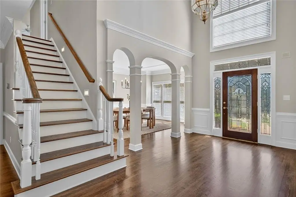This is the one you've been waiting for in the sought after Polo Golf and Country Club. Located on the 8th fairway, this home offers a view of the golf course, but with added privacy from the trees. You will not find a more meticulously cared for home. Upon entering the home, you will notice a two story foyer with soaring ceilings, just straight ahead is the two story formal living room with elongated windows giving lots of natural light & the large dining room to your right. Located on the left side of the house is the expansive primary bedroom with access to the back deck, two walk in closets & a beautifully updated primary bathroom. On the right side of the home is the family room with vaulted ceilings, open to the breakfast area, an updated kitchen that checks all the boxes, laundry room & three car garage. The kitchen includes a built in sub-zero refrigerator, paneled dishwasher, double ovens, a walk in pantry and so much more. The kitchen pantry and all closets in the home have custom container store shelving. Off of the family room is the freshly painted back deck with stairs down to the backyard that includes a beautiful water feature & patio off the basement. Upstairs includes a loft area, walk-in attic space and 3 additional bedrooms all with their own attached bathrooms. You will not find any carpet in this home - beautifully refinished hardwoods are throughout the entire home, with tiled bathrooms. The cherry on top is the full unfinished basement with walk-out access, a fireplace, and already plumbed for an additional bathroom. If you are looking for move-in ready in West Forsyth County, this is it!