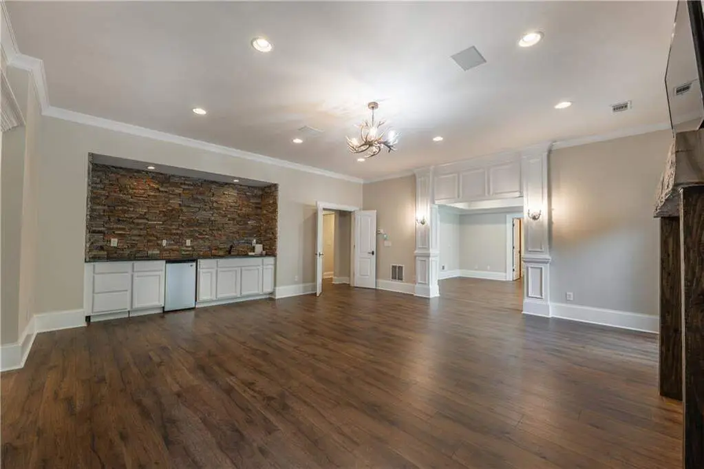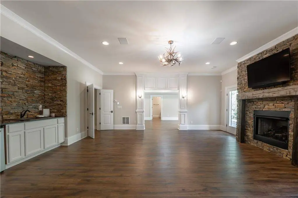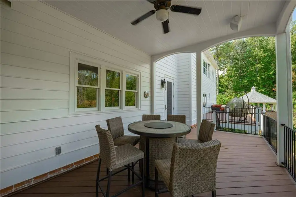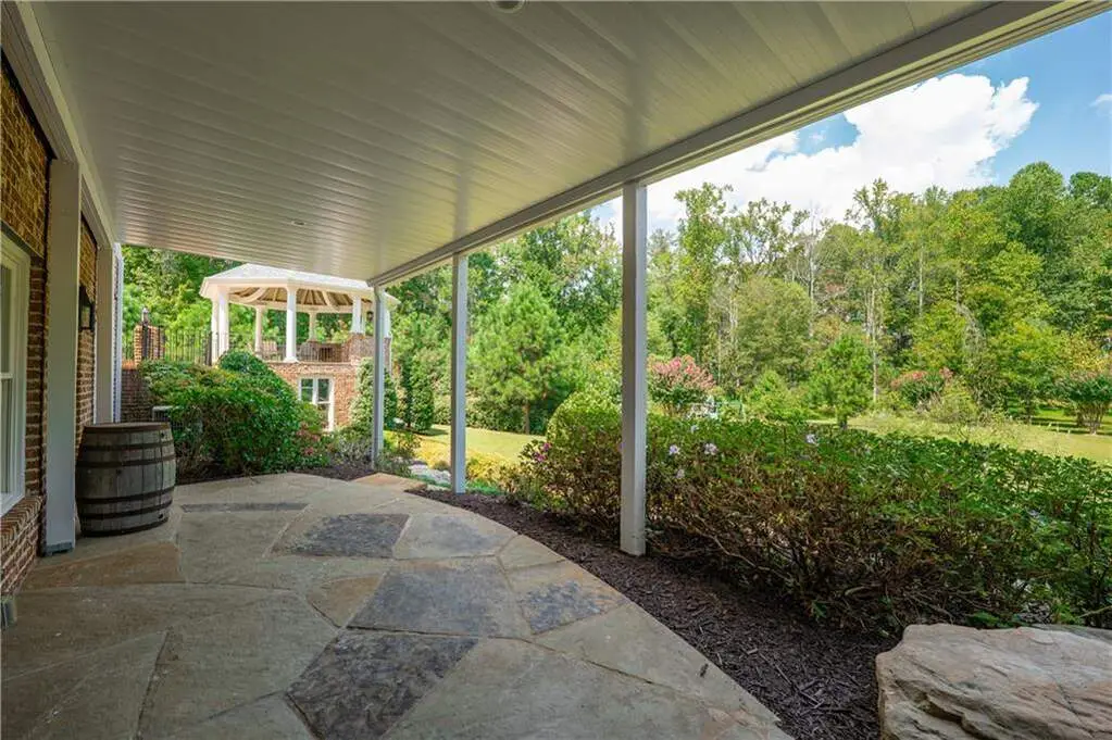 Welcome home to your private 4.28 acre estate in the gated community of Providence Plantation. This property stands out with a timeless design featuring custom finishes throughout beginning with a two story entry foyer with a grand staircase, an updated kitchen with high-end appliances - open to the family room with access to a large deck and a casual dining space with access to an outside covered dining porch. The main level study has expansive floor to ceiling bookcases and a window bench with a view of the peaceful backyard. The formal dining room and living room are ready for entertaining. A main level media room has a wet bar, a full bath with access to a bricked patio/fireplace overlooking the pool and covered veranda. Additional conveniences are two half baths and a side entry. The upper level has five bedrooms, updated bathrooms and serene views. The finished terrace level adds even more space for recreation, relaxation, or hosting guests. This home was truly designed on acreage for a relaxed lifestyle while still having enough space to enjoy family and friends. Do not miss the opportunity to tour this lovely property. Located in award-winning Forsyth County Schools, convenient to GA-400, Fowler Park, shopping/dining at The Collection and Halcyon.