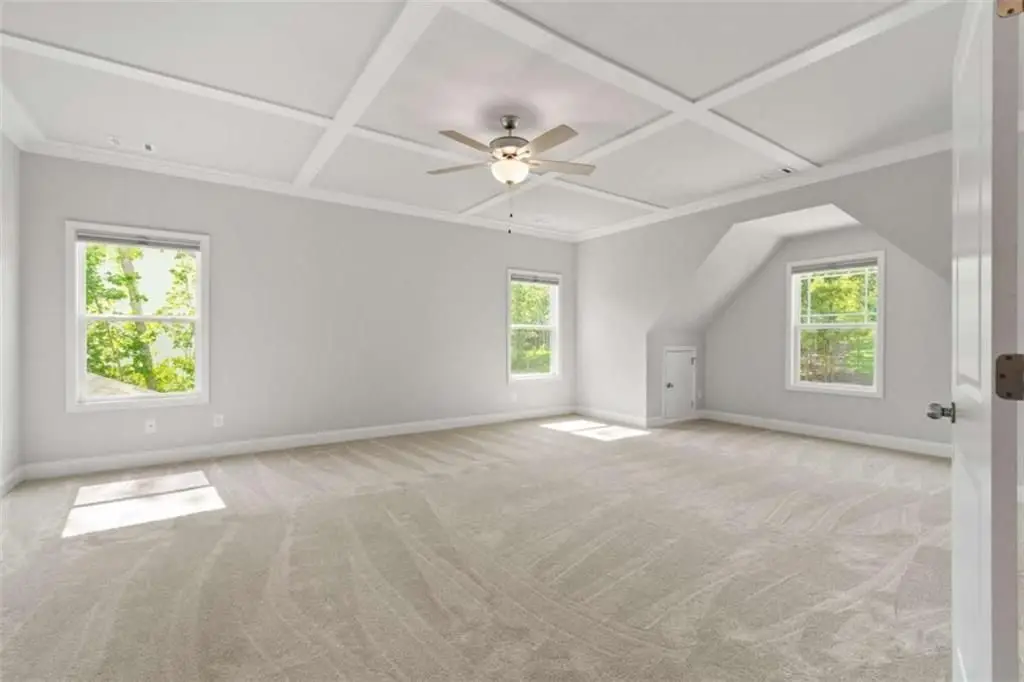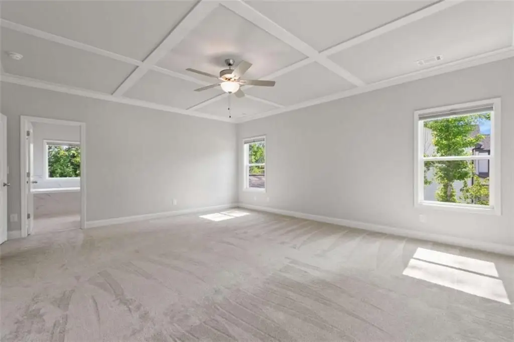 Custom honeycomb blinds and luxury carpet throughout
