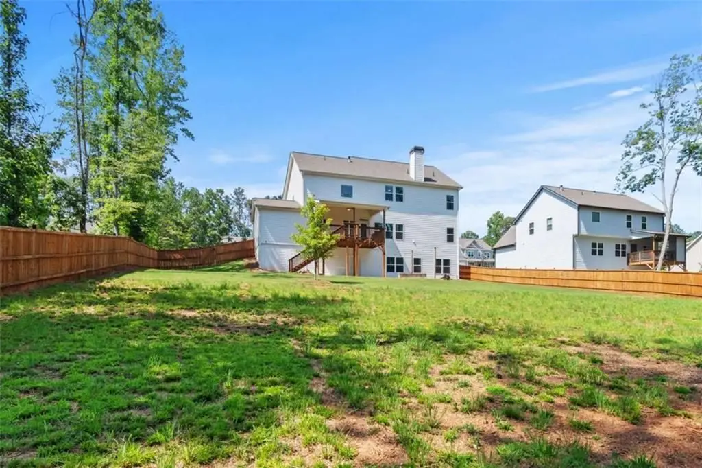 Built in December 2022, this like new 5-bedroom, 3-bath home features a full unfinished daylight basement - perfect for a future gym, guest suite, or rec room. Enjoy over $75,000 in premium upgrades, including a chef-inspired kitchen with sleek countertops, farmhouse sink, stainless steel appliances, and a brand-new Samsung fridge (2025). Bathrooms and laundry are upgraded with modern tile, and the home features high-end carpet (with moisture barrier) and custom honeycomb blinds throughout. A dedicated home office with French doors and built-in Ethernet supports remote work. Wooden stairs add a custom touch, and a full-motion TV mount brings move-in-ready ease. The fully fenced backyard is professionally cleared, graded, and sodded, with rain-sensor irrigation, solar lighting, and a concrete patio with built-in fire pit - ideal for entertaining. A Ford EV charger (2025) is already installed in the garage. Security and peace of mind come with a full SIMPLISAFE system (cameras, sensors, keypad), and warranty coverage on all systems and appliances from day one. This is a turnkey, stylish, and spacious home with the upgrades you won't find in new construction.