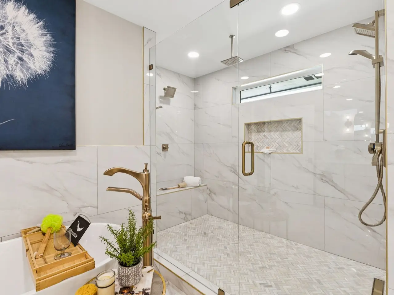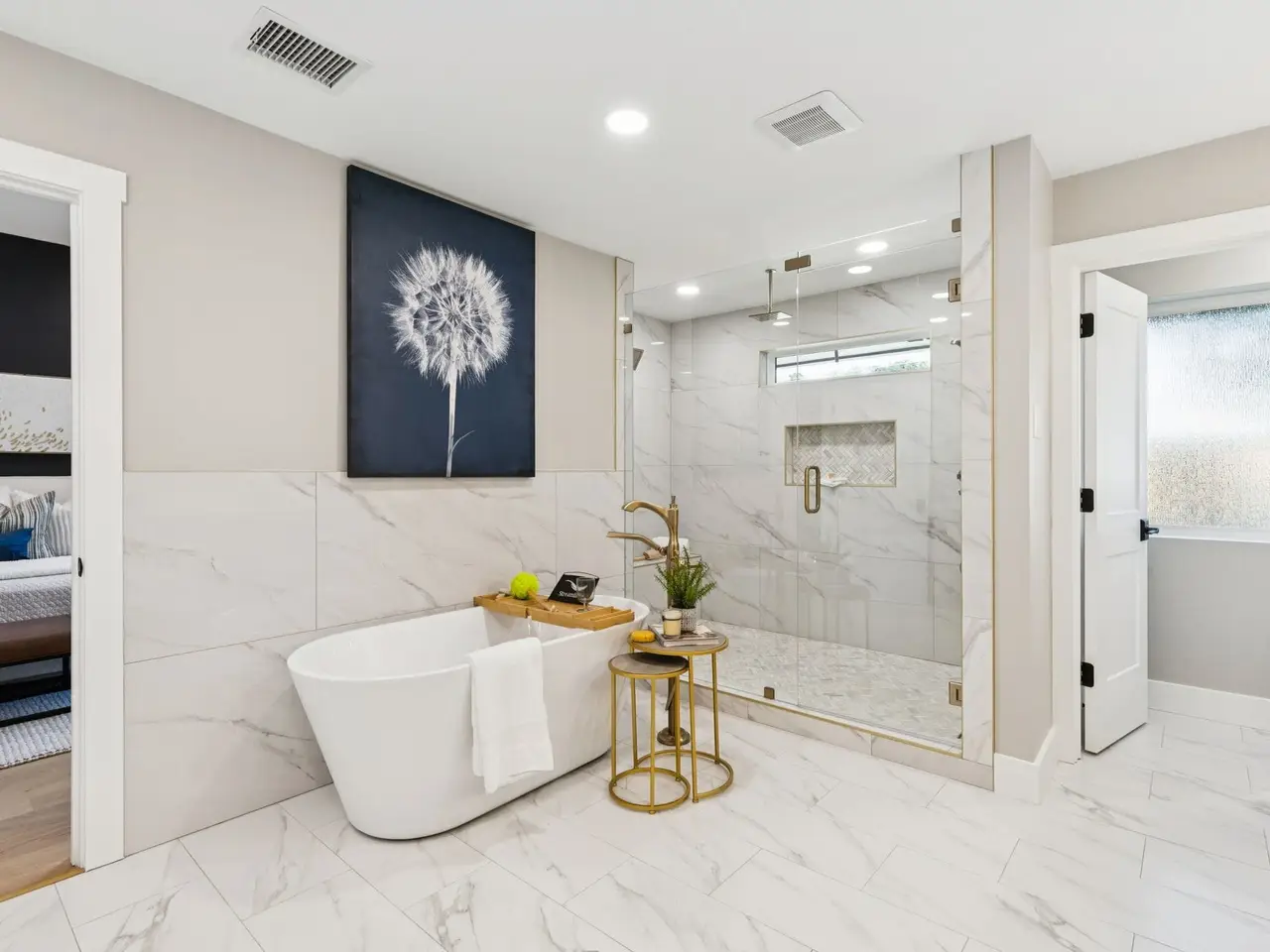 Free-standing tub in primary suite