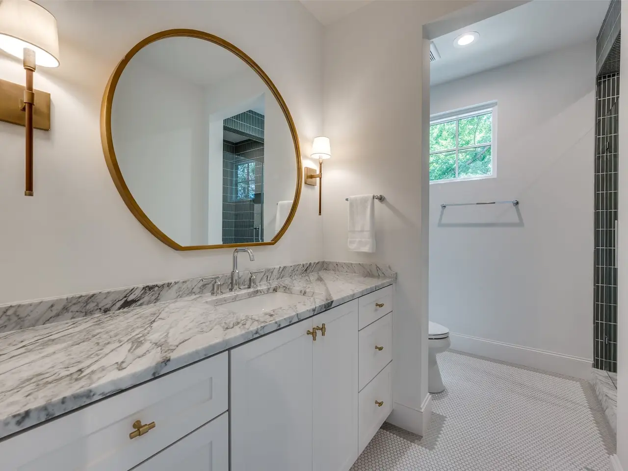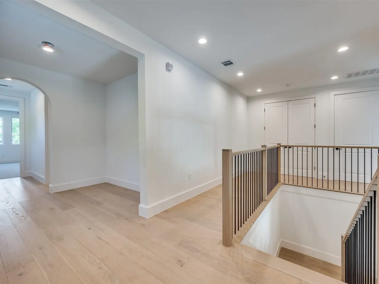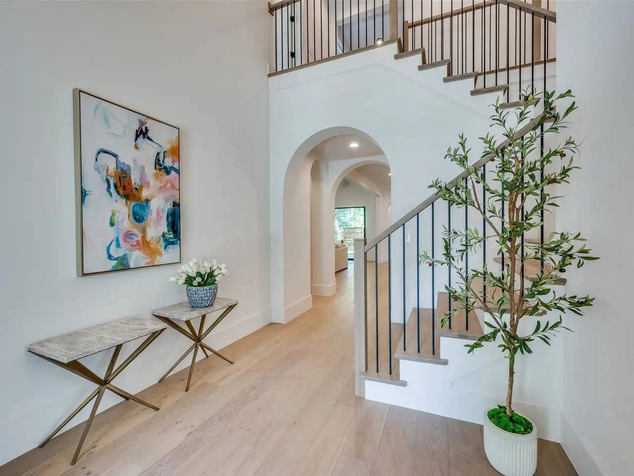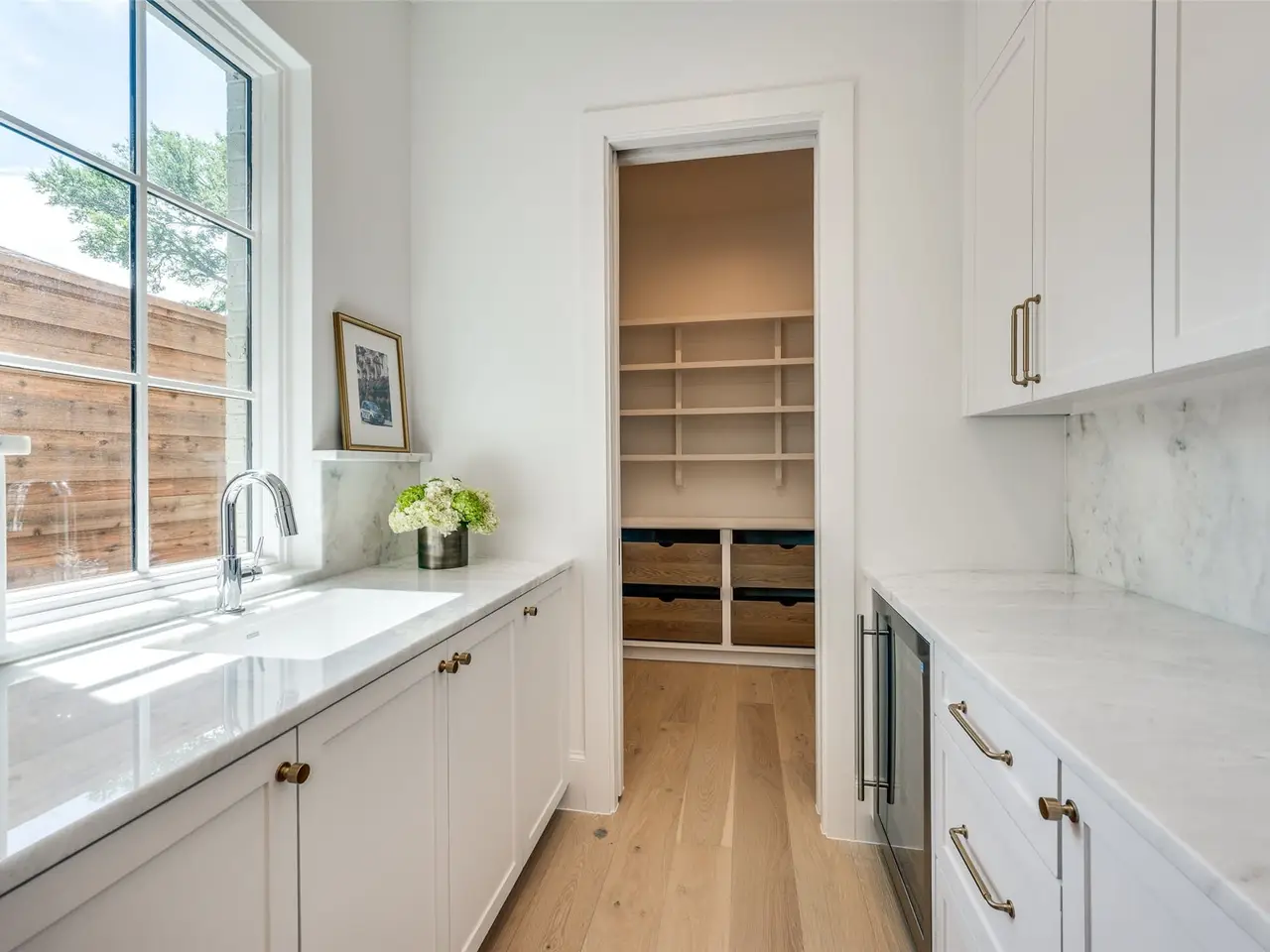 This beautiful new build offers 5 bedrooms, 4.5 baths, and 4,800 square feet of modern living with timeless style. Clean lines, black-framed windows, and wide-plank oak floors create a refined, sophisticated feel throughout. The family room features a vaulted ceiling, marble fireplace, and oversized glass doors opening to a covered patio with a second fireplace and a pool-ready landscaped backyard designed for privacy - perfect for seamless indoor-outdoor living. The chef’s kitchen includes a large marble island, custom cabinetry, and a tucked-away butler’s pantry with wine fridge, built-in cabinetry, and prep sink. The first-floor primary suite is a private retreat with a spa-style bath, dual vanities, a walk-through marble shower, and soaking tub. Upstairs are three ensuite bedrooms and a spacious flex room. Designer lighting, curated stone and tile, and custom millwork elevate every space. Located in sought-after Midway Hollow, one of Dallas most desirable neighborhoods, this residence offers thoughtful design, quality craftsmanship, and proximity to the city’s premier private schools, dining, and shopping.