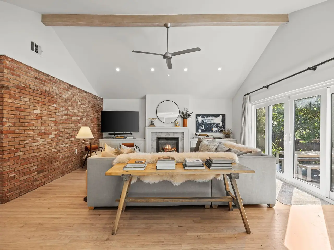 Original exposed brick and fireplace
