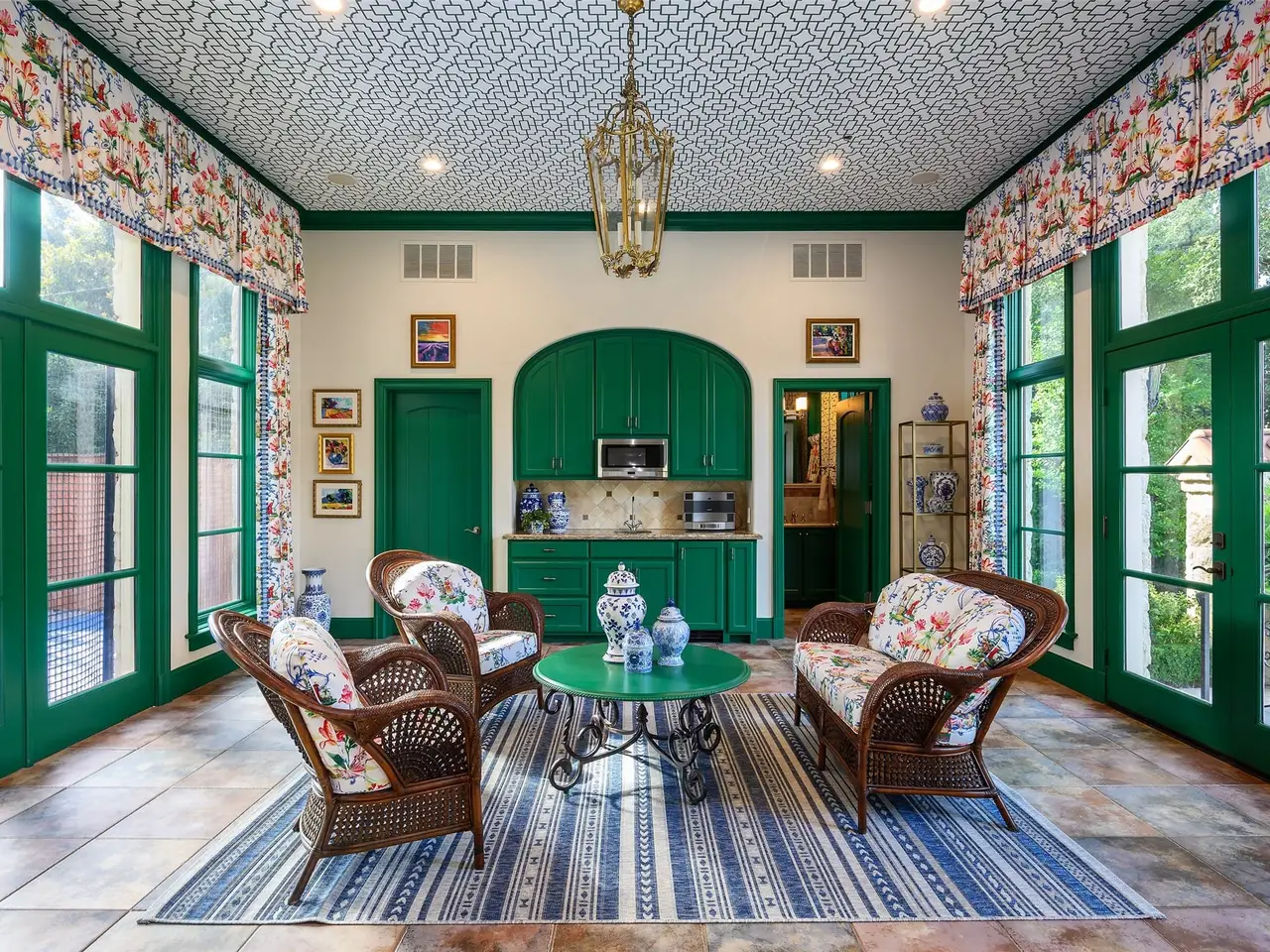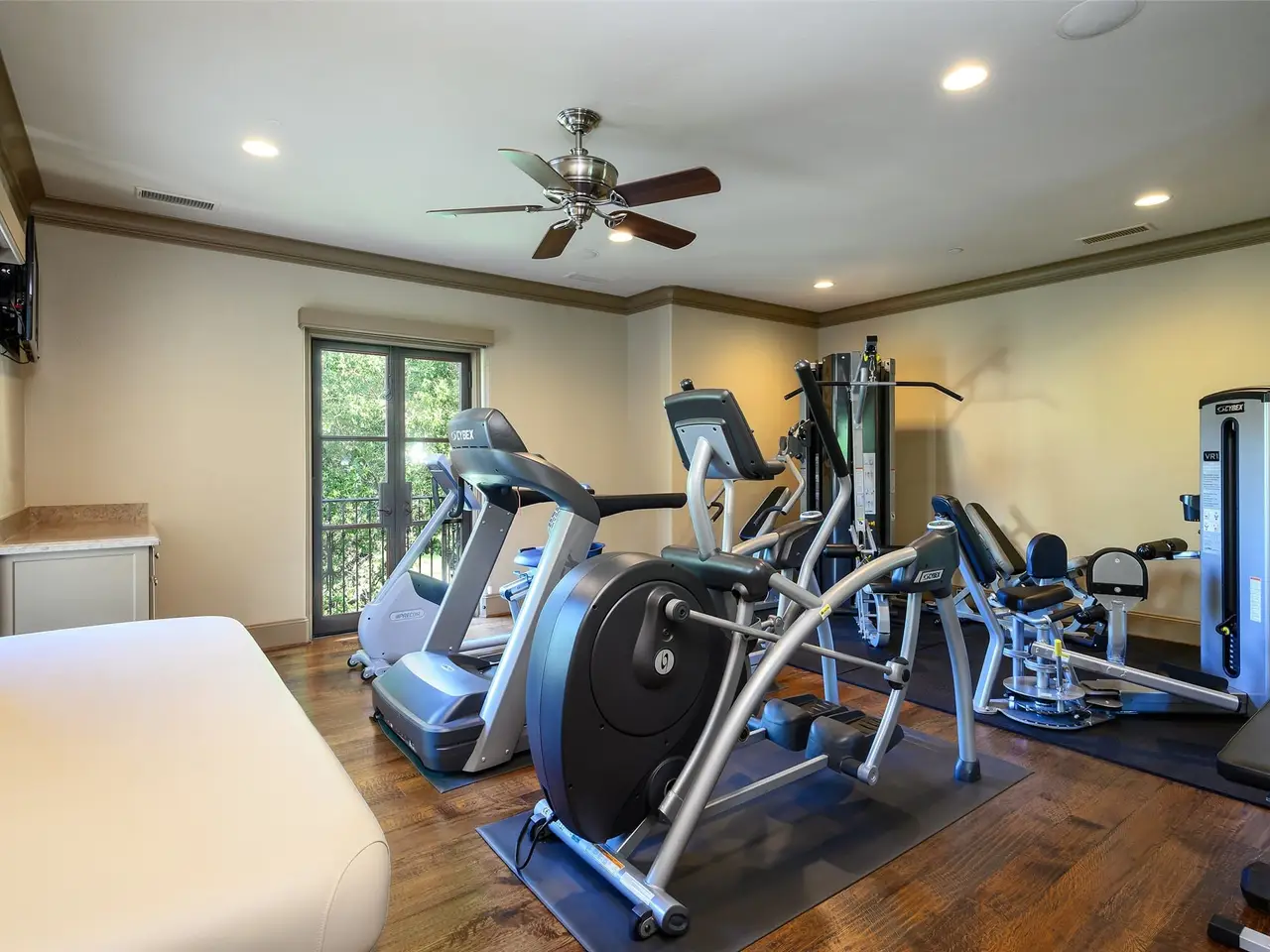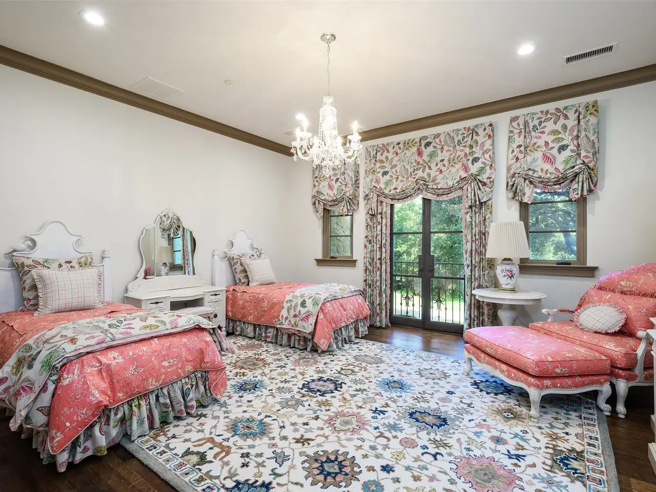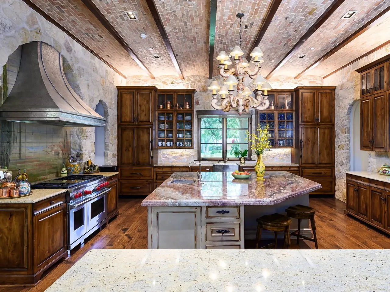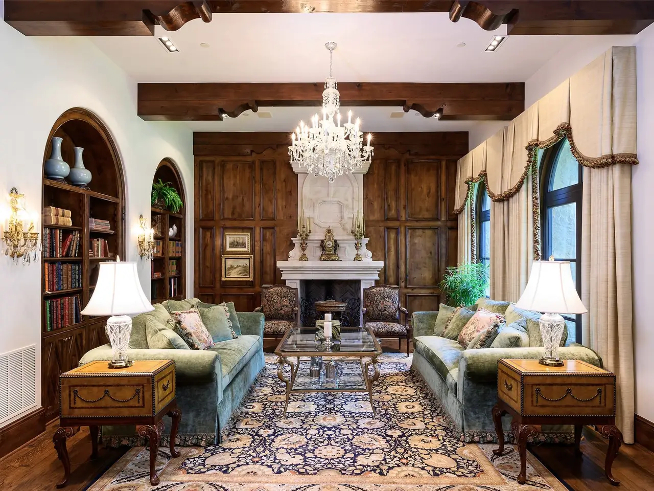 Inspired by the grand villas of the Tuscan countryside, this commanding, completely gated estate at 5335 Meaders Lane rests on a lot and a half. Its expansive presence stretching nearly a block along one of Preston Hollows most admired neighborhoods in Mayflower Estates. Designed by noted architect Elby Martin and built by Bob Thompson, one of Dallas’ most respected high-end builders, this residence captures the soul of a Tuscan mansion with modern livability. From the Italian-barrel tile roof to stately stone exteriors, every detail feels authentic. Lush grounds unfold over 1.1 acres, enhanced by moonlit mature trees, two courtyards, including a private meditation garden, and four hand-crafted fountains. Multiple verandas, terraces, and six balconies - all with beautiful sweeping views - create effortless indoor-outdoor living. A resort-style pool with cascading spouts, a just-completed sport court, and a fully appointed cabana with kitchen, fireplace, and dome ceiling set the stage for year-round entertaining. The property also offers a 1,159 square foot attached guest or au pair house with its own private exterior staircase and convenient parking pads. Inside, artistry and craftsmanship abound: a 24-foot ceiling entry with custom Solara iron stair, a 70-ft groin-vaulted gallery with hand-painted Italian frescoes, wine cellar and tasting room, billiard and game rooms, and a media room with motorized recliners. Clerestory windows frame sweeping estate views, underscoring the home’s connection to its surroundings. With geothermal HVAC, a recently installed whole-house generator, and thoughtful design, this is an extraordinary Tuscan-inspired retreat - expansive in scale, commanding in presence, and unrivaled in its Dallas setting.
