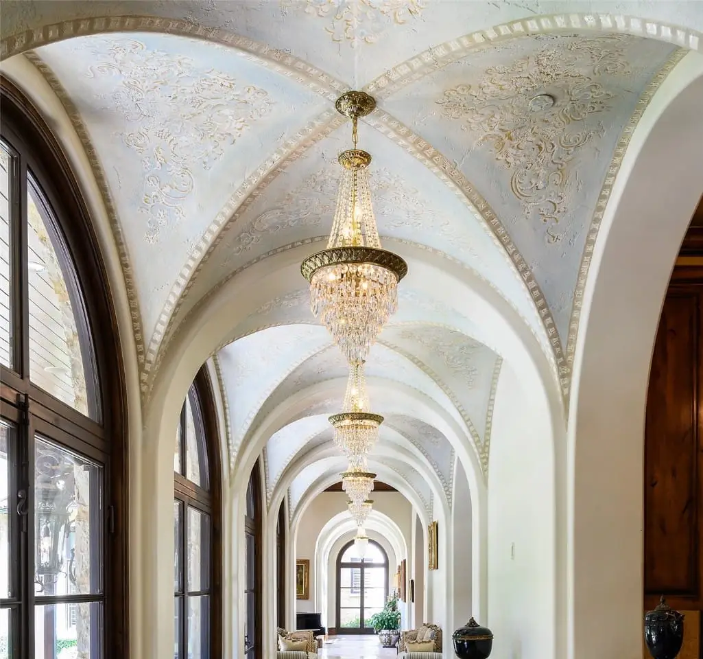 Groin-vaulted gallery with hand-painted Italian frescoes