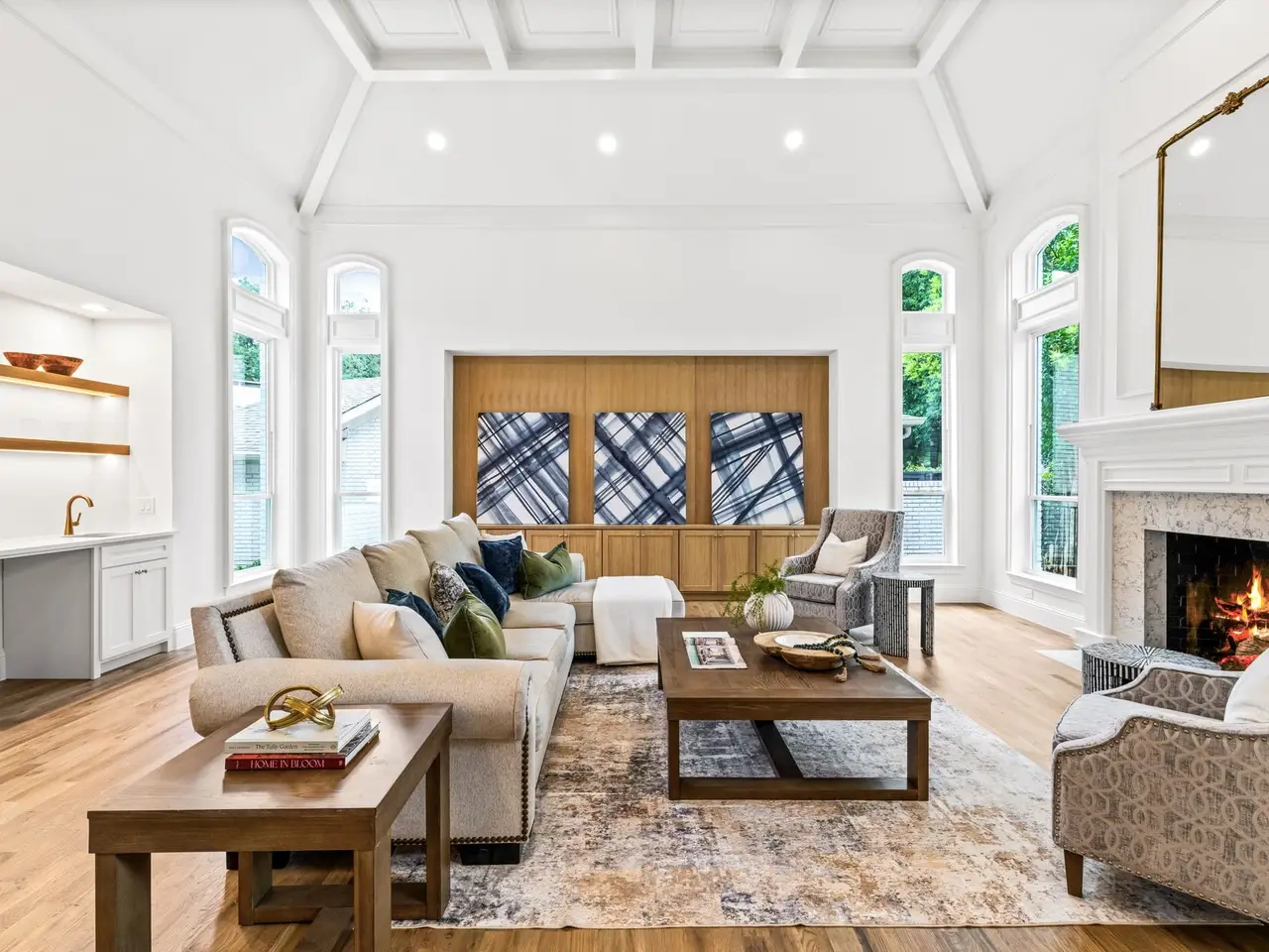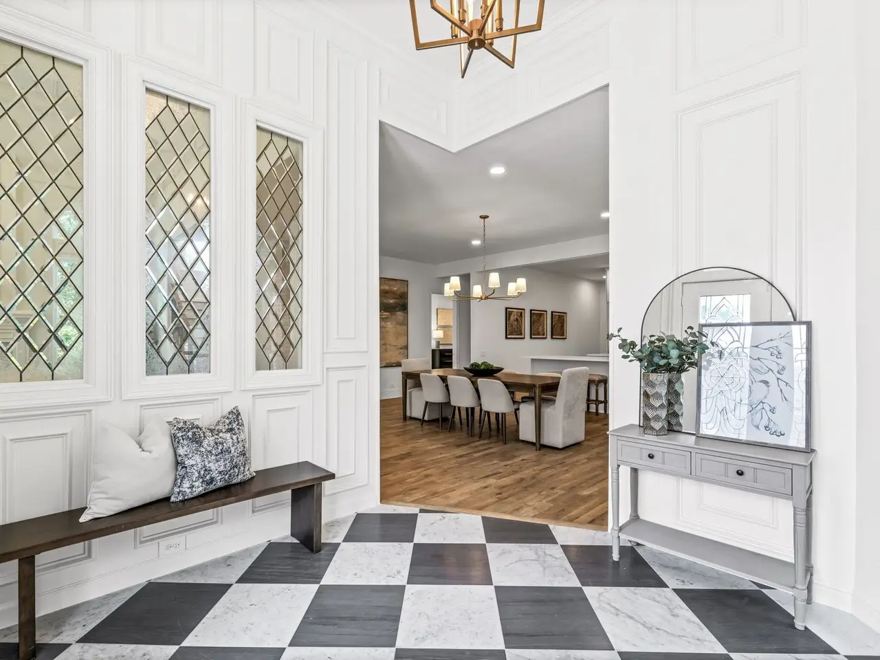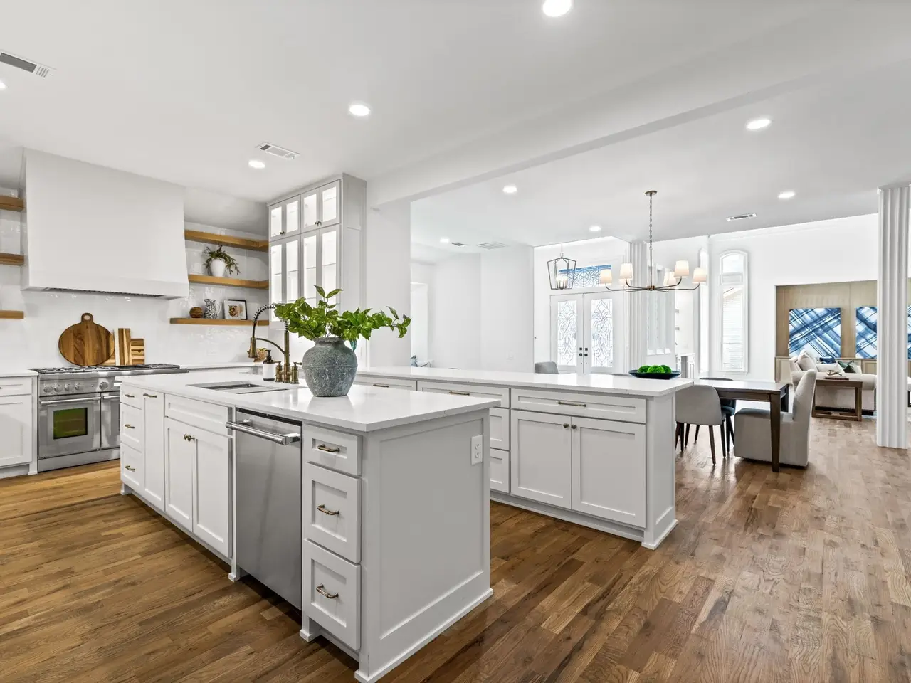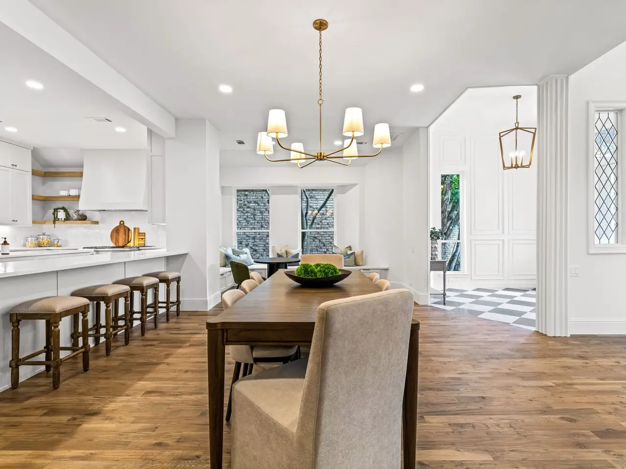 Tucked inside the prestigious, guard-gated Glen Lakes community, this impeccably and completely renovated 4,100 sq ft residence offers refined living in one of Dallas most coveted enclaves, just moments from Central Expressway, NorthPark Center, and the city’s premier dining and shopping destinations. Step inside to soaring 20-foot ceilings and a dramatic, light-filled living area anchored by one of two beautifully appointed fireplaces. Designed for entertaining, the home features two built-in wet bars and a stunning dual-island kitchen with custom cabinetry, designer lighting, and sophisticated wallpaper accents. Throughout the home, curated tilework and exquisite flooring selections further elevate the interiors with subtle yet striking detail. The spacious primary suite, located on the main level, is a luxurious retreat with a spa-inspired marble and granite bath. Enjoy a freestanding soaking tub, an oversized double walk-through shower, his-and-her water closets, and a couture-worthy custom closet. Upstairs, a versatile flex space offers endless possibilities, whether as a home office, media room, playroom, or private fitness studio. Three secondary bedrooms, each with sleek, modern en-suite baths, provide comfort and style for family or guests. Additional highlights include a charming breakfast nook with built-in window seat storage, a well-appointed utility room with custom built-ins, and an epoxy-coated two-car garage. Residents enjoy access to private walking trails and a community pool, all within a secure, lock-and-leave setting in the heart of Dallas.