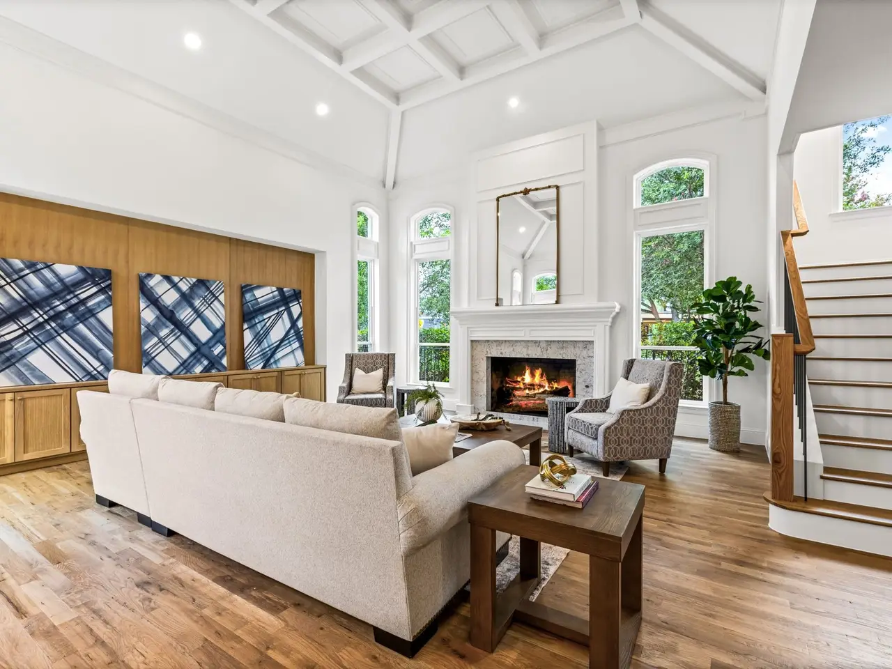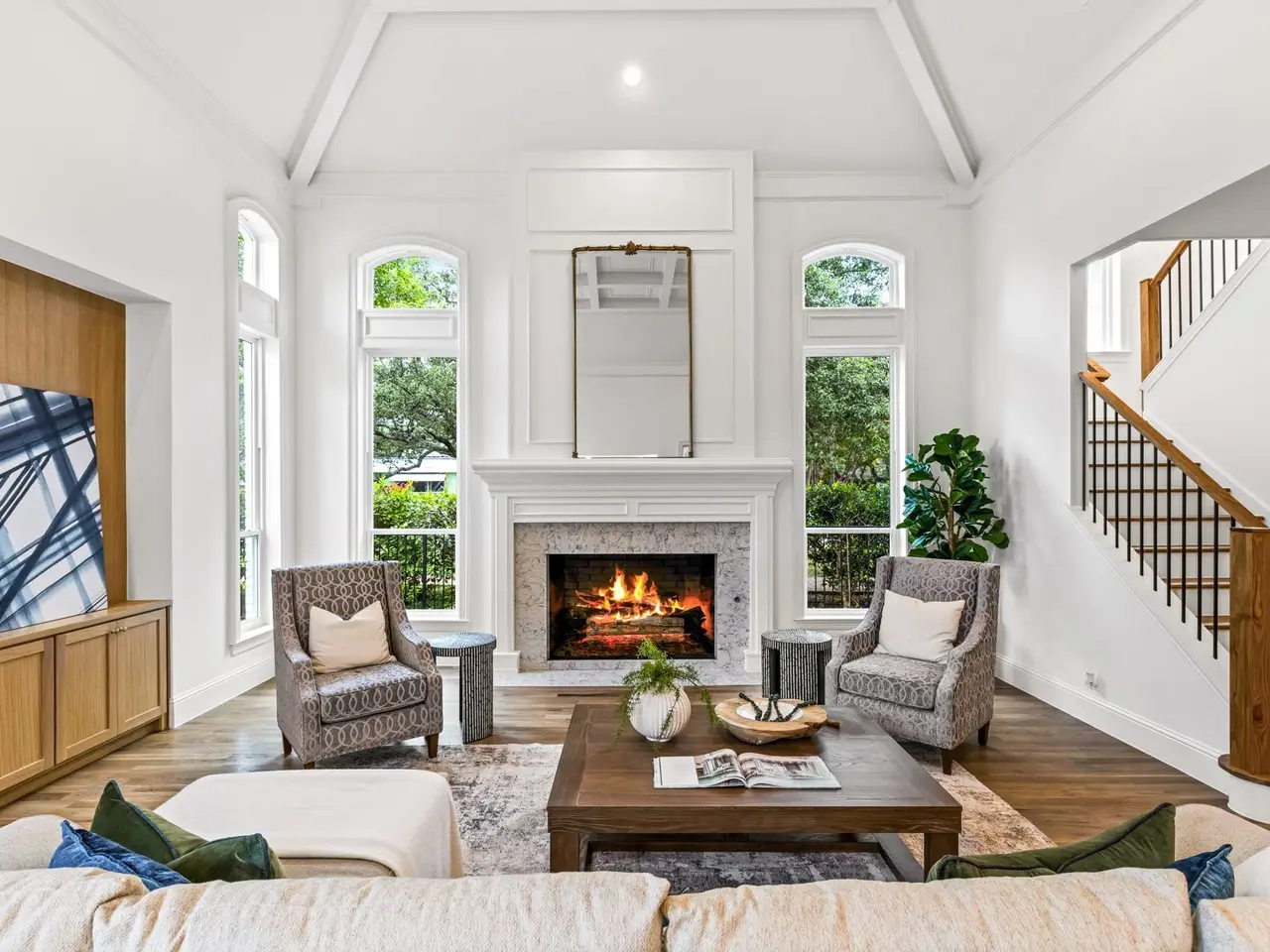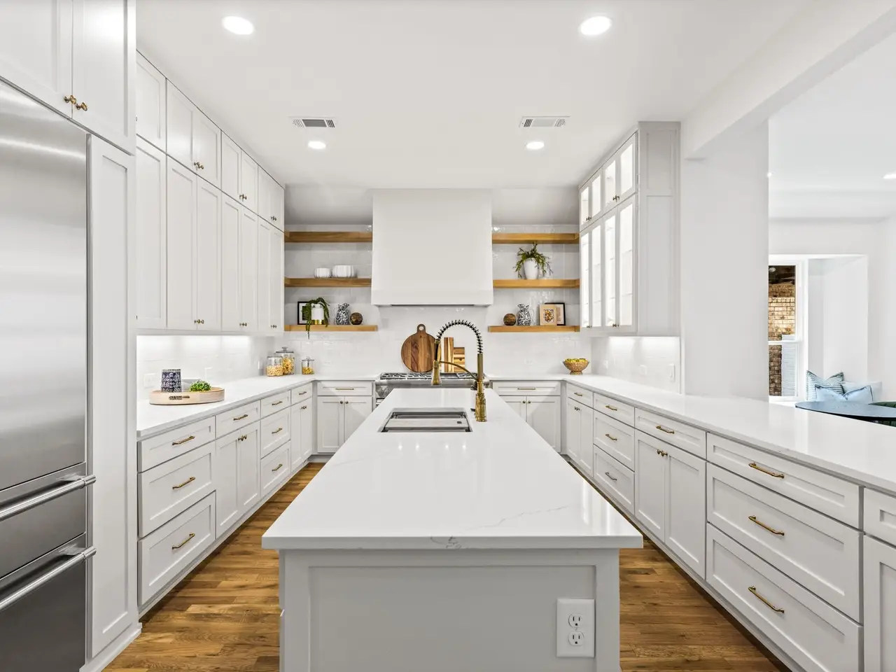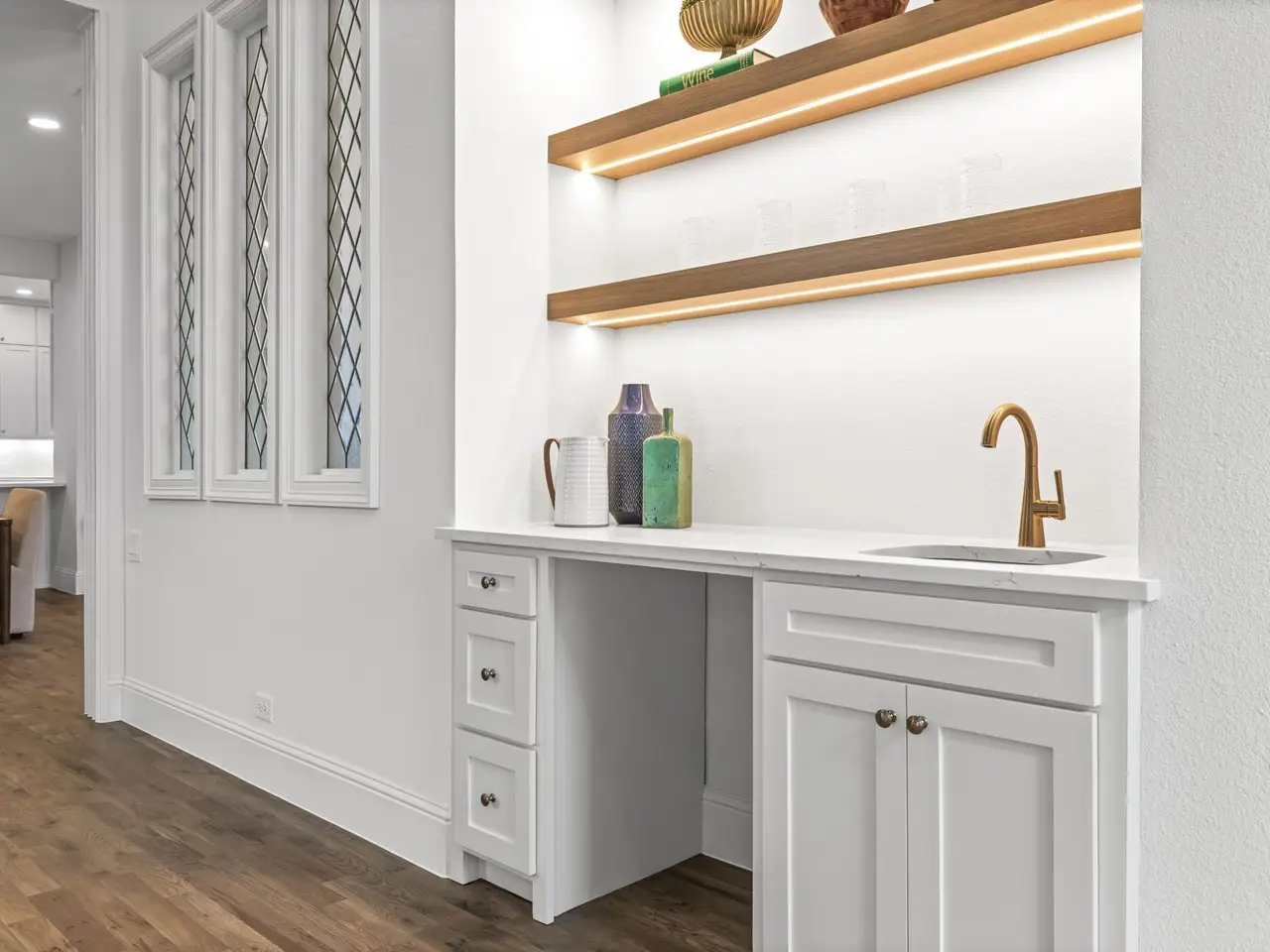 Tucked inside the prestigious, guard-gated Glen Lakes community, this impeccably and completely renovated 4,100 sq ft residence offers refined living in one of Dallas most coveted enclaves, just moments from Central Expressway, NorthPark Center, and the city’s premier dining and shopping destinations. Step inside to soaring 20-foot ceilings and a dramatic, light-filled living area anchored by one of two beautifully appointed fireplaces. Designed for entertaining, the home features two built-in wet bars and a stunning dual-island kitchen with custom cabinetry, designer lighting, and sophisticated wallpaper accents. Throughout the home, curated tilework and exquisite flooring selections further elevate the interiors with subtle yet striking detail. The spacious primary suite, located on the main level, is a luxurious retreat with a spa-inspired marble and granite bath. Enjoy a freestanding soaking tub, an oversized double walk-through shower, his-and-her water closets, and a couture-worthy custom closet. Upstairs, a versatile flex space offers endless possibilities, whether as a home office, media room, playroom, or private fitness studio. Three secondary bedrooms, each with sleek, modern en-suite baths, provide comfort and style for family or guests. Additional highlights include a charming breakfast nook with built-in window seat storage, a well-appointed utility room with custom built-ins, and an epoxy-coated two-car garage. Residents enjoy access to private walking trails and a community pool, all within a secure, lock-and-leave setting in the heart of Dallas.