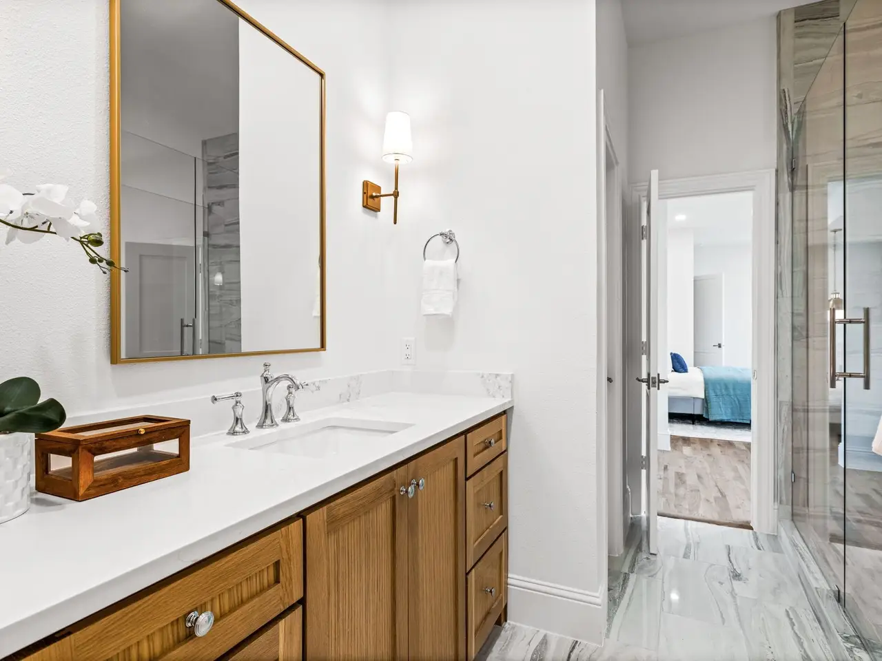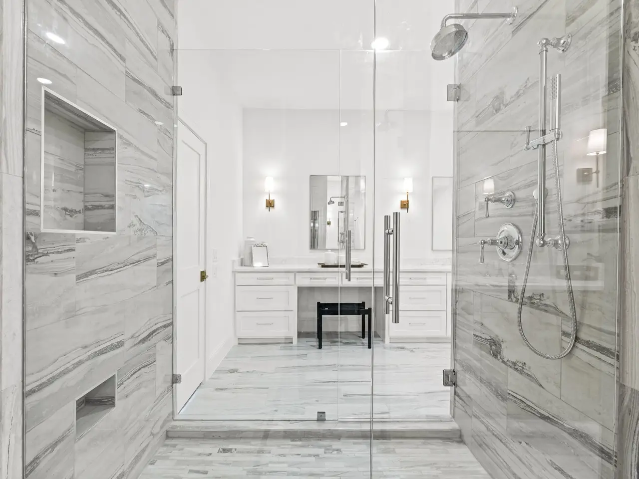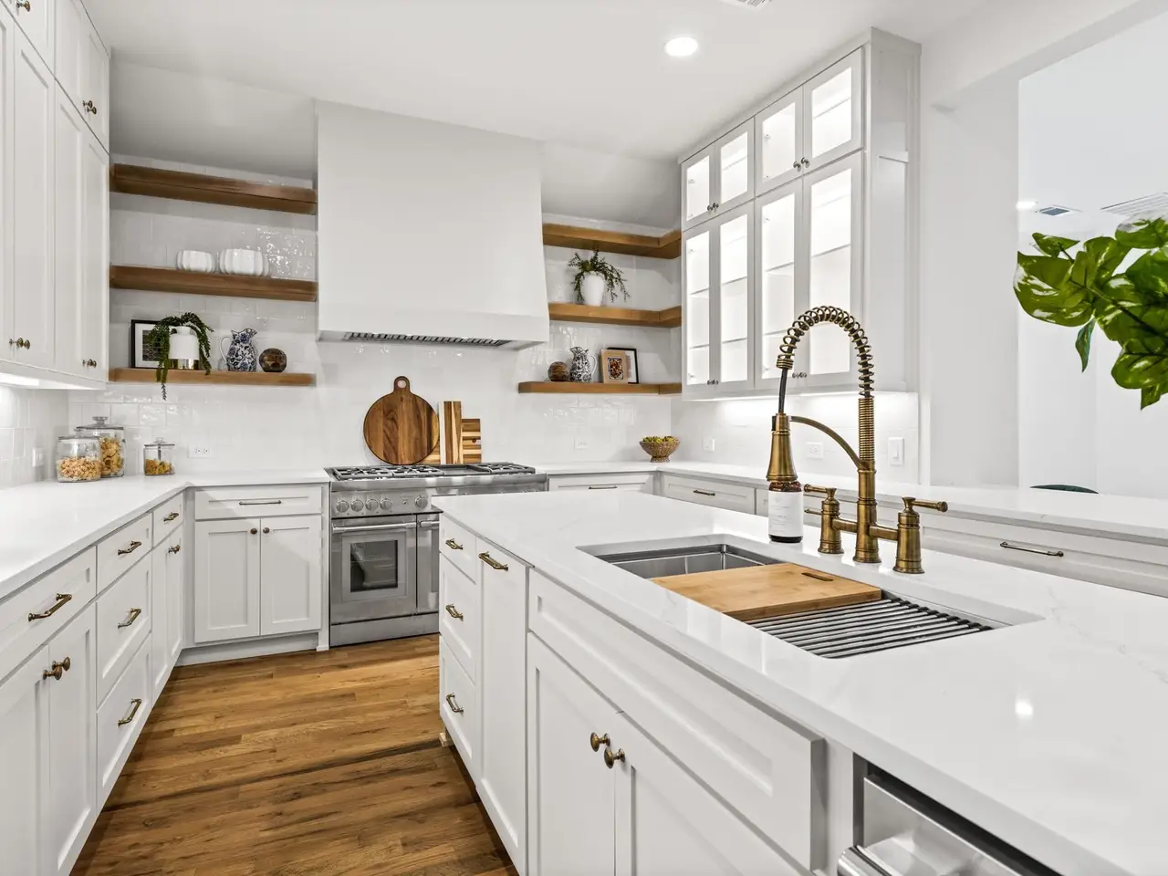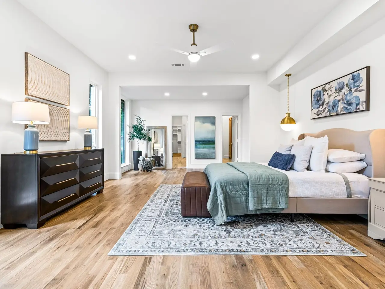 Tucked inside the prestigious, guard-gated Glen Lakes community, this impeccably and completely renovated 4,100 sq ft residence offers refined living in one of Dallas most coveted enclaves, just moments from Central Expressway, NorthPark Center, and the city’s premier dining and shopping destinations. Step inside to soaring 20-foot ceilings and a dramatic, light-filled living area anchored by one of two beautifully appointed fireplaces. Designed for entertaining, the home features two built-in wet bars and a stunning dual-island kitchen with custom cabinetry, designer lighting, and sophisticated wallpaper accents. Throughout the home, curated tilework and exquisite flooring selections further elevate the interiors with subtle yet striking detail. The spacious primary suite, located on the main level, is a luxurious retreat with a spa-inspired marble and granite bath. Enjoy a freestanding soaking tub, an oversized double walk-through shower, his-and-her water closets, and a couture-worthy custom closet. Upstairs, a versatile flex space offers endless possibilities, whether as a home office, media room, playroom, or private fitness studio. Three secondary bedrooms, each with sleek, modern en-suite baths, provide comfort and style for family or guests. Additional highlights include a charming breakfast nook with built-in window seat storage, a well-appointed utility room with custom built-ins, and an epoxy-coated two-car garage. Residents enjoy access to private walking trails and a community pool, all within a secure, lock-and-leave setting in the heart of Dallas.