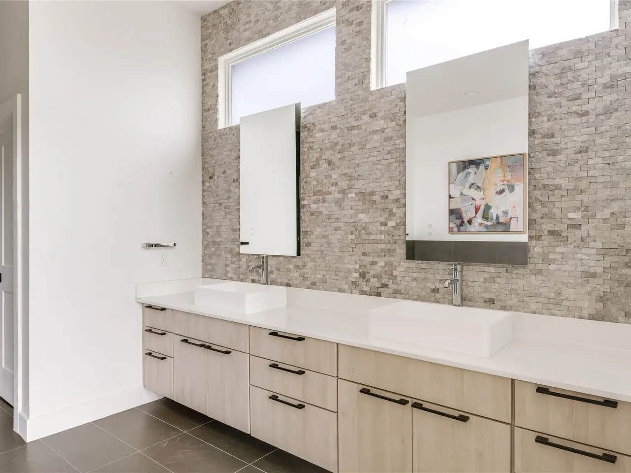 Spa-like bath with dual vanities