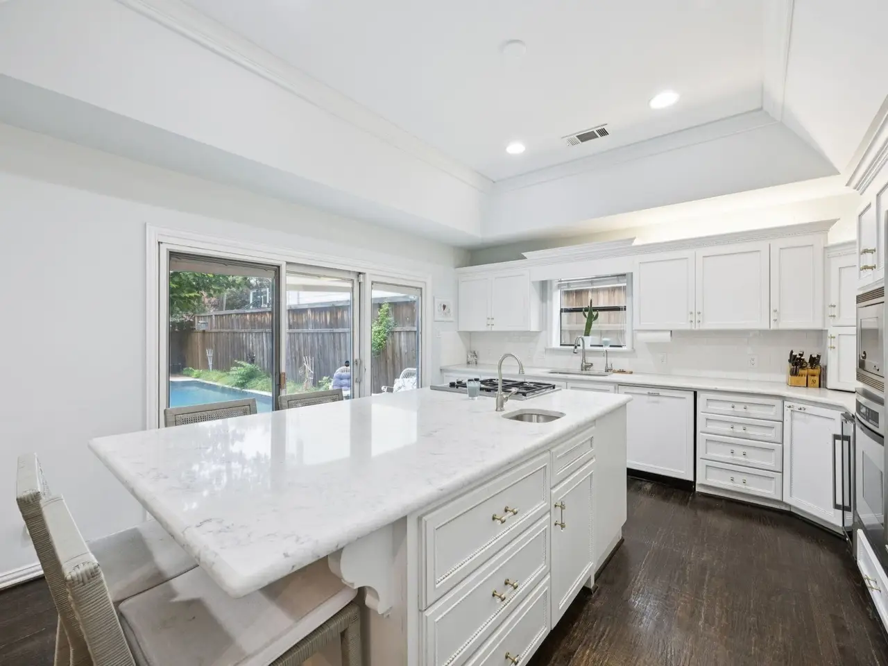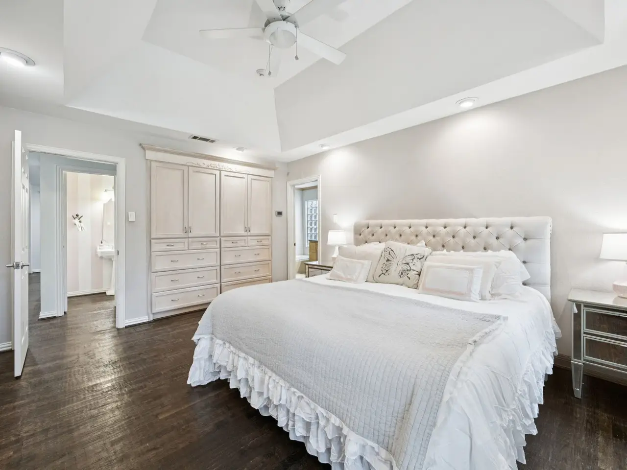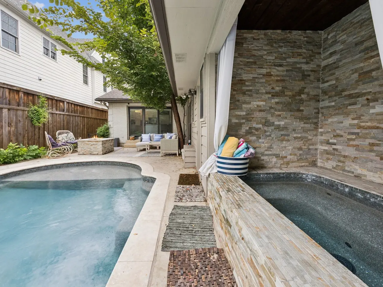 Introducing a stunning, move-in-ready home in the highly sought-after Highland Park ISD. Nestled on a serene cul-de-sac with minimal traffic and wonderful neighbors, this exquisite 4-bedroom, 4.5-bathroom single-family residence, zoned for Boone Elementary, boasts an outstanding blend of modern updates & timeless charm. The welcoming front porch showcases exposed wood beams & stone accents making it the perfect spot to enjoy watching children play or a quite spot to read a book.This is a fitting introduction to the thoughtfully designed layout catering perfectly to contemporary family living, featuring soaring ceilings and elegant wood floors in all entertaining spaces. The first-floor primary suite is a tranquil retreat with lofty ceilings, wood floors, & a luxurious spa-like bath equipped with jetted tub,separate shower, & expansive walk-in closet & wall of built -ins. A second suite down adds versatility, perfect for guests,young children,or home office. A sleek chefs kitchen dazzles with marble counters, a spacious island, built in wine fridge, a SubZero refrigerator, gas cooktop, and abundant cabinetry. The kitchen seamlessly flows into the family room, with a cathedral ceiling & stone fireplace, creating a warm & inviting space to gather. Formal living and dining areas feature a second fireplace & floor-length windows providing loads of natural light. Upstairs, youll find 2 additional bedrooms & a full bathroom, providing comfort & privacy for children and guests. The backyard is a private retreat, offering a sparkling pool (removable safety fencing), a sep. spa, & multiple seating areas around a built-in firepit. Practical features include attached 2-car garage, additional guest parking, a full pool bath, & separate utility room. Updates include new windows, carpet, all baths, & paint. This home is sure to impress. Dont miss out on the chance to proudly call this updated gem, on a quiet cul-de-sac your home.