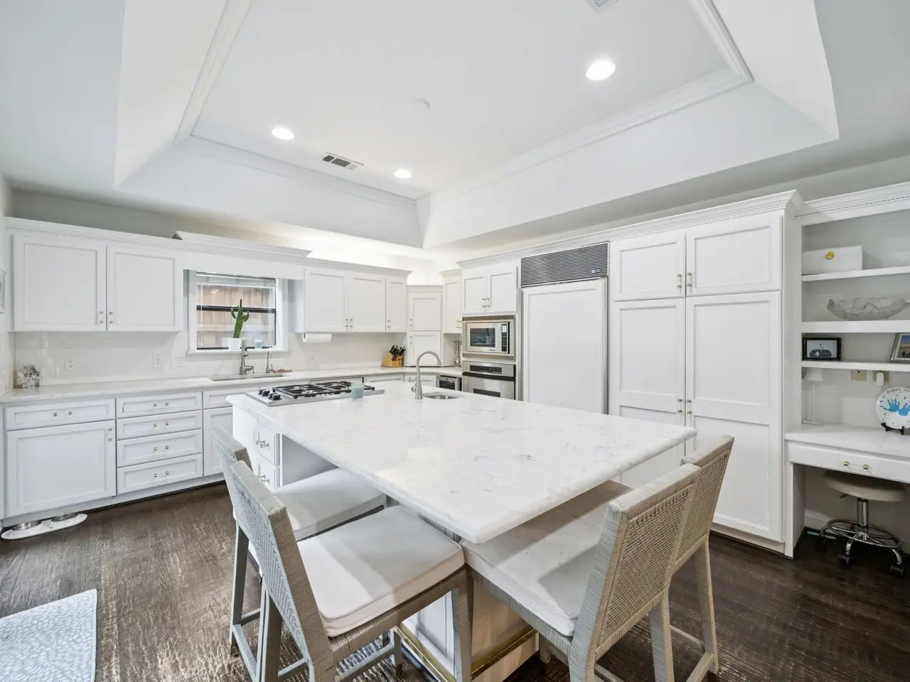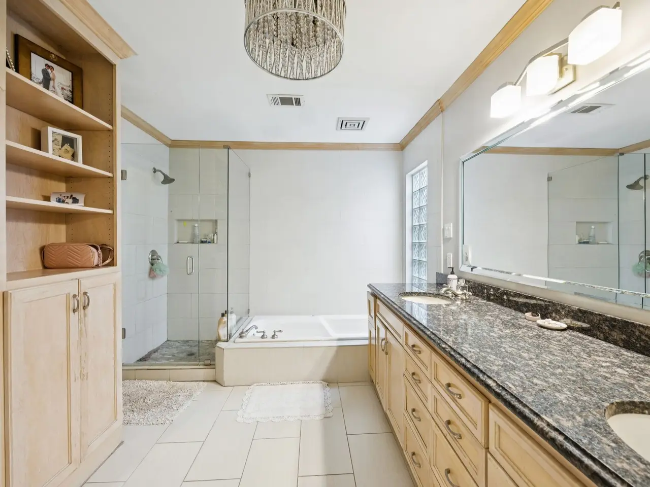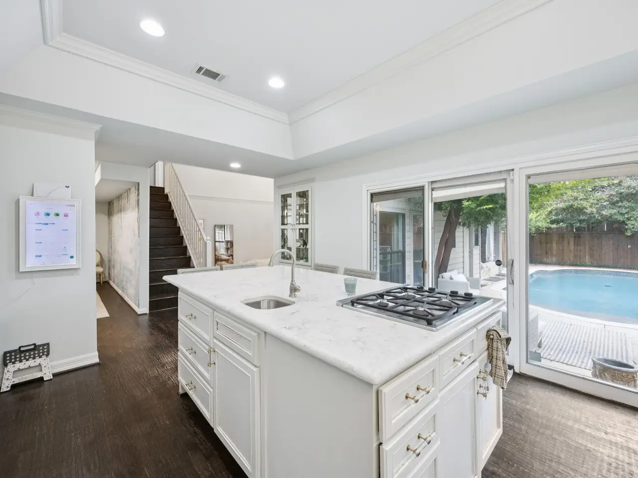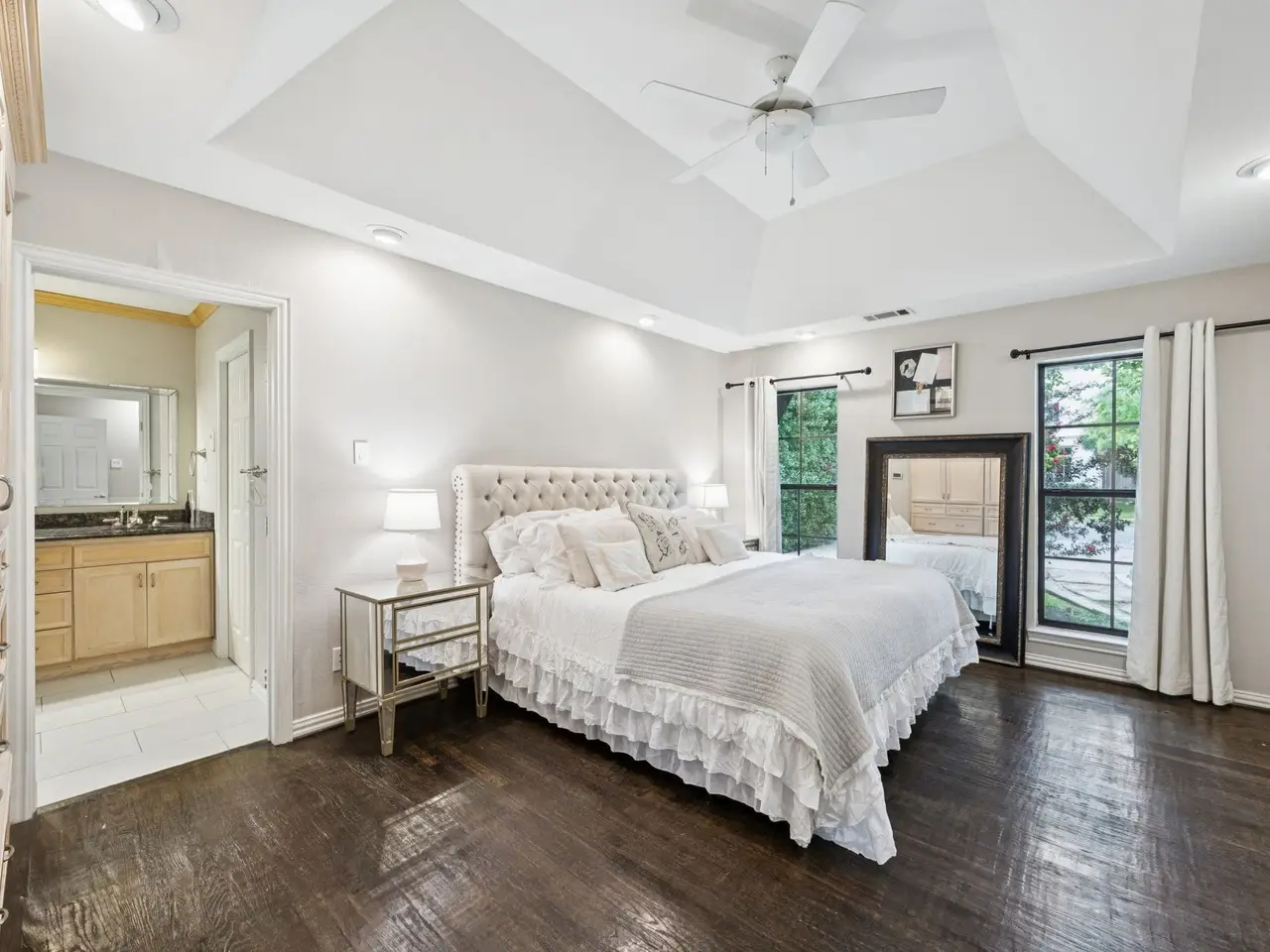 Introducing a stunning, move-in-ready home in the highly sought-after Highland Park ISD. Nestled on a serene cul-de-sac with minimal traffic and wonderful neighbors, this exquisite 4-bedroom, 4.5-bathroom single-family residence, zoned for Boone Elementary, boasts an outstanding blend of modern updates & timeless charm. The welcoming front porch showcases exposed wood beams & stone accents making it the perfect spot to enjoy watching children play or a quite spot to read a book.This is a fitting introduction to the thoughtfully designed layout catering perfectly to contemporary family living, featuring soaring ceilings and elegant wood floors in all entertaining spaces. The first-floor primary suite is a tranquil retreat with lofty ceilings, wood floors, & a luxurious spa-like bath equipped with jetted tub,separate shower, & expansive walk-in closet & wall of built -ins. A second suite down adds versatility, perfect for guests,young children,or home office. A sleek chefs kitchen dazzles with marble counters, a spacious island, built in wine fridge, a SubZero refrigerator, gas cooktop, and abundant cabinetry. The kitchen seamlessly flows into the family room, with a cathedral ceiling & stone fireplace, creating a warm & inviting space to gather. Formal living and dining areas feature a second fireplace & floor-length windows providing loads of natural light. Upstairs, youll find 2 additional bedrooms & a full bathroom, providing comfort & privacy for children and guests. The backyard is a private retreat, offering a sparkling pool (removable safety fencing), a sep. spa, & multiple seating areas around a built-in firepit. Practical features include attached 2-car garage, additional guest parking, a full pool bath, & separate utility room. Updates include new windows, carpet, all baths, & paint. This home is sure to impress. Dont miss out on the chance to proudly call this updated gem, on a quiet cul-de-sac your home.