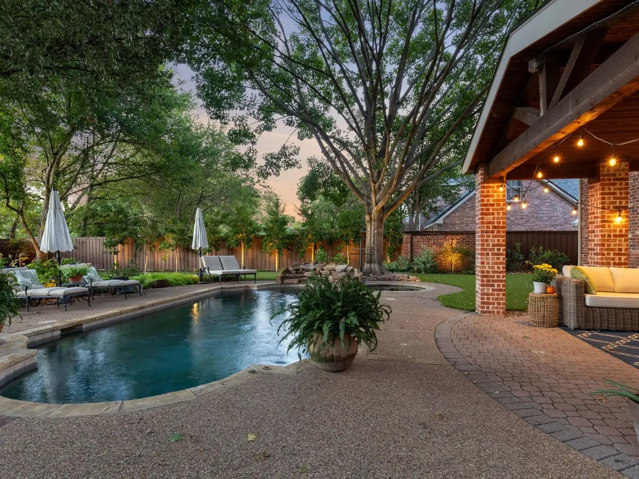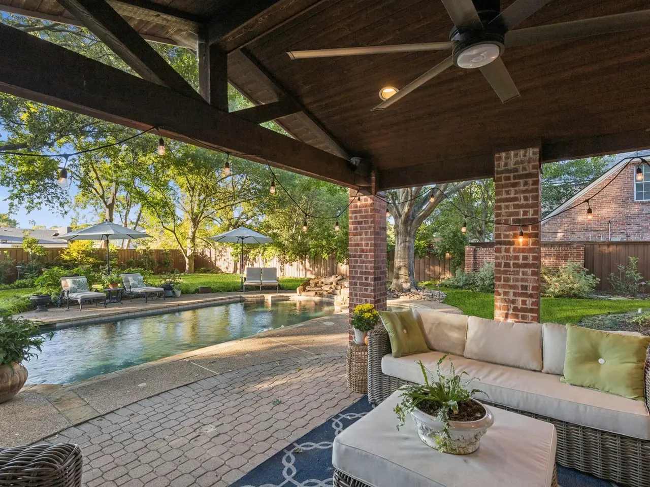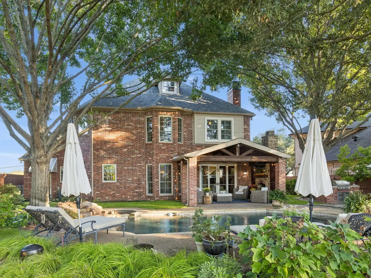 Timeless elegance meets everyday livability in this custom-built traditional home, perfectly poised on a 79 x 194 lot in the heart of the White Rock Elementary neighborhood. Overlooking the rolling greens of Flag Pole Hill, this residence was crafted with exceptional attention to detail from its gleaming hardwood floors and crown molding to the inviting den with wood-beamed ceiling and French doors framing views of the backyard oasis. Step outside and fall in love with the covered outdoor living area, complete with a fireplace for cool evenings, a classic rectangular pool, and a large, turfed play area that's as functional as it is beautiful. Every inch of the landscaping and outdoor lighting has been thoughtfully curated for beauty and ease. Inside, every bedroom offers an en suite retreat, while the spacious playroom and dedicated office provide room for work, play, and everything in between. With its gracious flow and timeless craftsmanship, this home embodies what it means to live beautifully a seamless blend of comfort, character, and charm in one of Dallas' most sought-after enclaves.