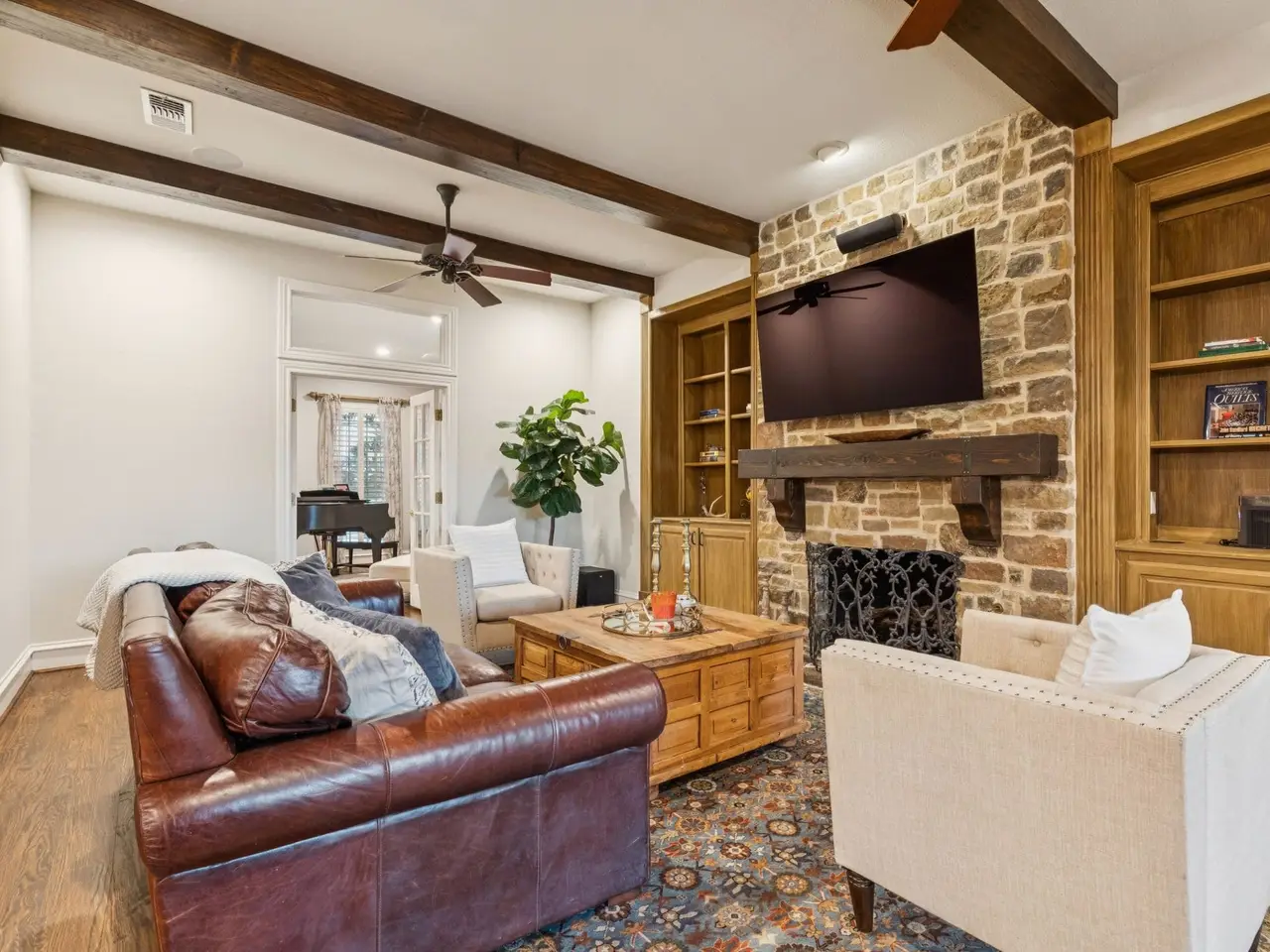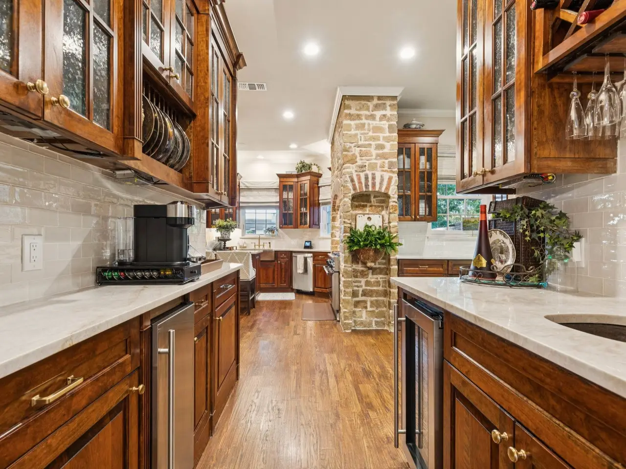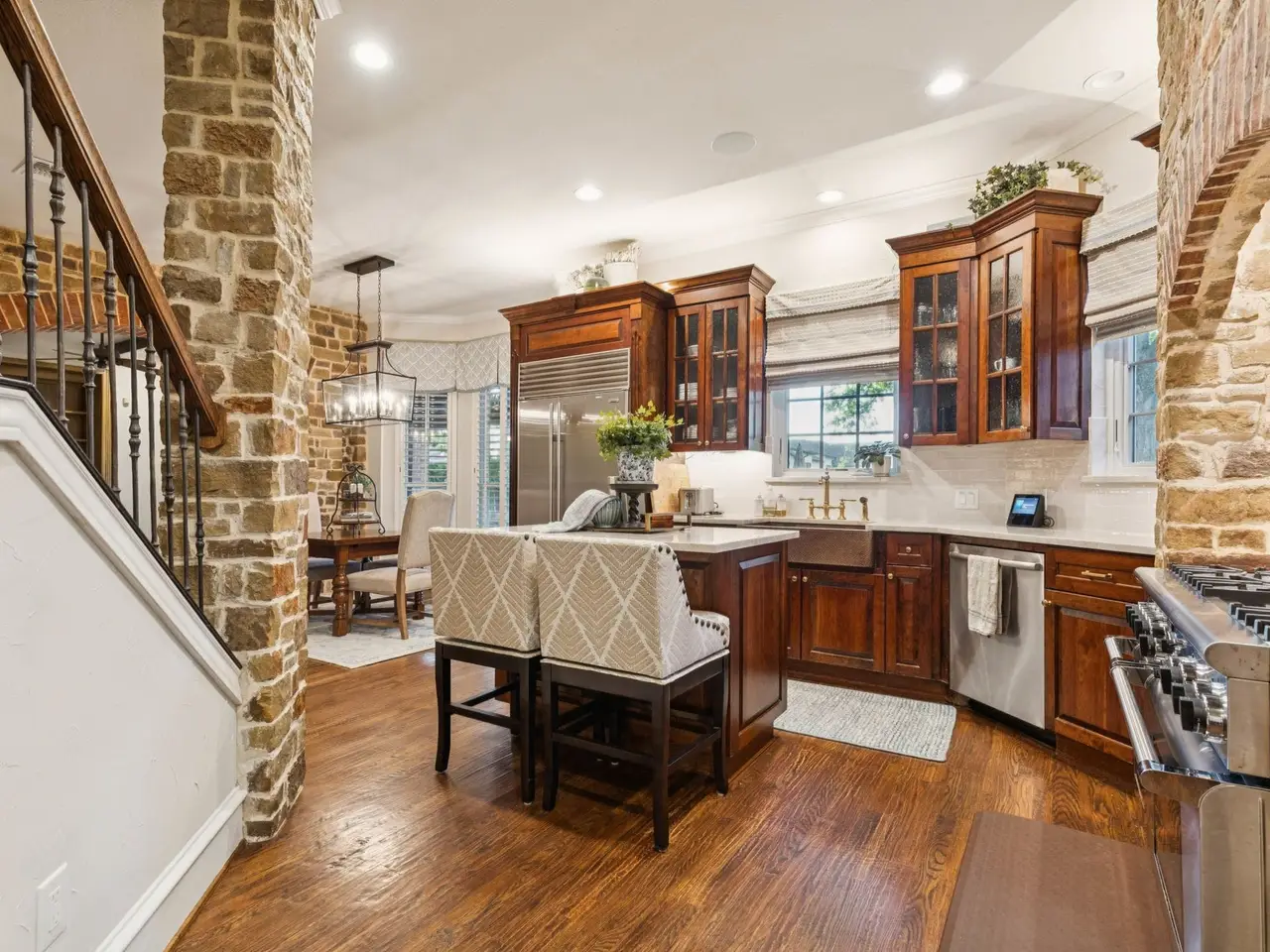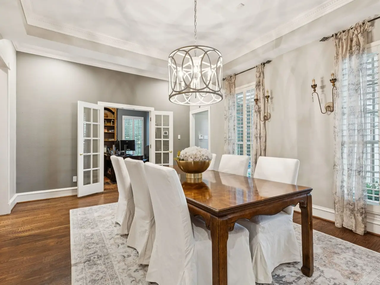 Timeless elegance meets everyday livability in this custom-built traditional home, perfectly poised on a 79 x 194 lot in the heart of the White Rock Elementary neighborhood. Overlooking the rolling greens of Flag Pole Hill, this residence was crafted with exceptional attention to detail from its gleaming hardwood floors and crown molding to the inviting den with wood-beamed ceiling and French doors framing views of the backyard oasis. Step outside and fall in love with the covered outdoor living area, complete with a fireplace for cool evenings, a classic rectangular pool, and a large, turfed play area that's as functional as it is beautiful. Every inch of the landscaping and outdoor lighting has been thoughtfully curated for beauty and ease. Inside, every bedroom offers an en suite retreat, while the spacious playroom and dedicated office provide room for work, play, and everything in between. With its gracious flow and timeless craftsmanship, this home embodies what it means to live beautifully a seamless blend of comfort, character, and charm in one of Dallas' most sought-after enclaves.