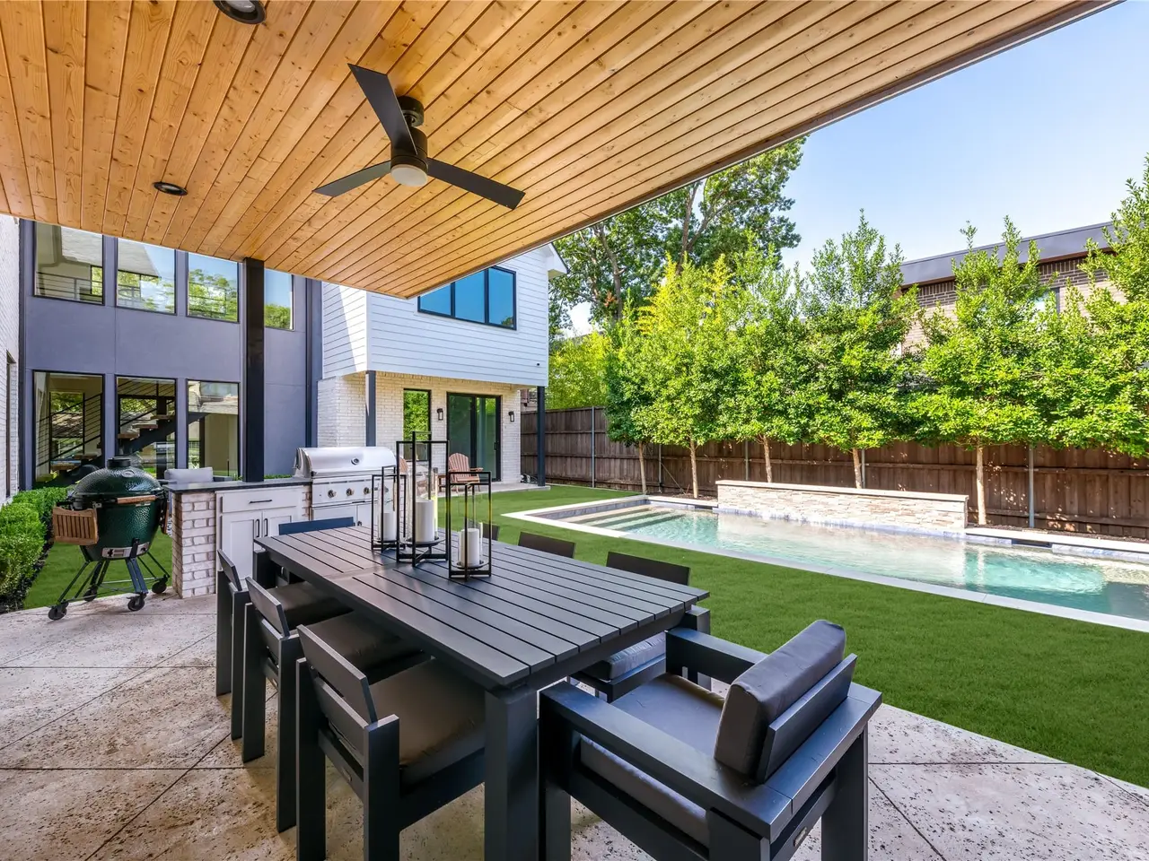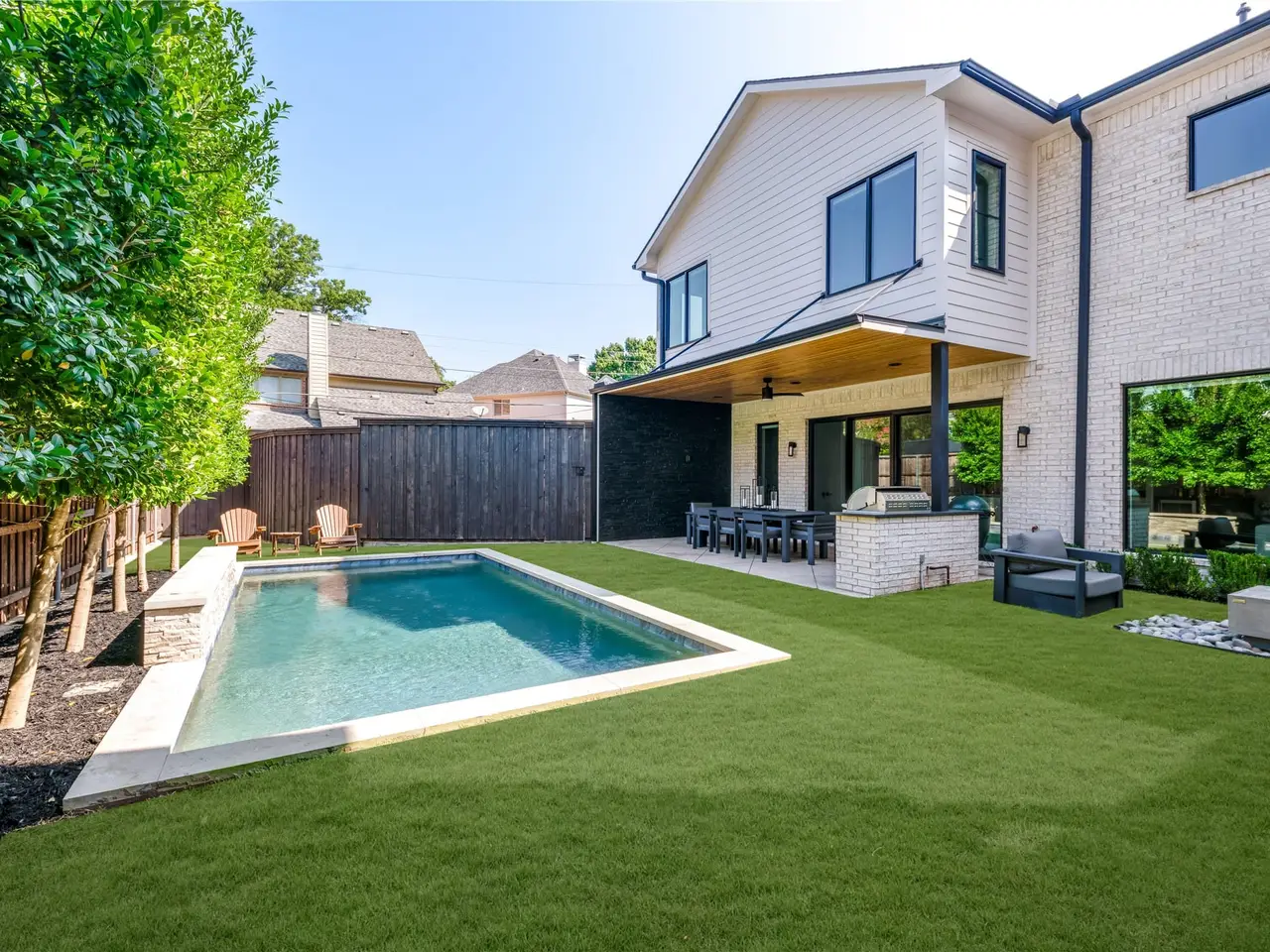 Welcome to 7119 Deer Trail a thoughtfully crafted five-bedroom residence in one of Dallass most desirable neighborhoods, served by White Rock Elementary. Nestled beside horse stables, scenic Flagpole Hill, and White Rock Lake, this home offers rare tranquility in the heart of the city. Designed by 5 West and completed in 2021, the home showcases elegant living and dining spaces, a private office, and a full mother-in-law suite with sliding doors that open to the sparkling pool, outdoor fireplace, and covered living area. Upstairs, discover three secondary bedrooms, a spacious playroom, and an expansive primary retreat designed for comfort and privacy. Throughout, designer finishes, a striking floating metal staircase, museum-finish walls, and steel-framed windows highlight where sophistication meets exceptional design in a rare offering unlike any other.