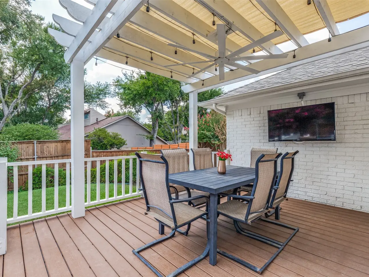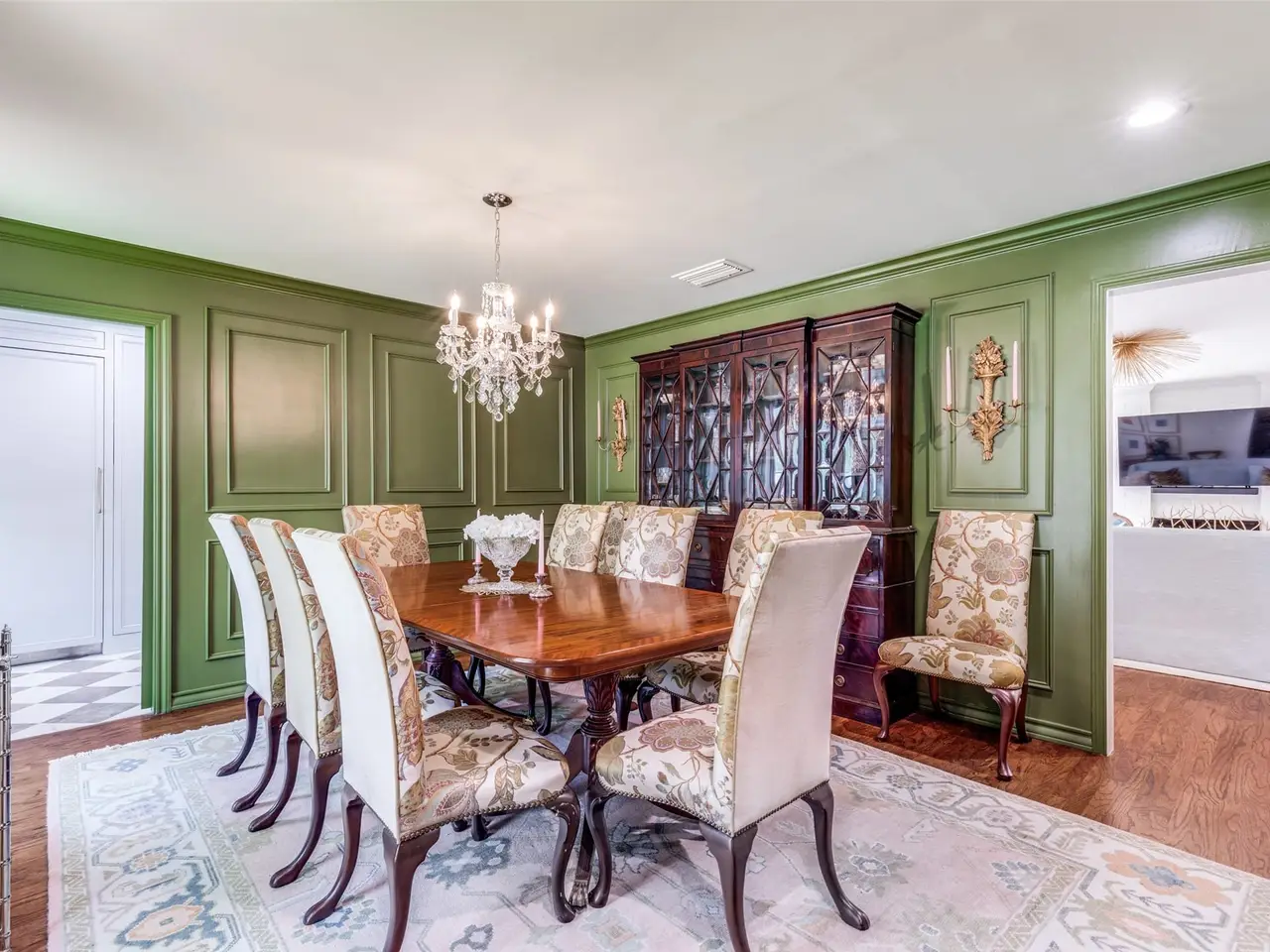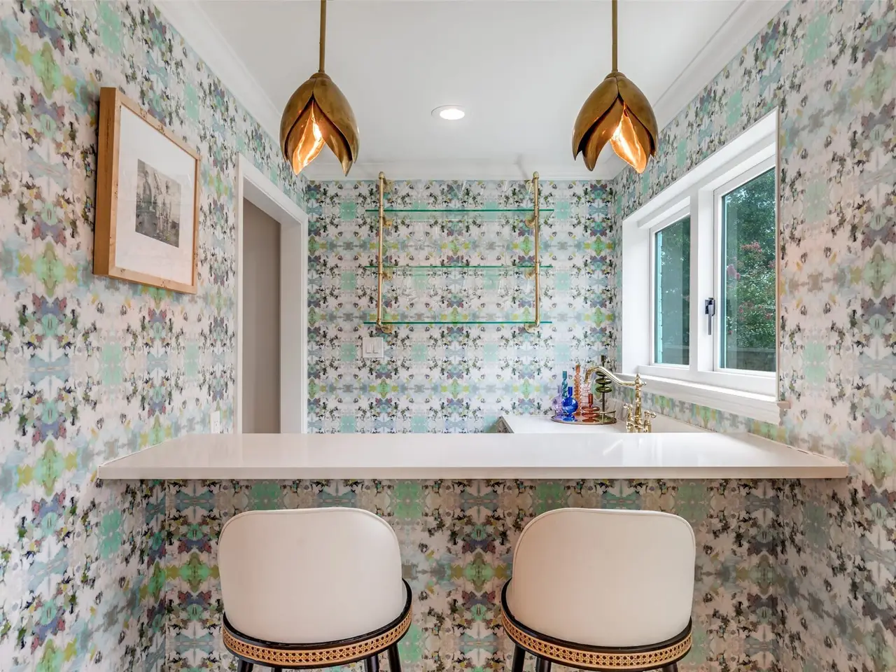 Welcome to this designer renovated Lake Highlands gem, a one of a kind home featured in design publications and curated by Emory McKim Design. Situated on a professionally landscaped and lighted quiet corner lot in the highly sought after, Moss Haven Elementary, this 4 bedroom, 2.5 bath property blends family functionality with elevated style and finishes. Offering an open floor plan and fully renovated in 2023, this special home boasts a custom kitchen with granite tops, Italian marble backsplash, Zline gas range, Bosch dishwasher, Monogram refrigerator, custom built cabinetry and window treatments. Open wet bar wrapped in iconic Laura Park wallpaper with icemaker and pass through window to custom Trex deck, grill, outdoor living area with pergola. Spacious first floor Primary suite with marble bath and custom tile and wallpaper, Formal Dining Room with avocado color walls and custom drapes, has pocket door to kitchen. Every space in this designer home is move in ready and thoughtfully designed. This home is the perfect blend of comfort, character and curb appeal.