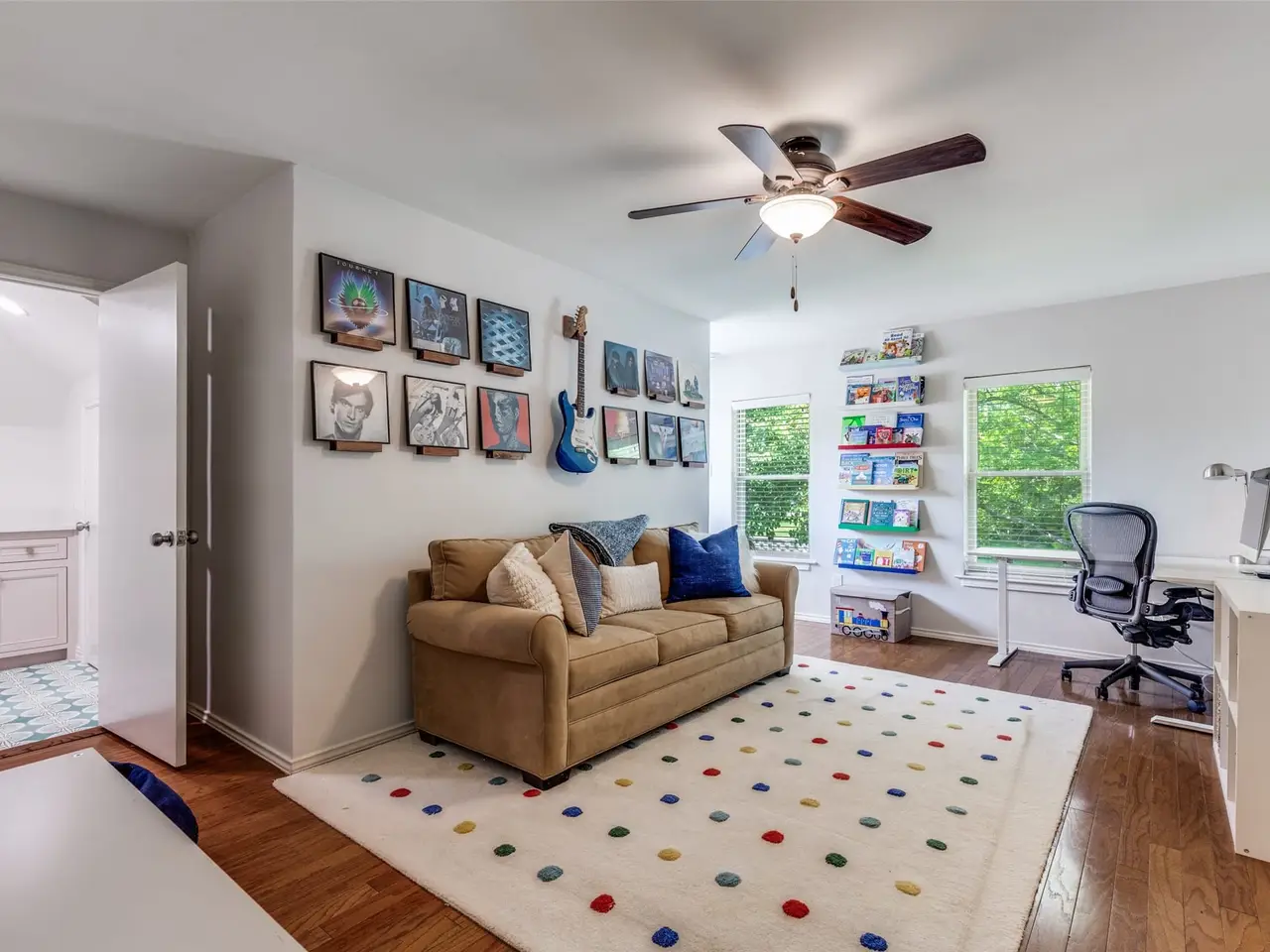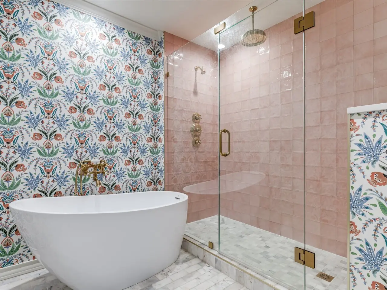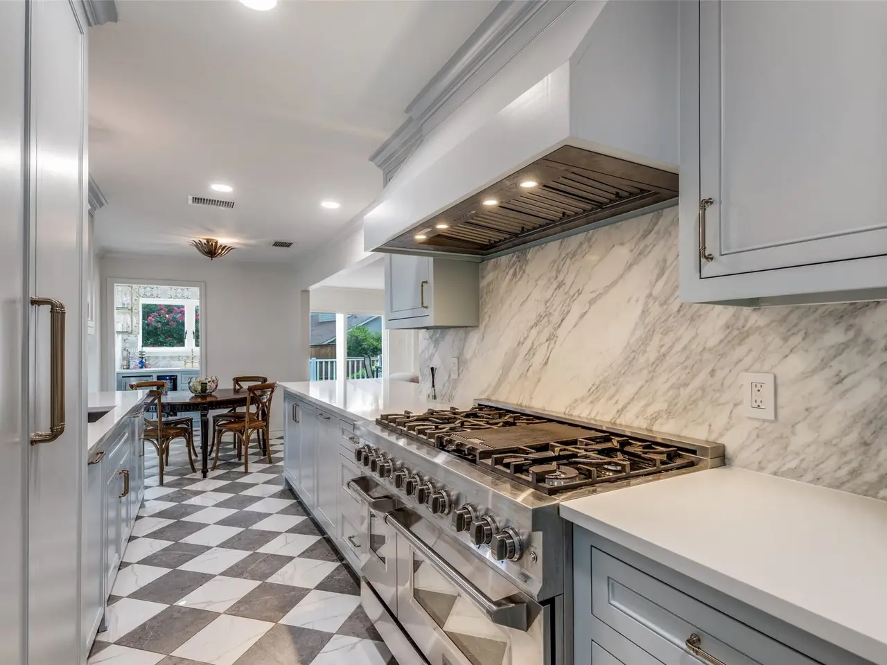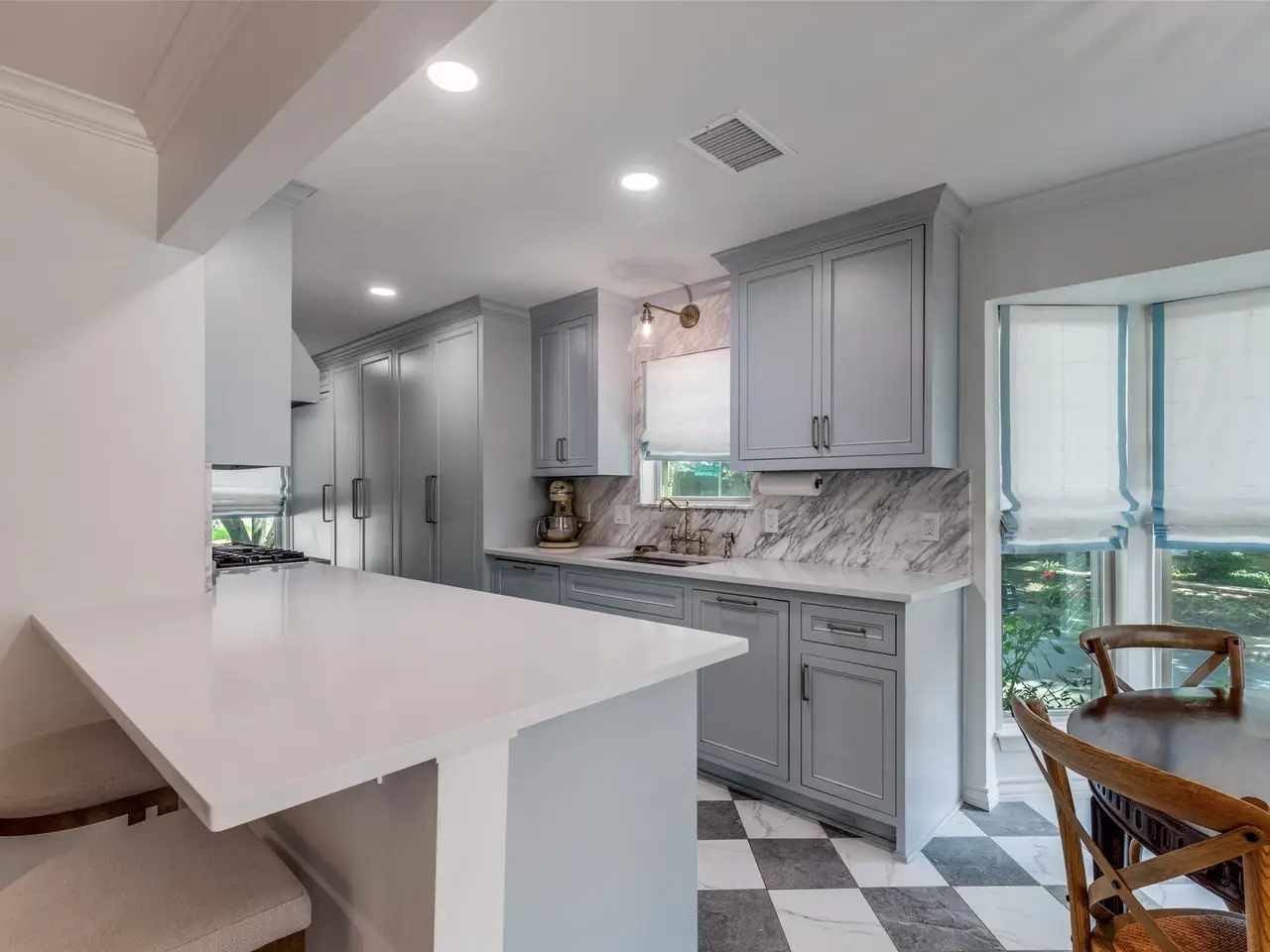 Welcome to this designer renovated Lake Highlands gem, a one of a kind home featured in design publications and curated by Emory McKim Design. Situated on a professionally landscaped and lighted quiet corner lot in the highly sought after, Moss Haven Elementary, this 4 bedroom, 2.5 bath property blends family functionality with elevated style and finishes. Offering an open floor plan and fully renovated in 2023, this special home boasts a custom kitchen with granite tops, Italian marble backsplash, Zline gas range, Bosch dishwasher, Monogram refrigerator, custom built cabinetry and window treatments. Open wet bar wrapped in iconic Laura Park wallpaper with icemaker and pass through window to custom Trex deck, grill, outdoor living area with pergola. Spacious first floor Primary suite with marble bath and custom tile and wallpaper, Formal Dining Room with avocado color walls and custom drapes, has pocket door to kitchen. Every space in this designer home is move in ready and thoughtfully designed. This home is the perfect blend of comfort, character and curb appeal.