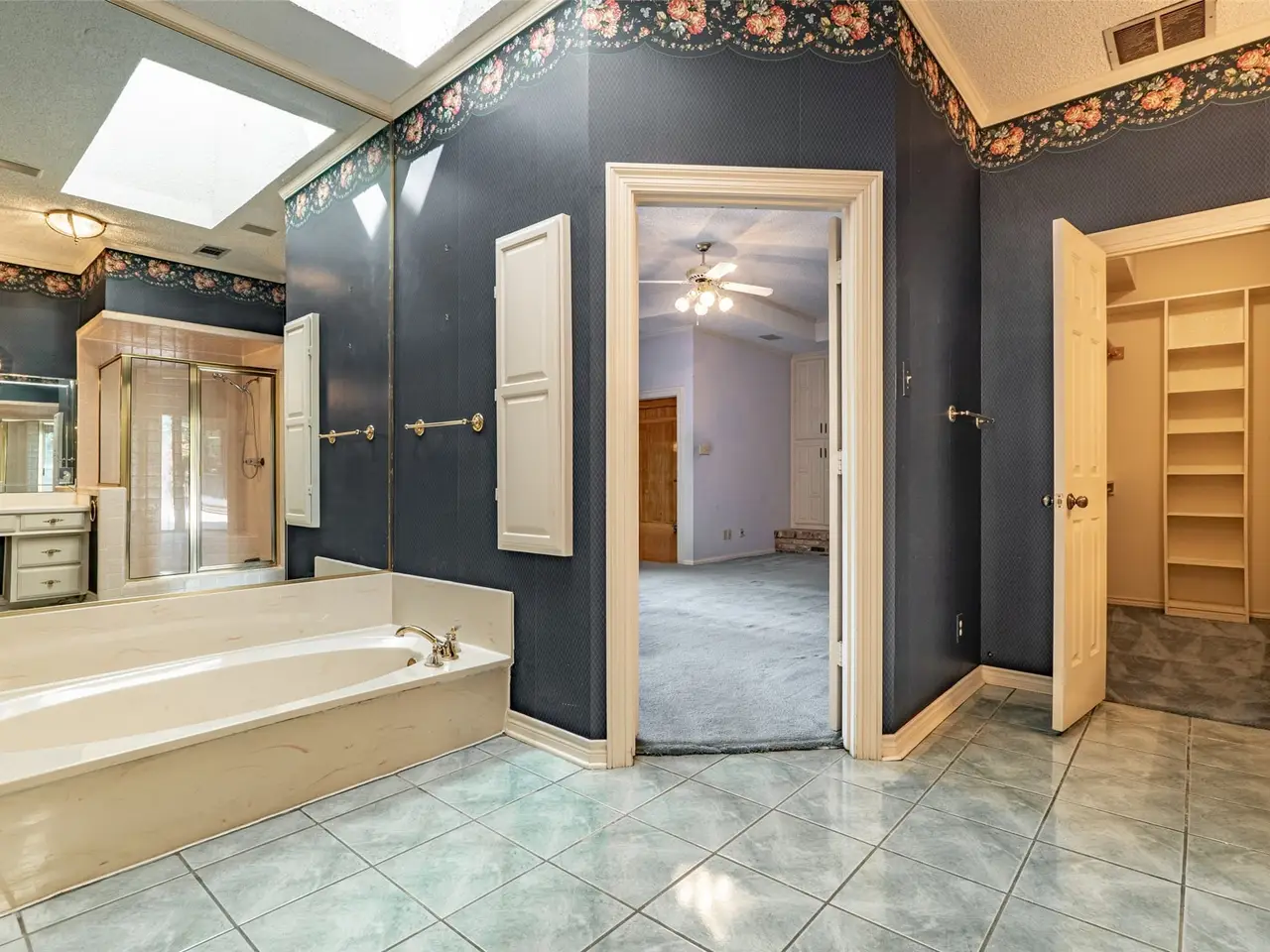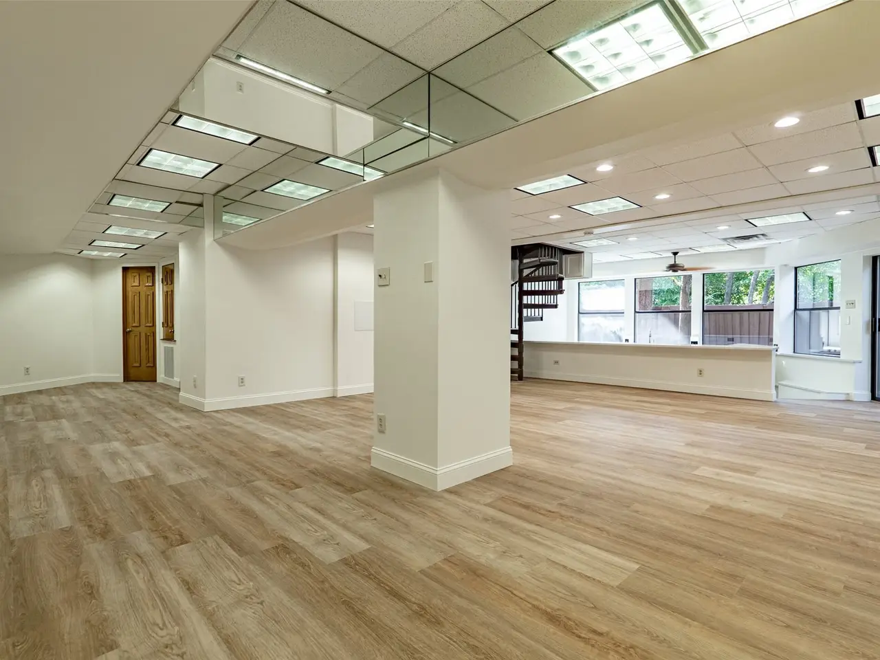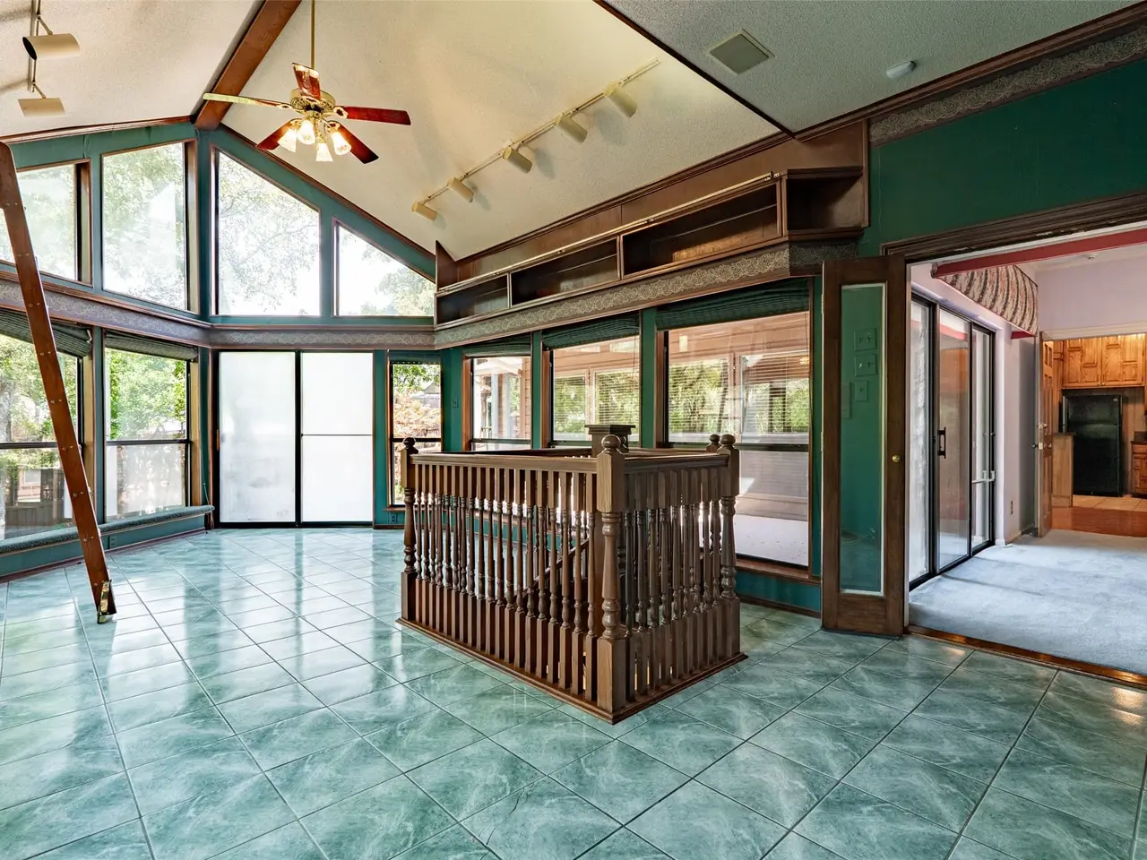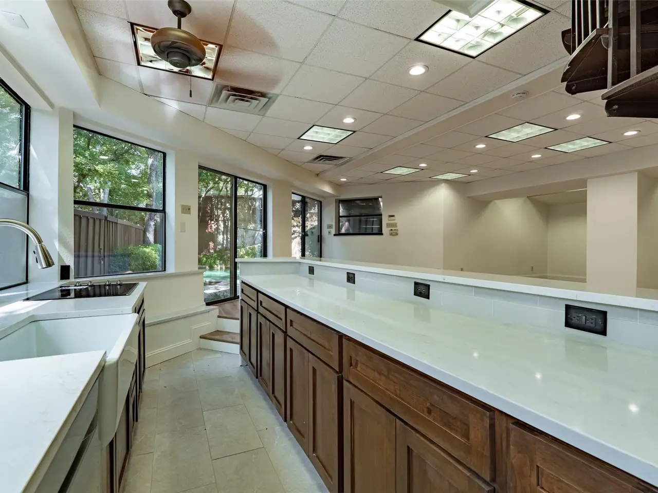 Welcome to a truly exceptional opportunity in the heart of Town Creek, one of Lake Highlands' most cherished neighborhoods. Set on an expansive 86 x 149 lot, this home offers 5,534 square feet of inspired living space plus a rare, finished 1,172 sq ft basement with direct walk-out access to a lush sanctuary of a backyard. Whether youre seeking a dream renovation that honors the original character or a foundation for modern luxury, this home is a rare gem blending location, layout, and lifestyle. Inside, soaring vaulted ceilings and oversized living spaces create a warm, grand ambiance. Custom built-in cabinetry throughout adds timeless charm and storage. A wall of windows in the living room overlooks the show-stopping three-tiered wooden deck, complete with a pool, natural grotto, and panoramic views of the treelined creek. From the distinct entryway, you enter the foyer to an open and inviting floor plan. The gourmet kitchen opens up to an eat-in breakfast area with a step down living space and walk-in wet bar. The office just off the primary creates a tree-house effect with windows overlooking the abundant trees. Upstairs, there are three bedrooms each accompanied with an en-suite bathroom. The third bedroom could easily be converted to another entertainment space or game room. Accessible via a beautiful spiral staircase, the fully finished downstairs offers an unexpected and versatile bonus: a full galley kitchen, elegant tile flooring, a full bath, and a dedicated safe room. Glass sliding doors open directly to the backyard oasis, creating the perfect space for entertaining, multigenerational living, a private guest retreat, or a one-of-a-kind creative studio. Backed by nature and surrounded by a close-knit community, this home boasts direct access to scenic creek-side trails, ideal for morning walks, evening runs, or simply soaking in the serenity. Town Creek isn't just a neighborhood, it's defined by beautiful surroundings and a welcoming spirit.