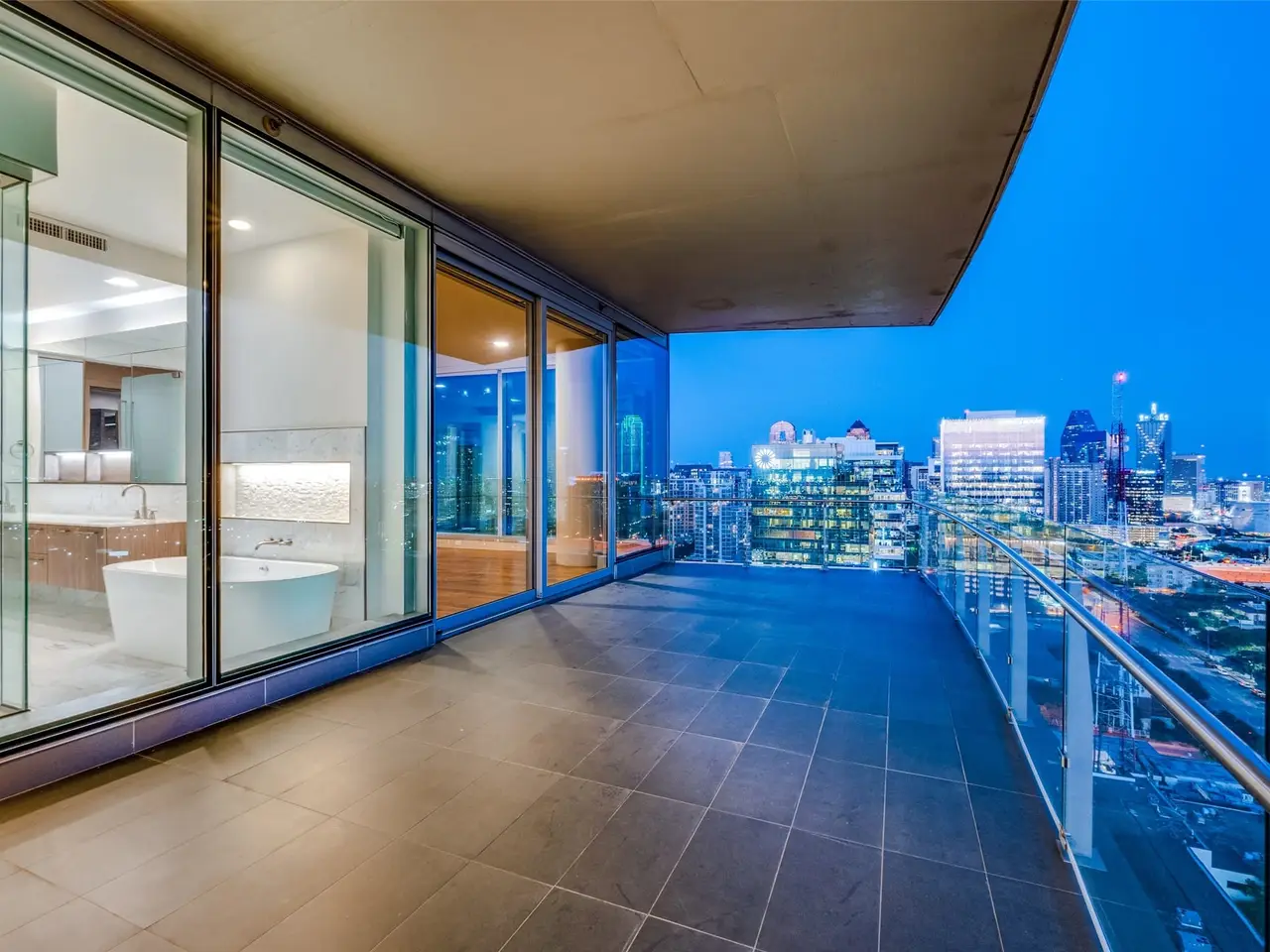 Oversized balcony with Downtown views