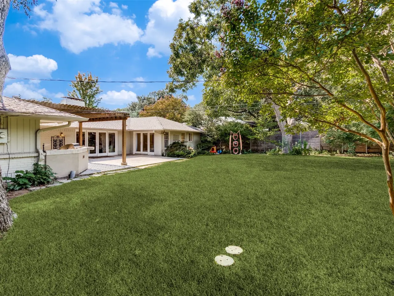 Nestled on a spacious 100' x 169' corner lot, this wonderful one-story home offers plenty of room to play, garden, or even add a pool the possibilities are endless! Inside, youll find three bedrooms, two-and-a-half baths, and two living areas filled with natural light, making it easy for everyone to find their favorite spot to relax. The beautifully updated kitchen opens to a breakfast area and living room overlooking the spacious backyard. Step outside to the backyard oasis, where theres plenty of space for kids, pets, and outdoor fun. The outdoor cooking area makes it easy to grill, entertain, and enjoy time with friends and loved ones. This home truly has it all space, comfort, and a welcoming atmosphere in a fantastic location.