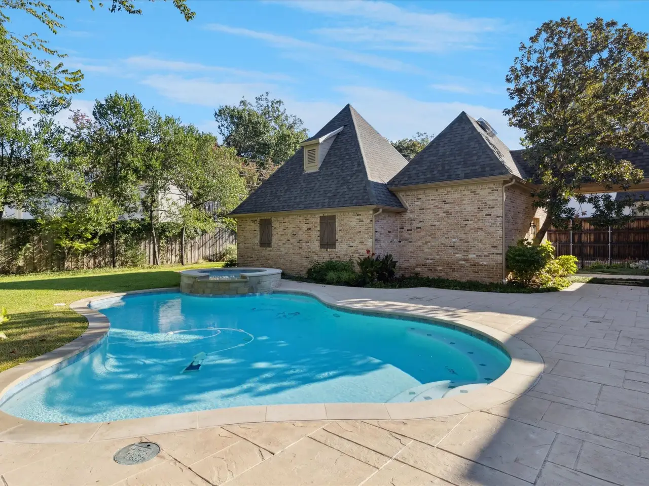 Approach this exquisitely updated Preston Hollow residence with designer touches throughout. Just imagine tailoring it to your preferred stylecontemporary, traditional, modern, or todays favored transitional design. With timeless elegance, the home provides a versatile canvas that complements any dcor. Set on a landscaped, close to half-acre lot with mature trees, it combines sophistication with comfort, and now includes a new roof and freshly painted interiors for a move-in-ready experience. Enter grand foyer, where with the latest in design, a bubble chandelier highlights the inviting staircase. Gleaming hardwood floors flow throughout downstairs, guiding you into the gracious living room with one of two fireplaces, walls of windows that fill the space with natural light and a wet bar with wine chillerperfect for entertainment or personal enjoyment. Off the living room, a generous office features custom shelving and built-ins. Across the foyer, the formal dining room overlook a majestic oak and butlers pantry nearby to showcase fine serving pieces and support unforgettable dinners. The Gourmet Kitchen features a Sub-Zero refrigerator, Viking range, quartz counters, abundant cabinetry and custom pantry. It opens seamlessly to casual dining area and Great room with stone fireplace and custom cabinetry create an inviting centerpiece. Expansive windows frame views of the sparkling pool, lush yard, and outdoor play space. A serene primary suite offers dual vanities, Hollywood shower, soaking tub, and dual walk-in closetsan ideal retreat. Upstairs, accessed by front or rear staircases, provide recently installed carpet, 4 large bedrooms, one with jack-jill bath and versatile game room and space for card or board games. Other highlights include two combined garages plus a third garage for vehicles or storage. This exceptional home delivers refined living, quality craftsmanship, and indoor-outdoor elegance in one of Dallas most prestigious neighborhoods.